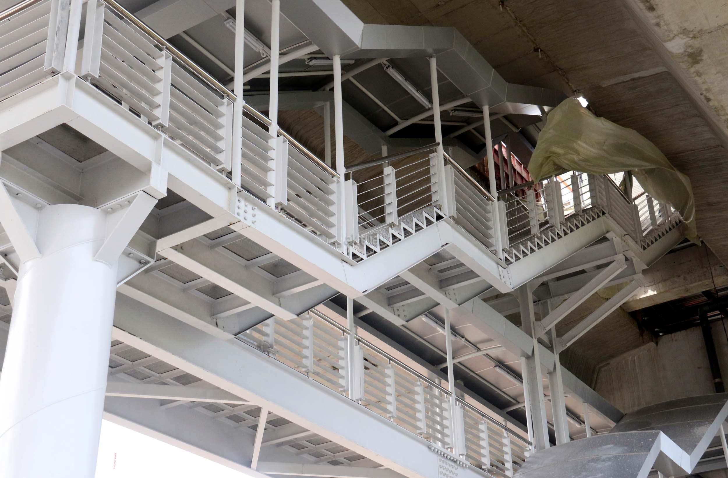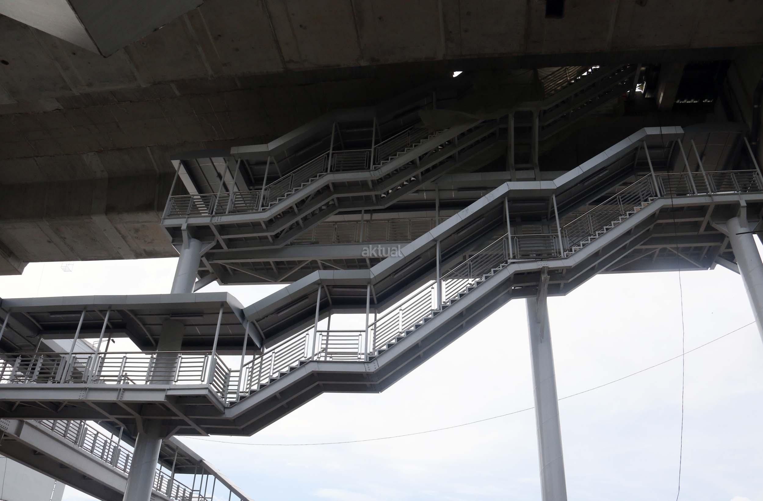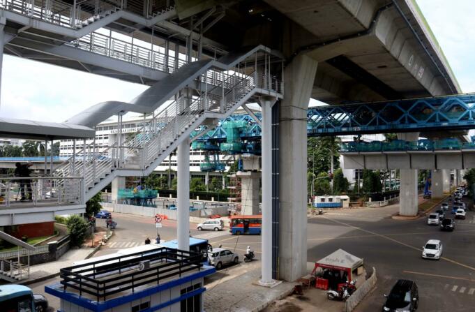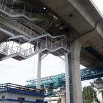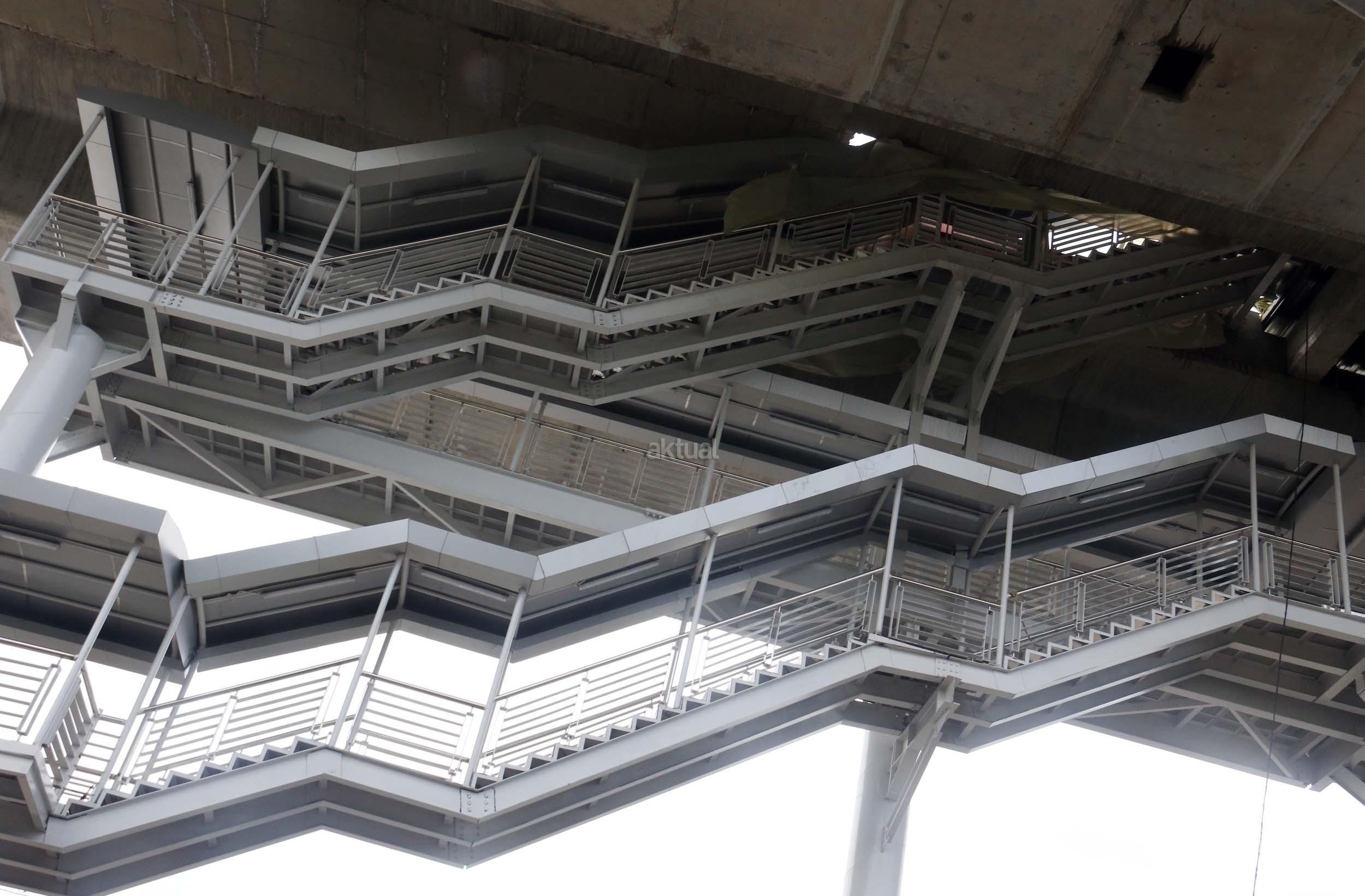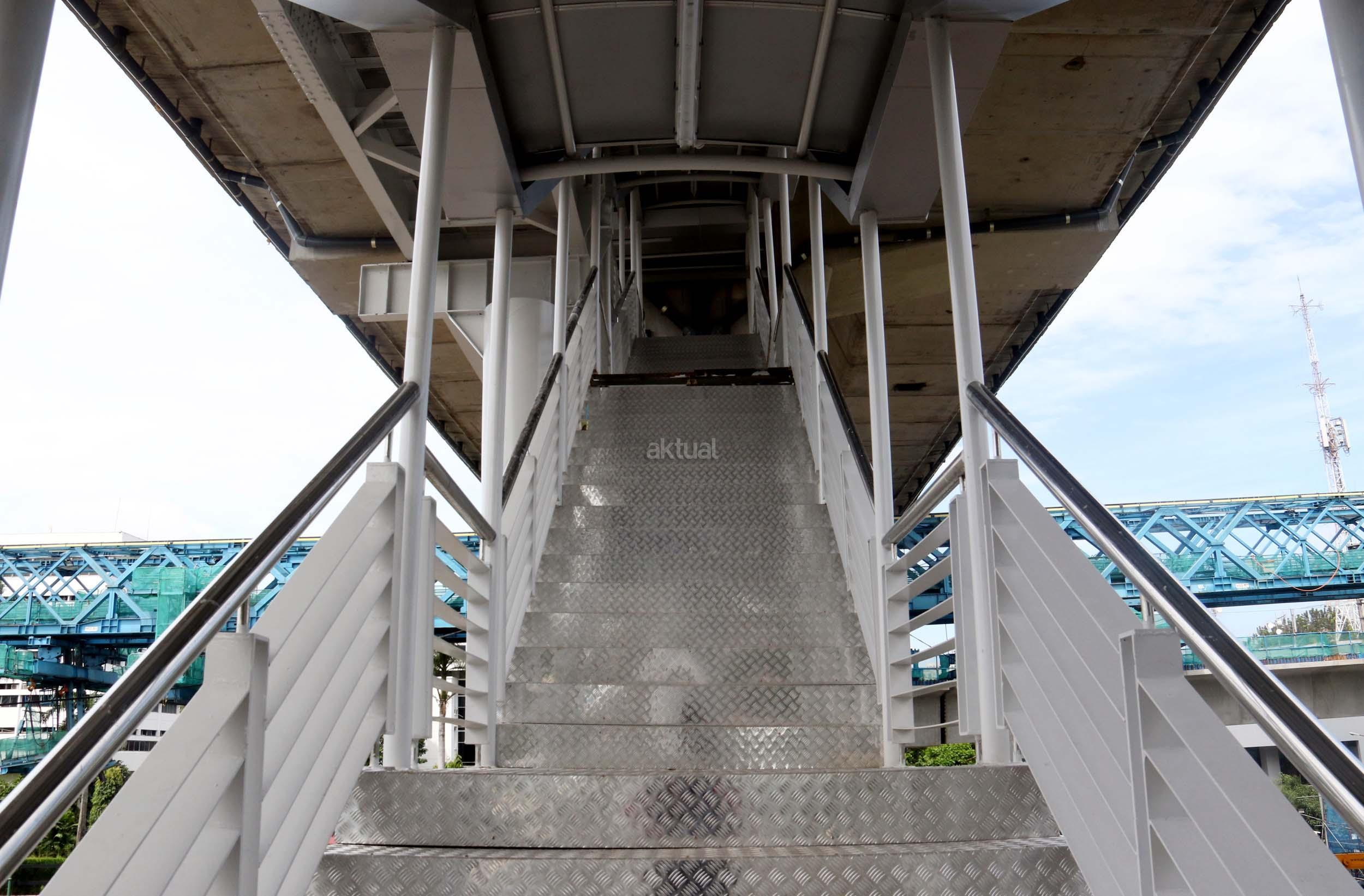 Suasana pembangunan Jembatan Penyeberangan Orang (JPO) halte layangTransjakarta CSW di Kebayoran Baru, Jakarta, Kamis (12/1/2017). Untuk mencapai halte tersebut, calon penumpang bus Trans-Jakarta harus melewati 130 anak tangga. AKTUAL/Munzir
