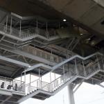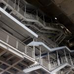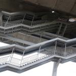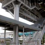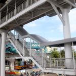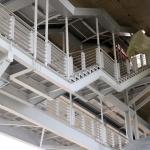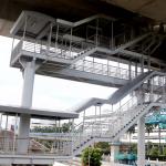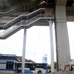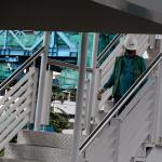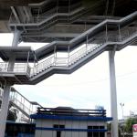 Pekerja berada di Bangunan JPO halte layangTransjakarta CSW di Kebayoran Baru, Jakarta, Kamis (12/1/2017). Untuk mencapai halte tersebut, calon penumpang bus Trans-Jakarta harus melewati 130 anak tangga. AKTUAL/Munzir