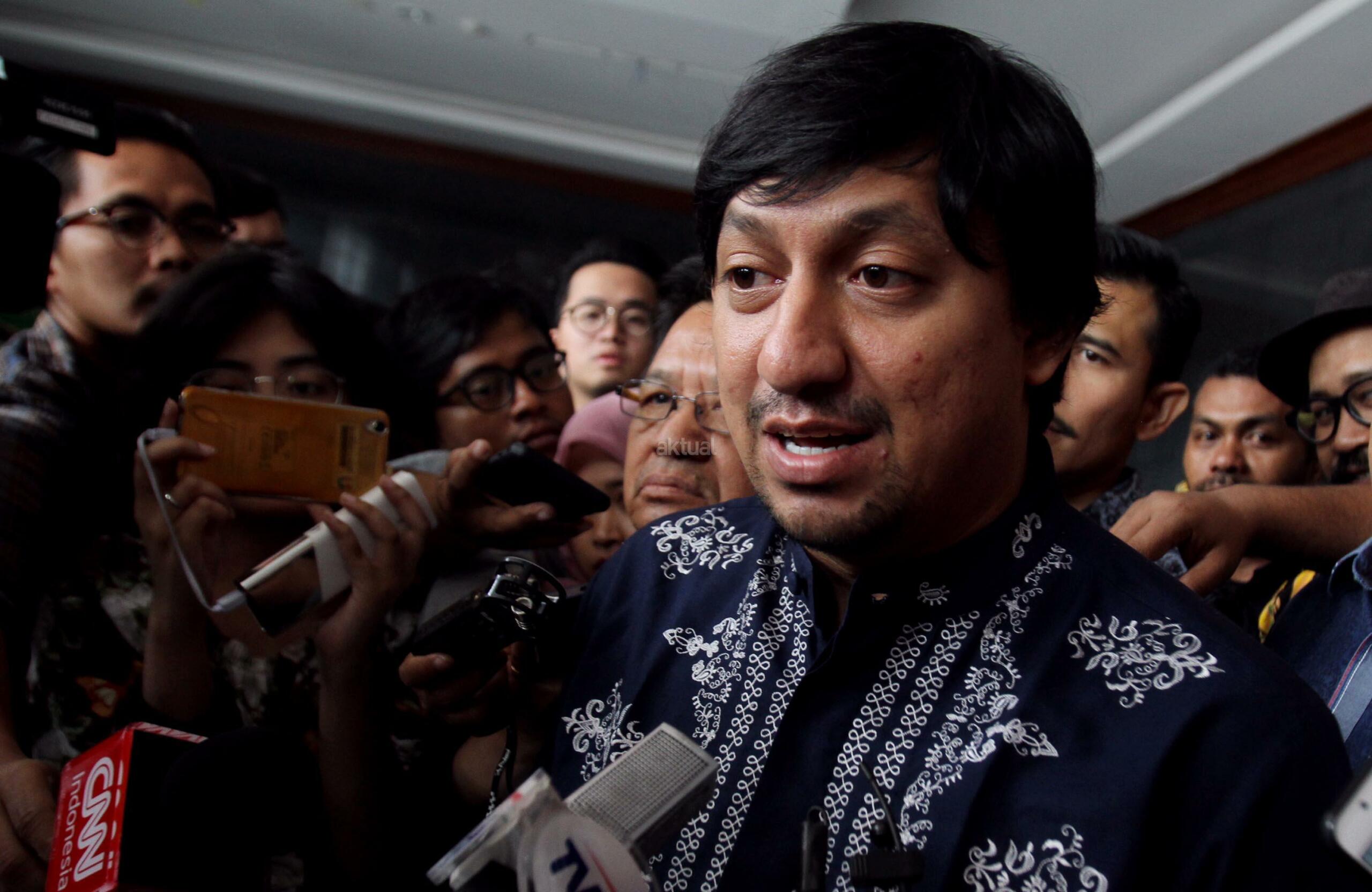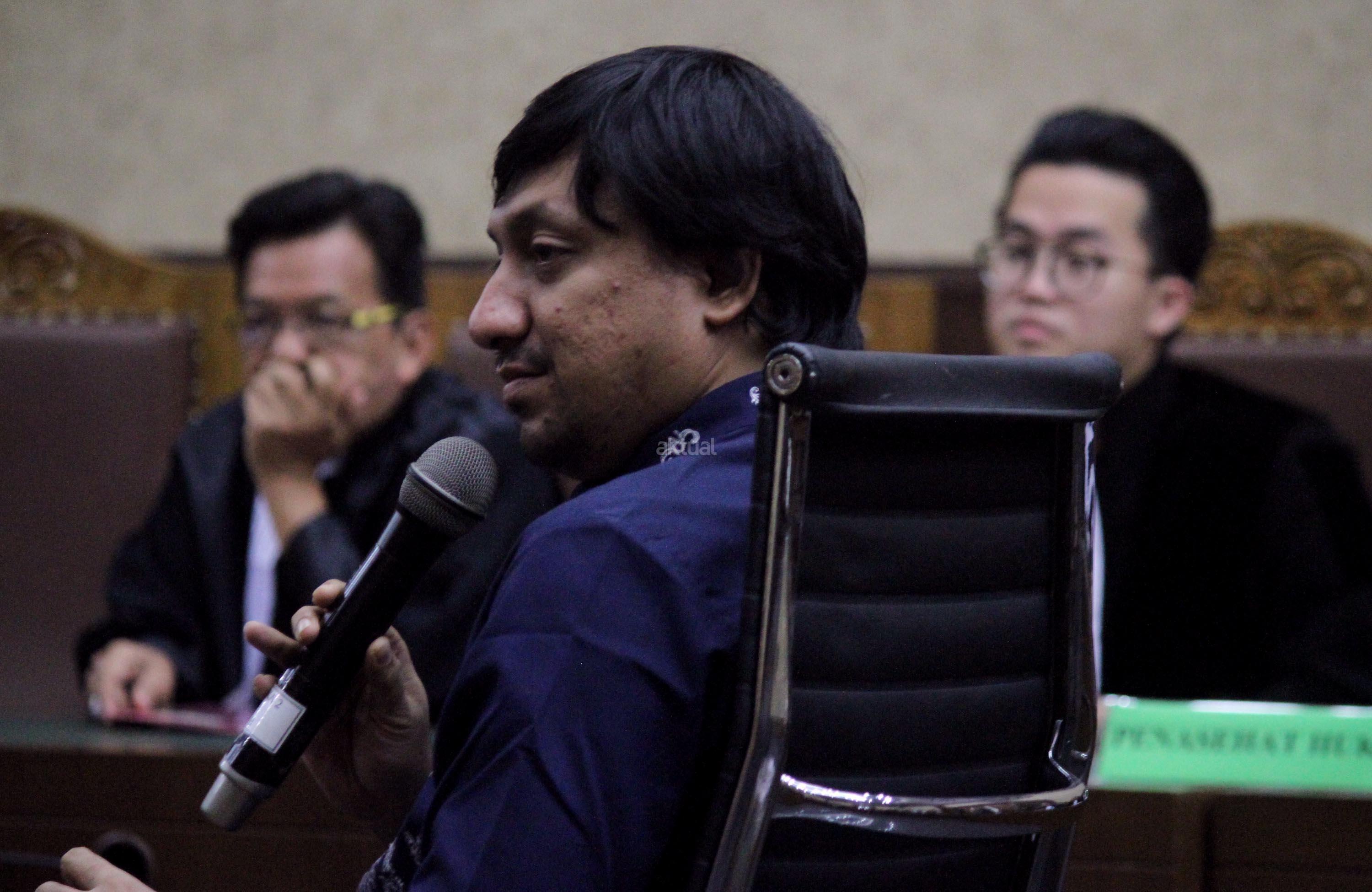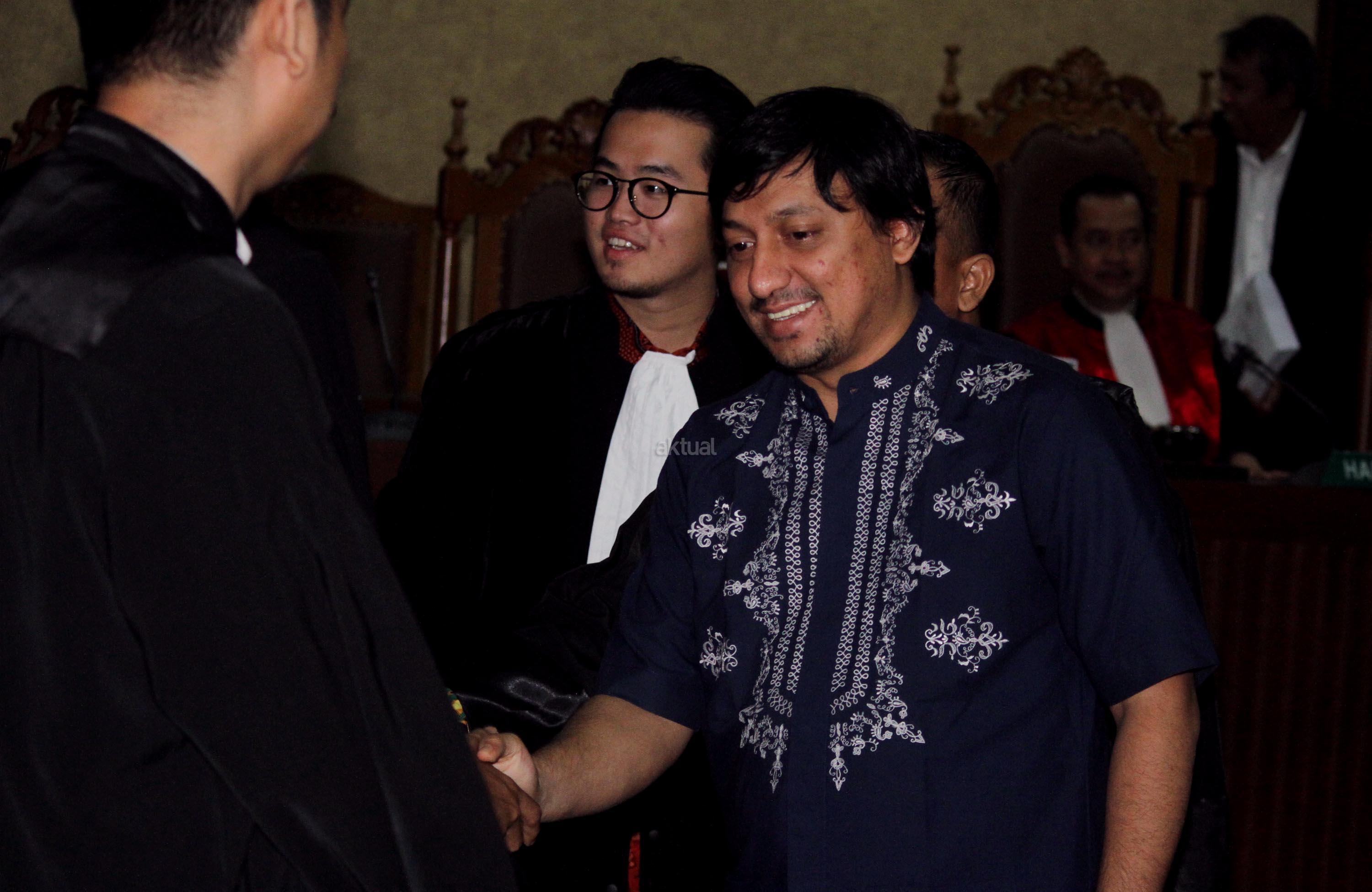 Ketua Angkatan Muda Partai Golkar (AMPG) Fahd El Fouz alias Fahd A Rafiq, saat menjalani sidang tuntutan di Pengadilan Tipikor, Jakarta, Kamis (31/8/2017). Jaksa Penuntut Umum KPK, Fahd dituntut lima tahun penjara dengan denda sebesar Rp250 Juta subsider enam bulan kurungan karena dinilai terbukti bersalah terlibat atau turut serta melakukan tindak pidana korupsi pengadaan Alquran? serta pengadaan alat laboratorium untuk Madrasah Tsanwiyah pada Kementerian Agama (Kemenag) Tahun anggaran 2011-2012. AKTUAL/Munzir