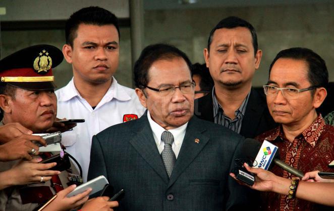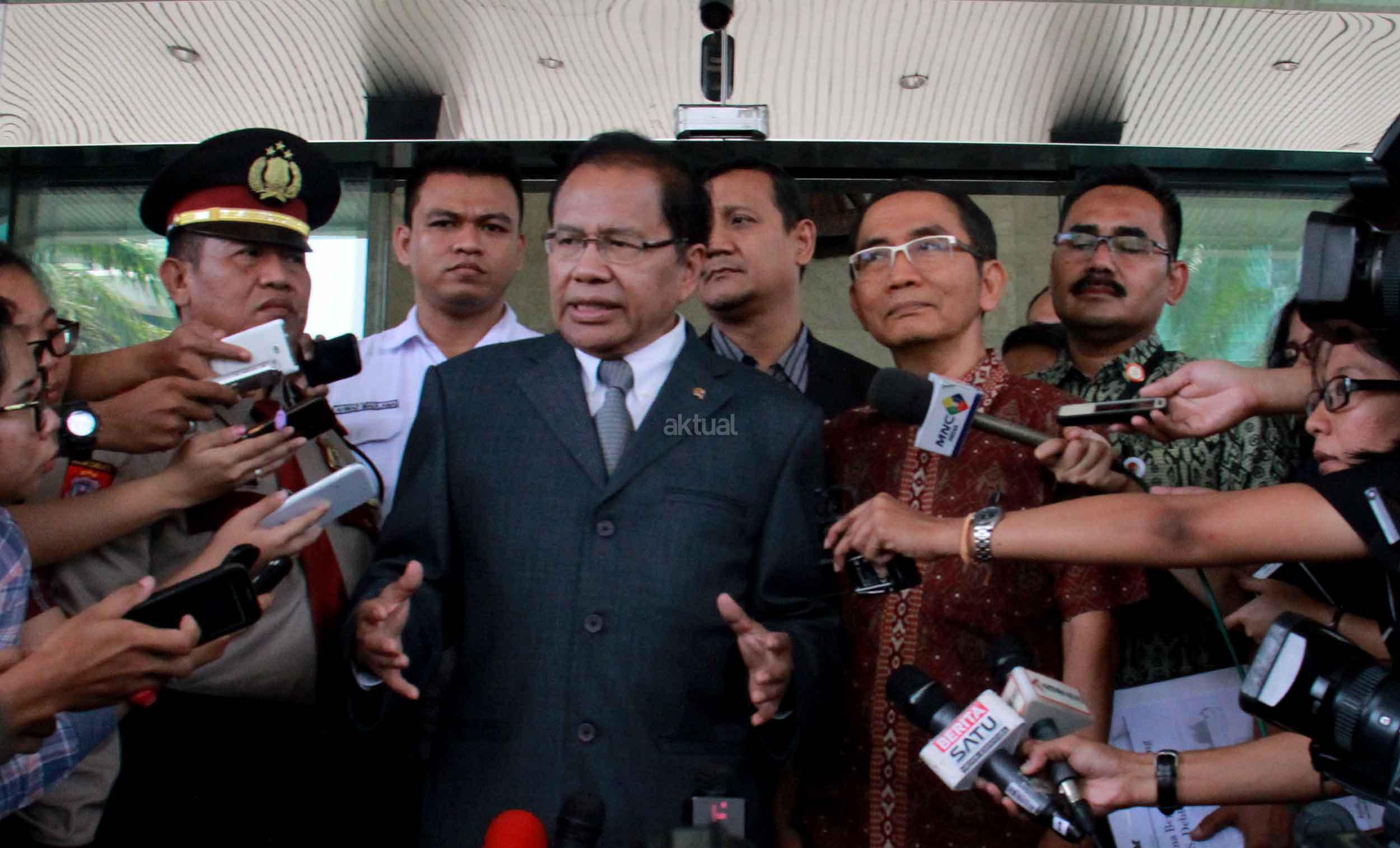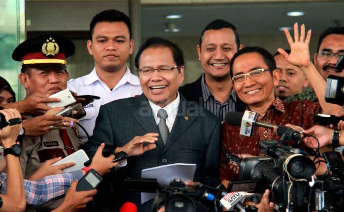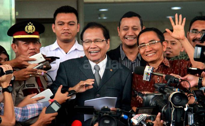 Menko Maritim, Rizal Ramli didampingi Wakil Ketua KPK Andan Pandu menjawab pertanyaan wartawan usai melaporkan harta kekayaanya di gedung Komisi Pemberantasan Korupsi (KPK), Jakarta, senin (12/10). Setelah 2 bulan menjabat sebagai menteri di Kabinet Jokowi. Jumlah harta yang dilaporkan senilai Rp 20 miliar lebih. Rizal menjelaskan, nilai harta dan asetnya mengalami peningkatan. Peningkatan terbesar berasal dari nilai jual tanah yang meningkat tajam. AKTUAL/MUNZIR