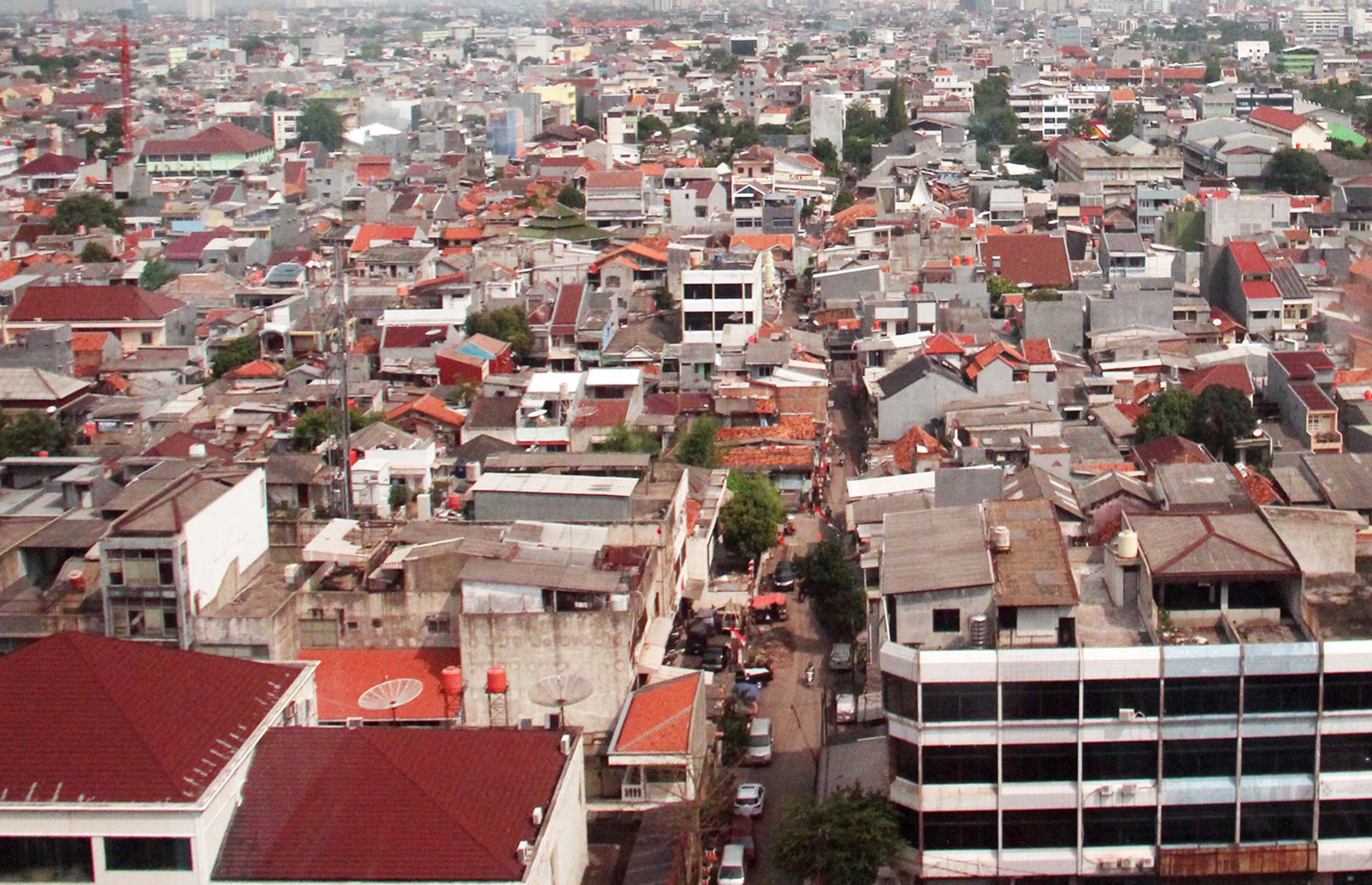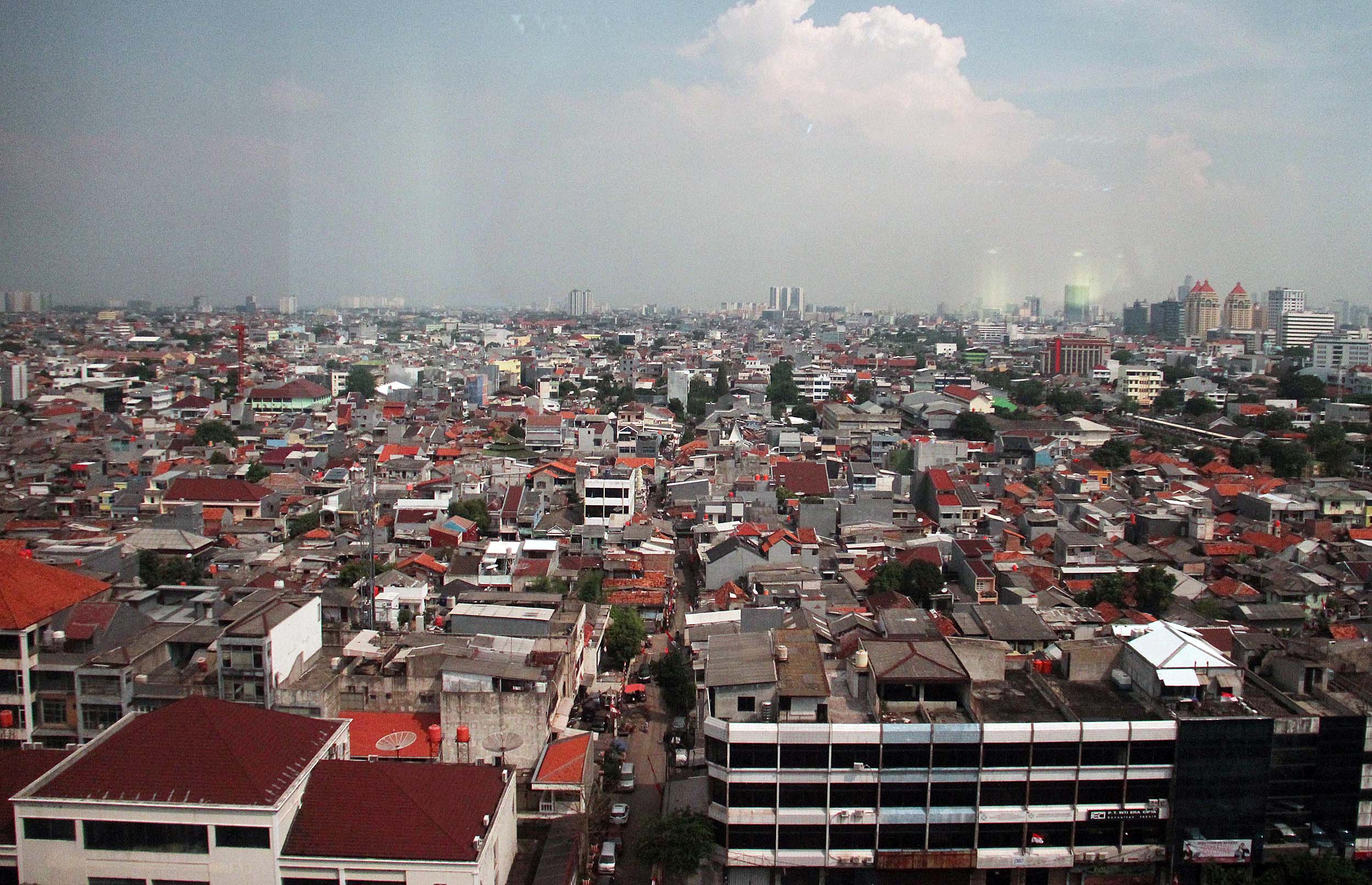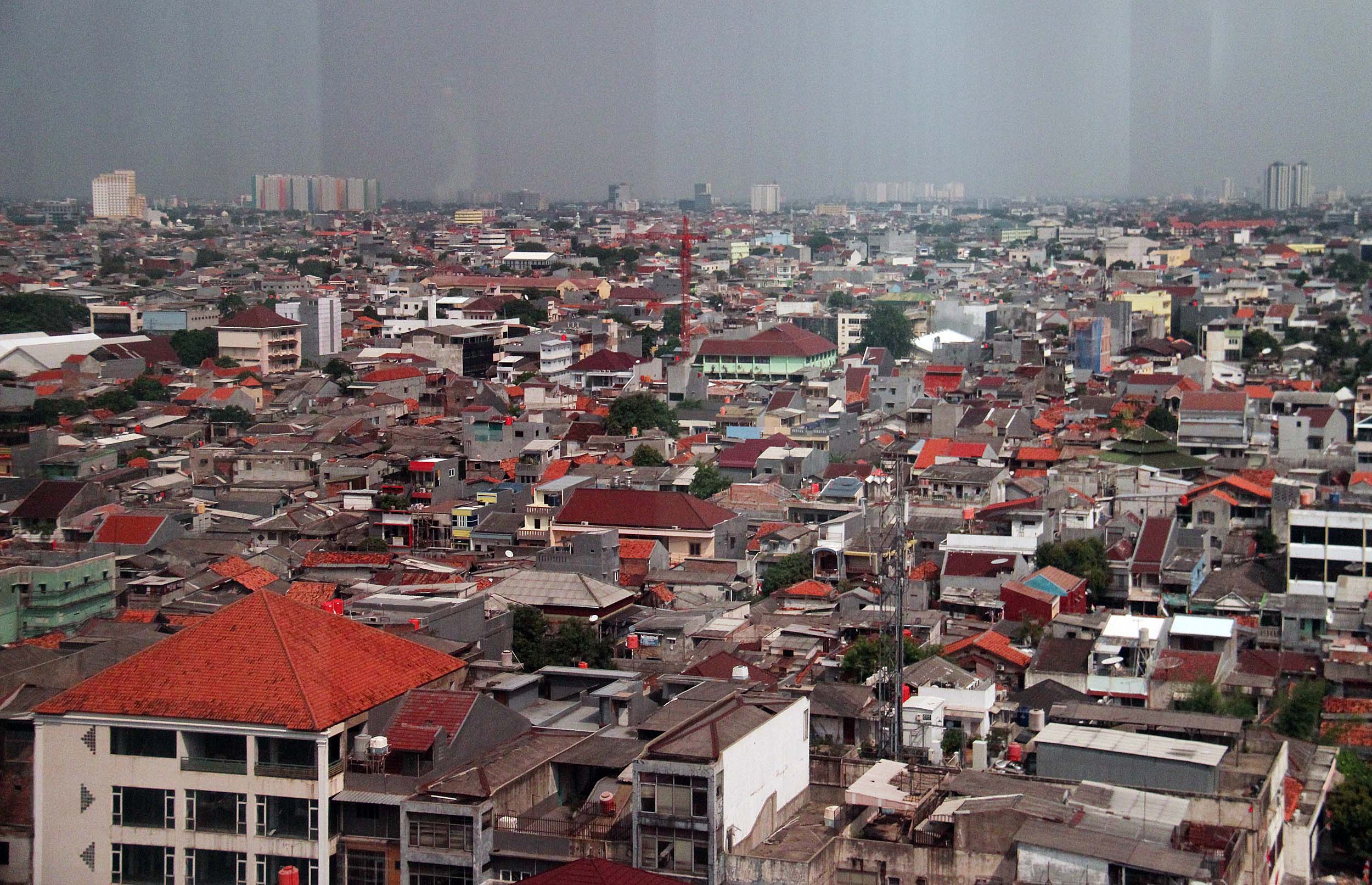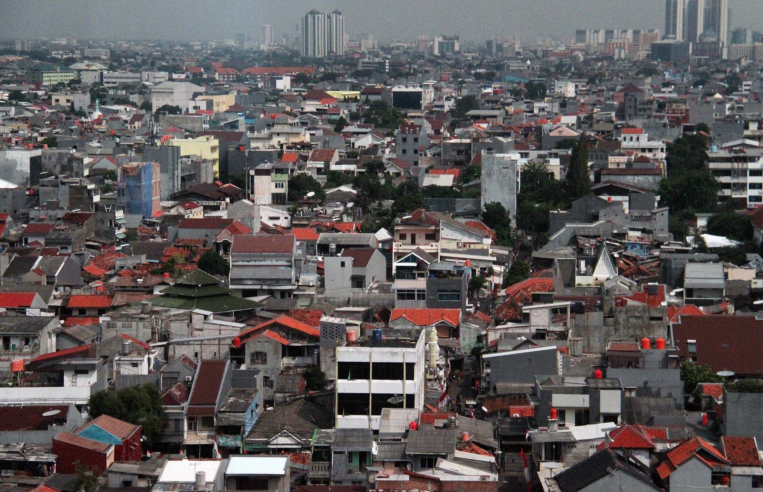 Lansekap pemukiman padat penduduk di kawasan Kemayoran, Jakarta Pusat, Selasa (30/8/2016). Dengan rata-rata laju pertumbuhan penduduk mencapai 1,4 persen per tahun atau 135 ribu jiwa per tahun serta kepadatan penduduk di wilayah DKI Jakarta sebanyak 14.476 jiwa per kilometer persegi mampu memicu berbagai masalah khas perkotaan seperti tata ruang, kesehatan, kemiskinan dan kriminalitas.