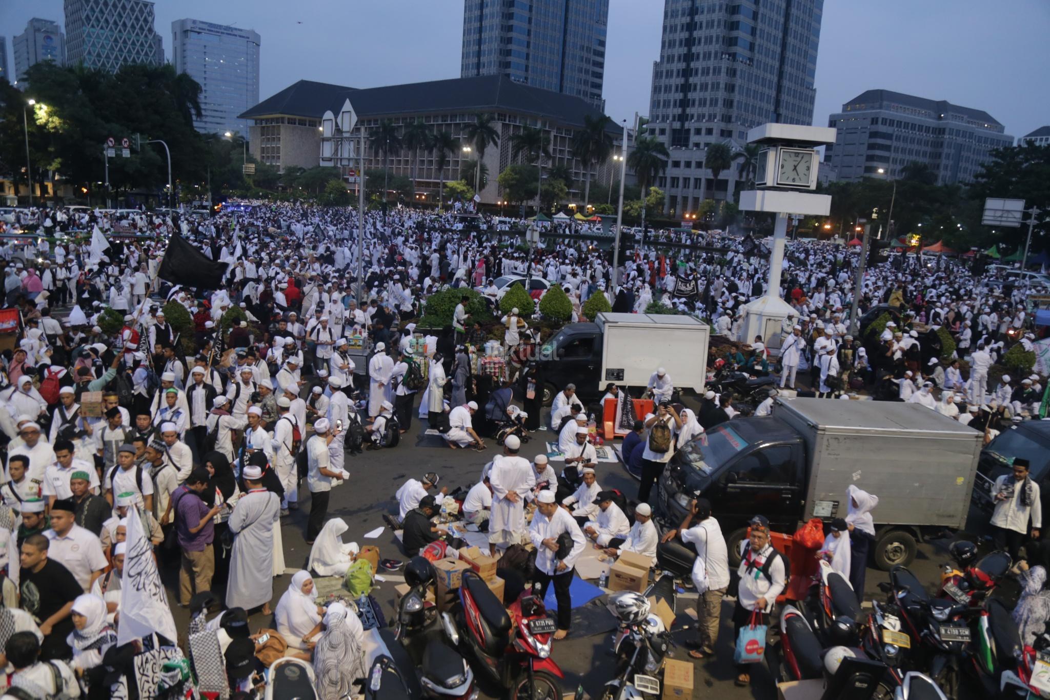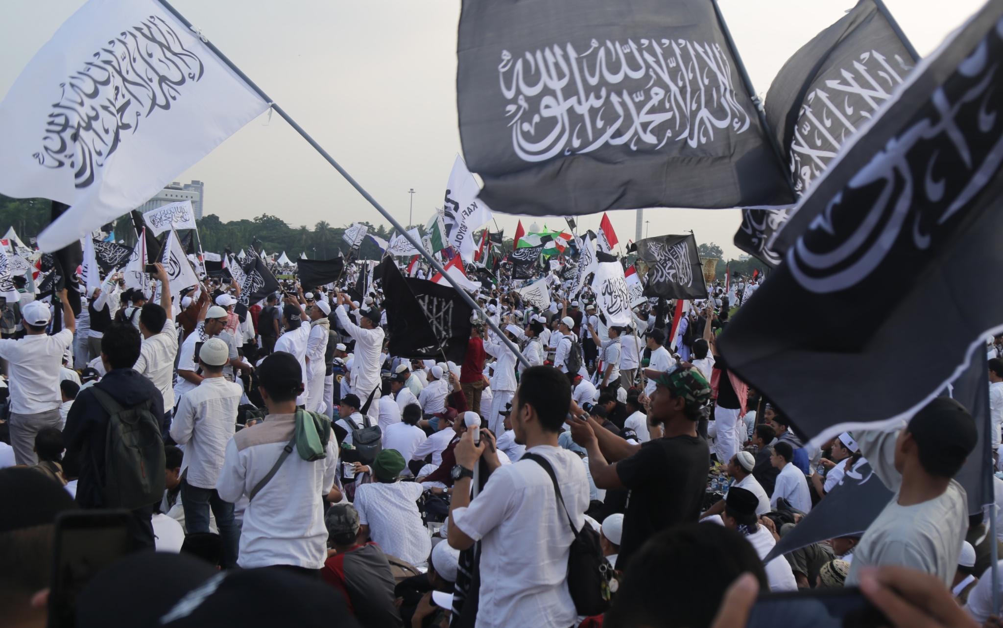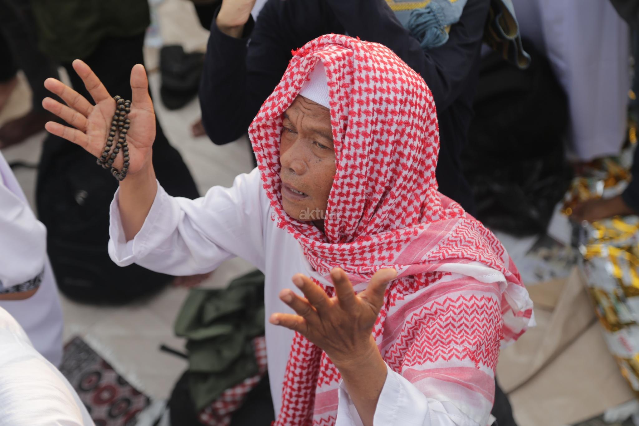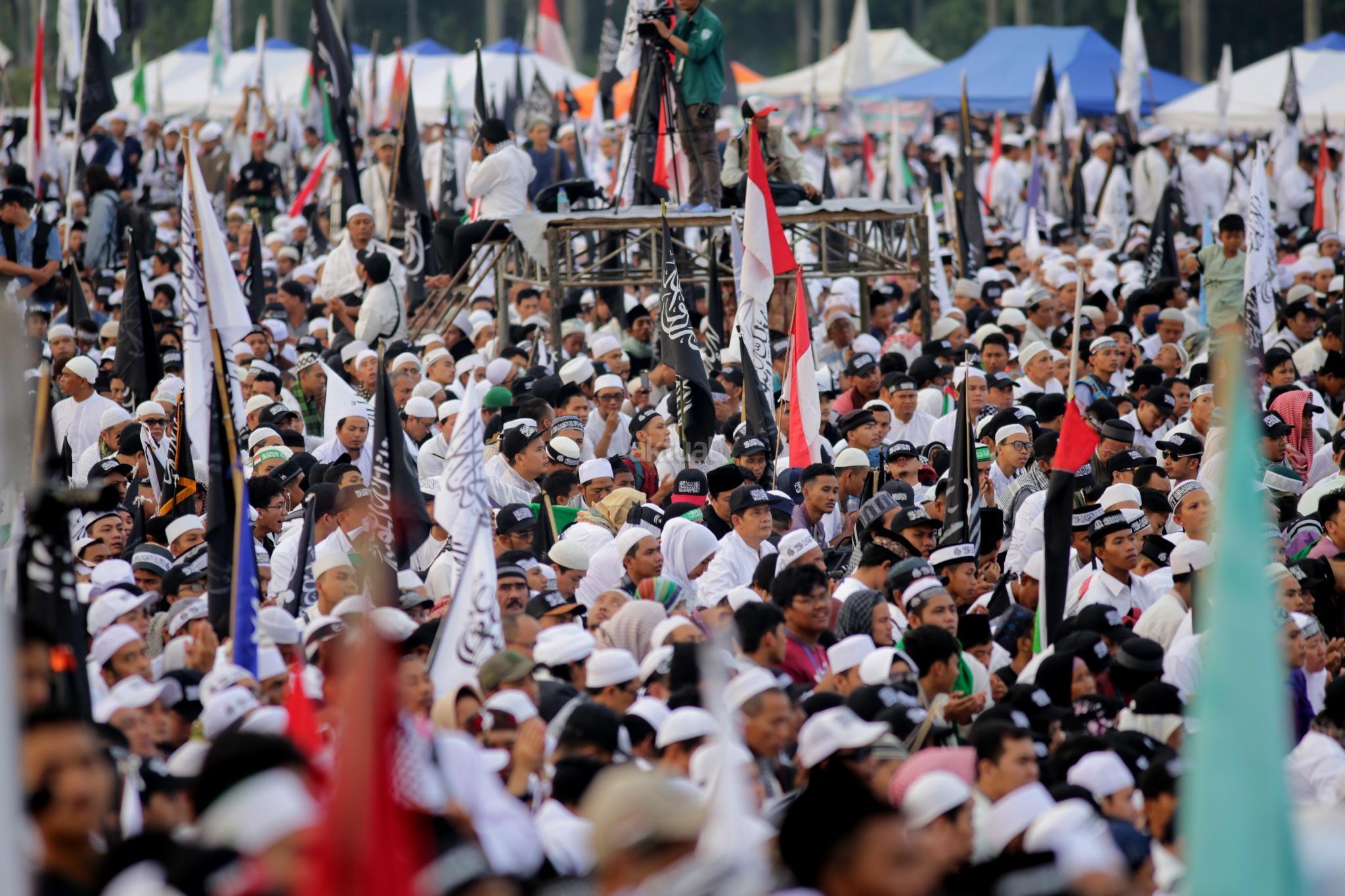 Jutaan umat muslim melaksanakan Reuni 212 memadati Kawasan Monas, Jakarta Pusat, Minggu (2/12/2018). Tidak hanya membawa bendera tauhid, para jamaah juga selalu meneriakan takbir “Allahuakbar”, dan melantunkan beberapa salawatan bersama. AKTUAL/Tino Oktaviano