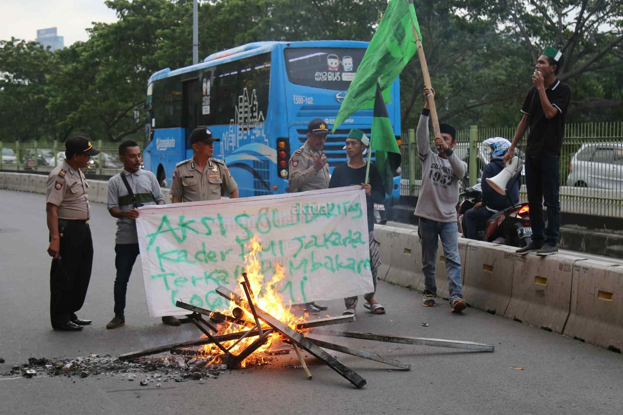 Kader HMI Tutup Jalan Sultan Agung Jakarta, Tuntut Dosen Pembakar Atribut HMI Ditindak