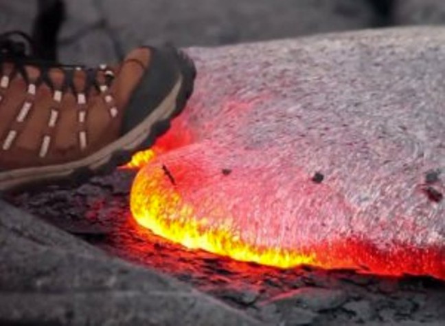Jakarta, Aktual.co — Dalam demonstrasi di pulau Hawai dekat pusat perbelanjaan, seorang peneliti menguji project ilmiah tentang aliran lava. Karya ilmiah yang sudah dipublikasikan dalam sebuah video di YouTube tersebut, memperlihatkan seorang ilmuwan menepakkan alas kakinya (sepatu) di atas aliran lava dari Gunung Berapi dari Pulau Kilauea, pada 2010 lalu.