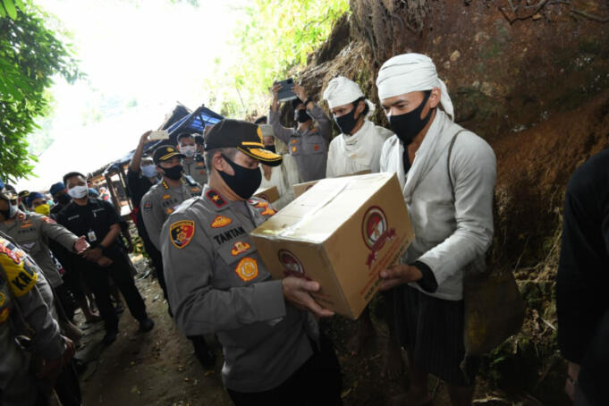 Kapolri Jendral Polisi Drs. Idham Azis, M.Si melalui Kakorlantas Polri Irjen Pol Drs. Istiono, M.H bersama Kapolda Banten Irjen Pol Fiandar memimpin langsung pembagian sembako sebanyak 4.317 ke masyarakat Suku Baduy.