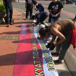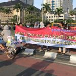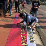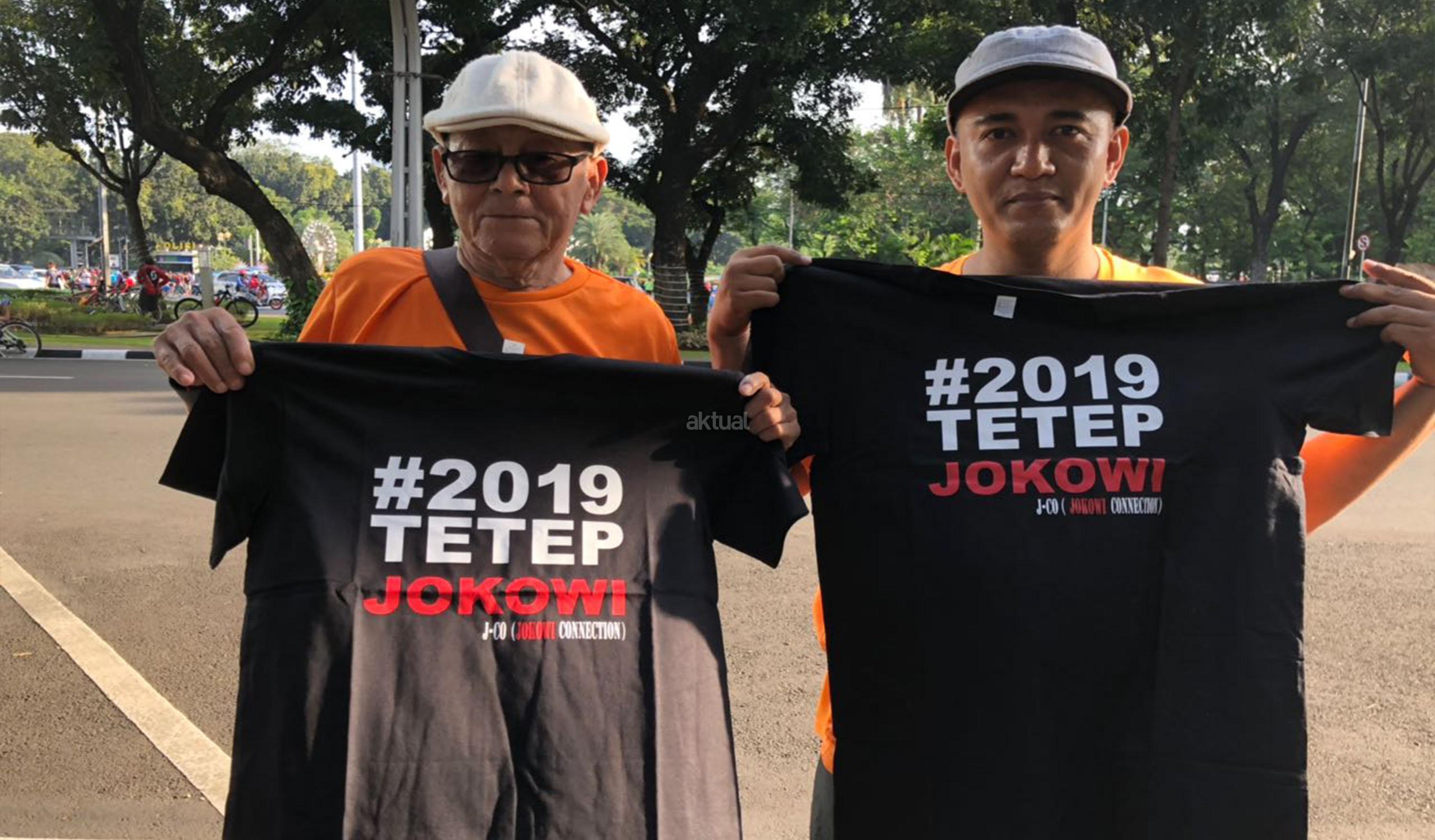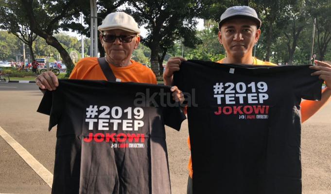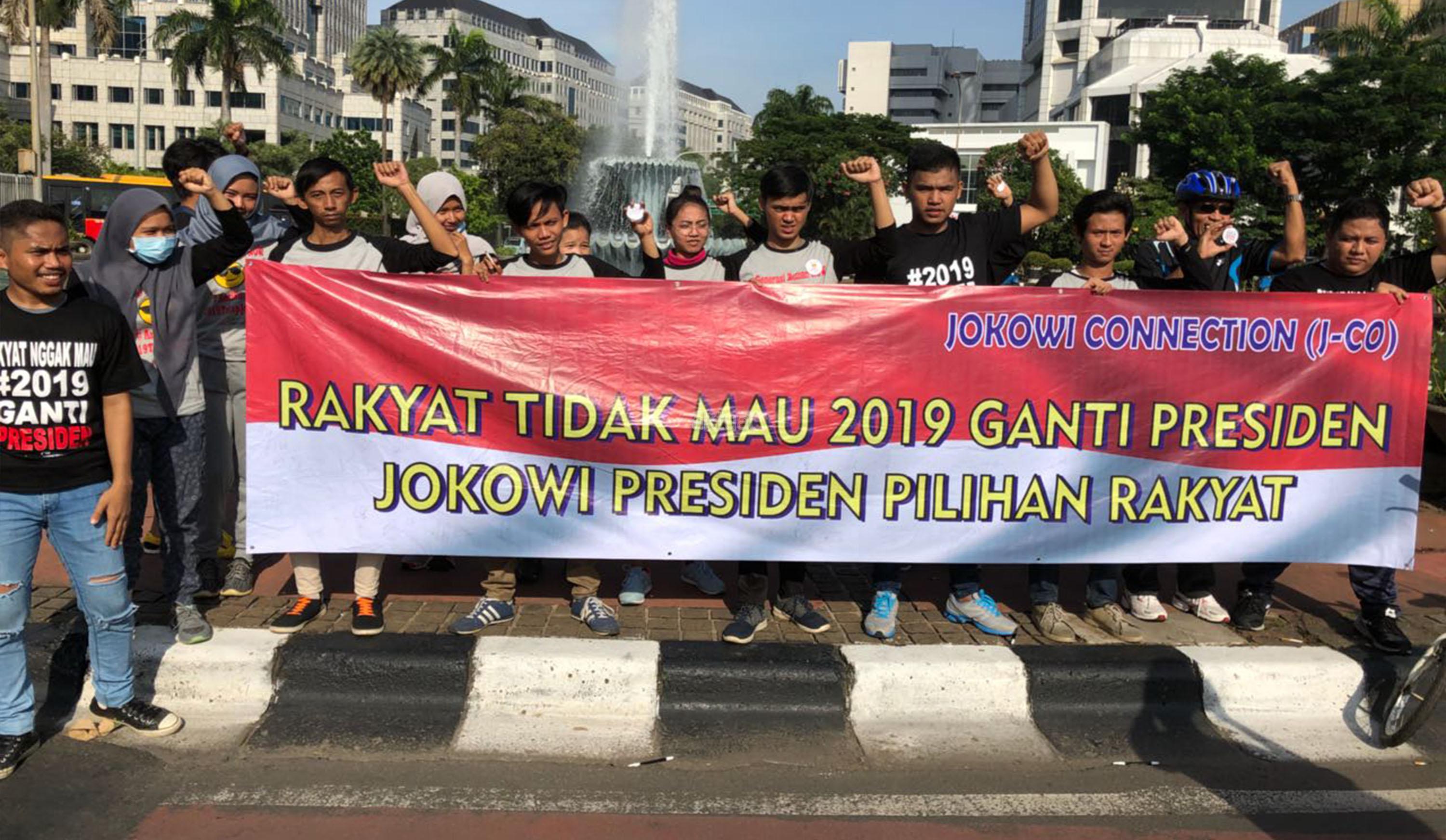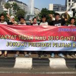 Massa dari Gerakan Jokowi Connection (J.co) melakukan aksi petisi tandatangan masyarakat car free day di kawasan Bundaran Patung Kuda, Jakarta, Minggu (8/4/18). Gerakan untuk melanjutkan memimpin dua periode bentuk dukungan moral kepada Presiden Jokowi untuk terus melakukan pembangunan agar NKRI menjadi negera bermartabat dan mensejahterahkan rakyat. AKTUAL/Tino Oktaviano