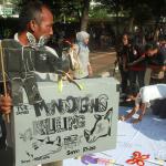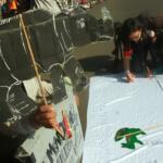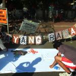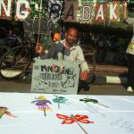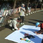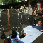 Sejumlah orang yang tergabung dari beberapa LSM menggelar aksi ‘Kami Sayang Badak’ saat Car Free Day di kawasan Bunderan HI, Jakarta, Minggu (27/3/2016). Aksi tersebut guna Memperingati hari bumi, serta mengkampanyekan binatang Badak yang hampir punah.