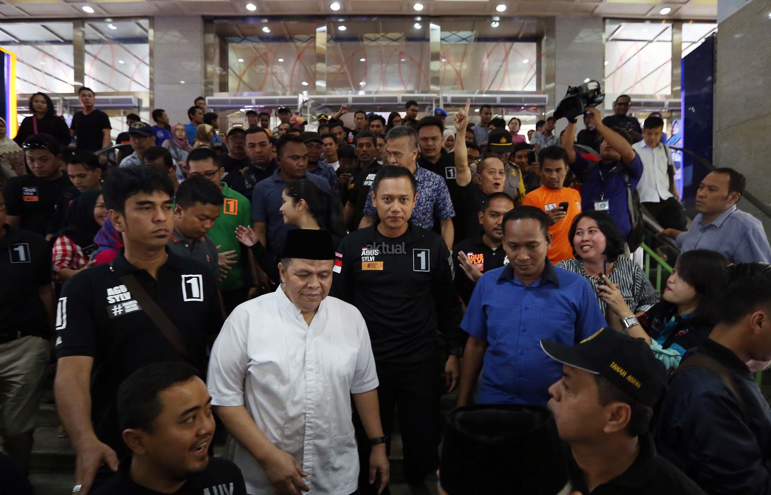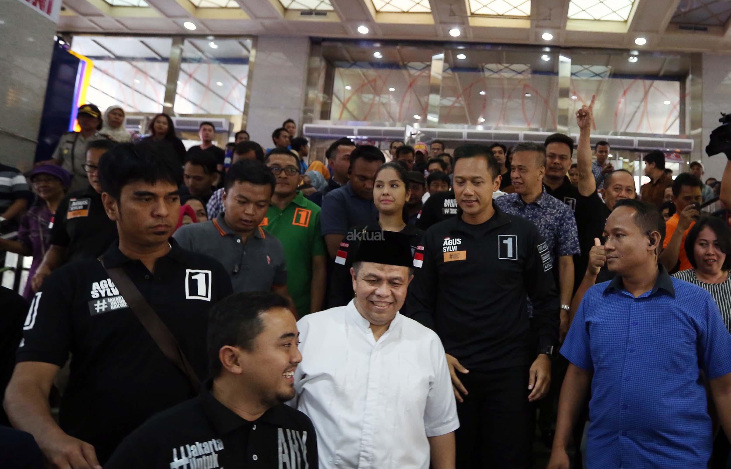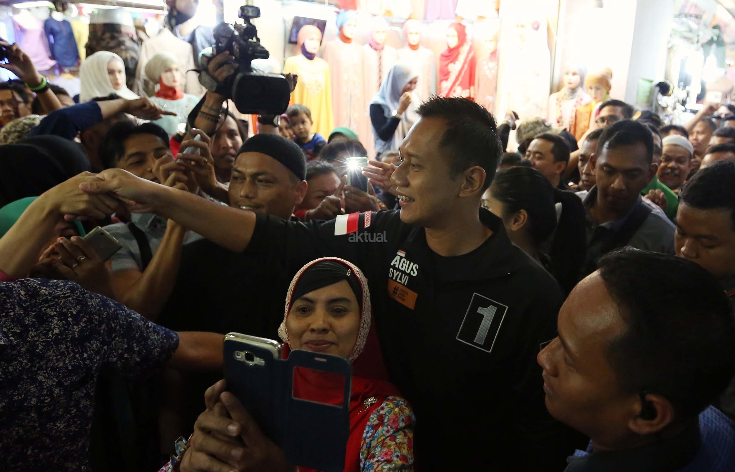 Calon Gubernur Jakarta Nomer Urut 1 Agus Harimurti Yudhoyono saat melakukan kampanye di Pasar Tanah Abang, Jakarta, Kamis (1/12/2016). Dalam kampanyenya Agus mendengarkan keluhan pedagang mengenai biaya sewa kios yang mahal. AKTUAL/Munzir