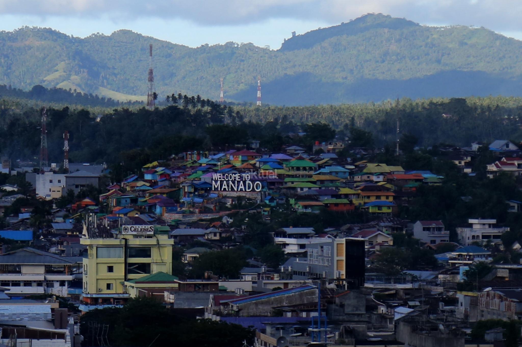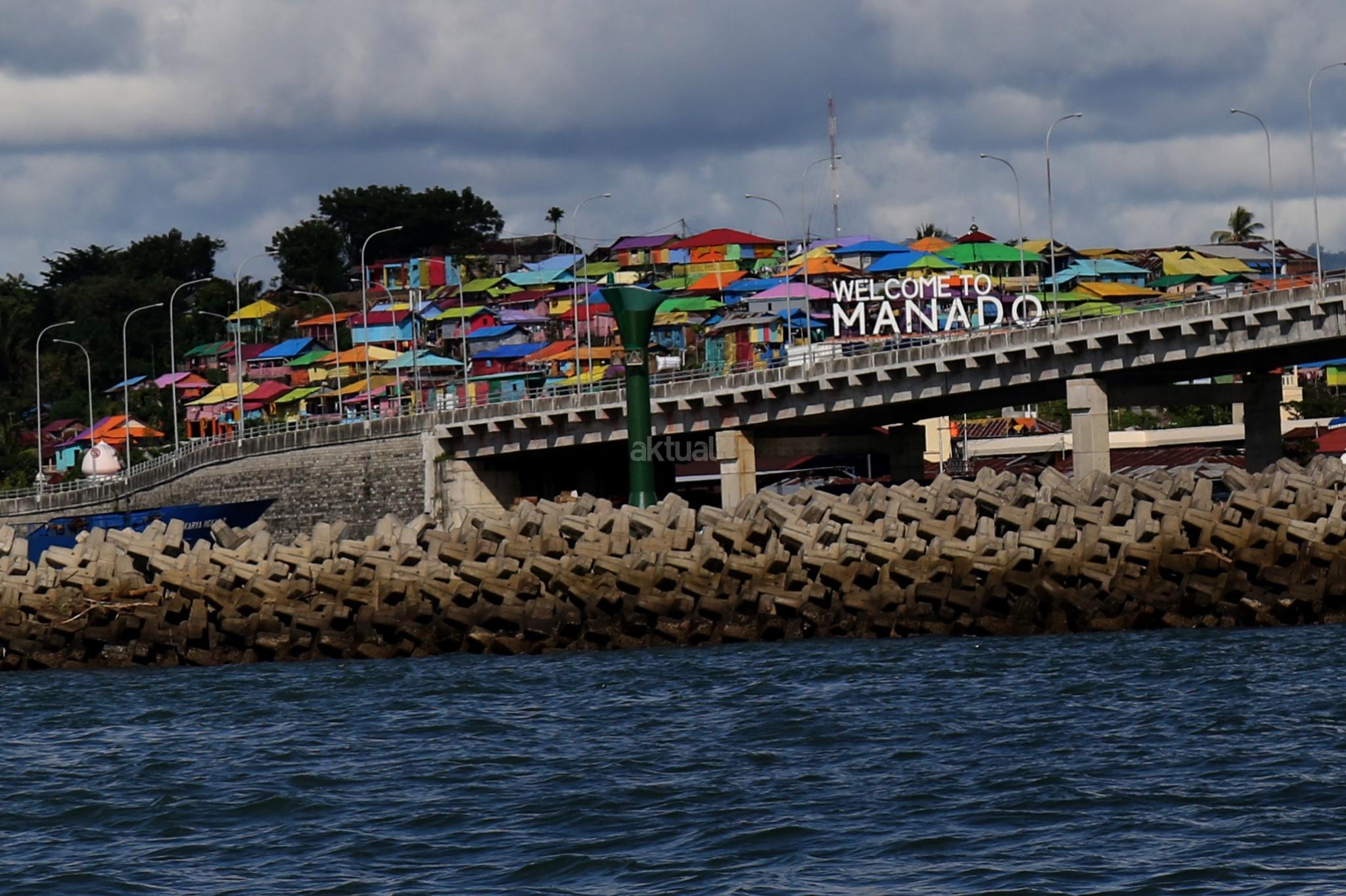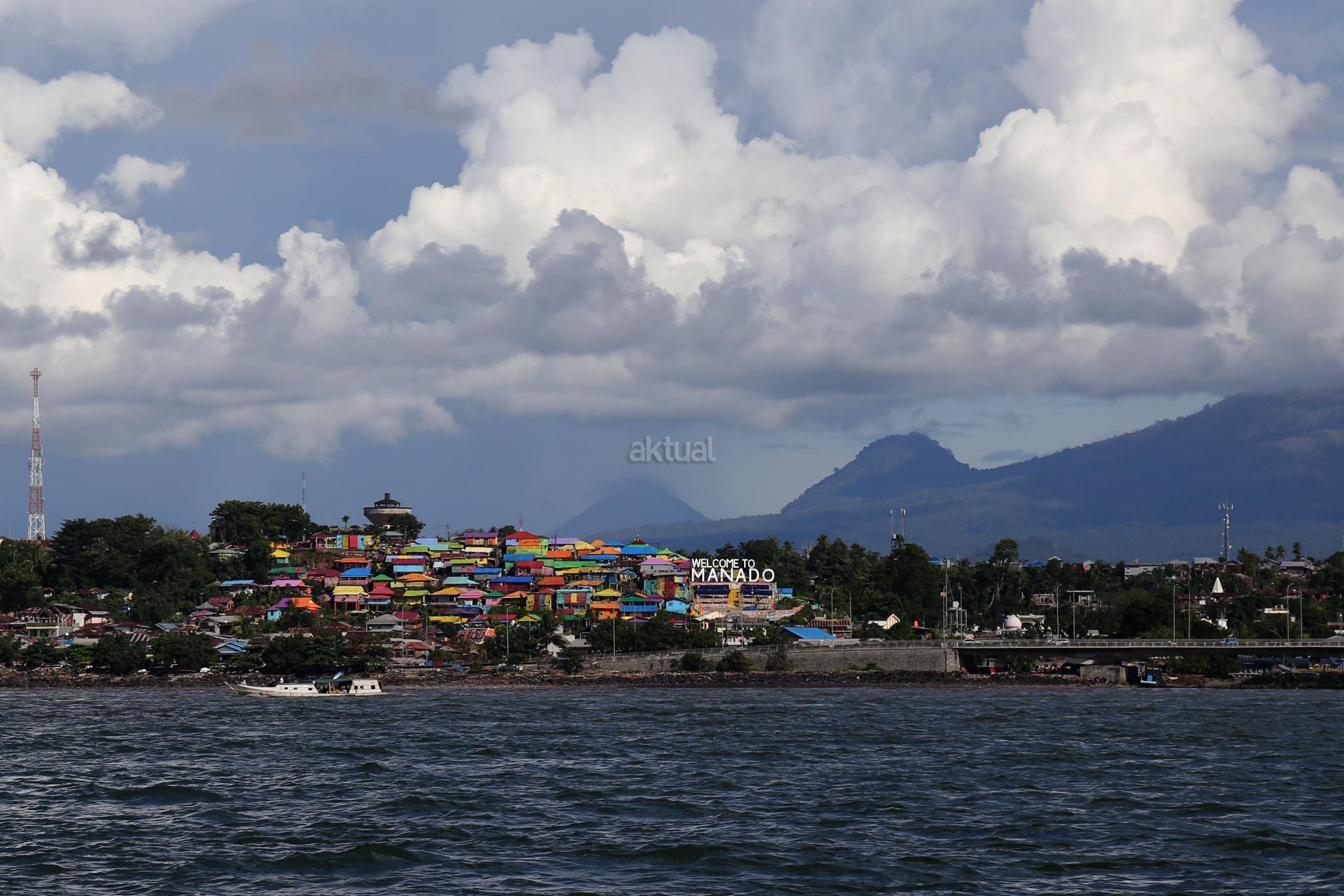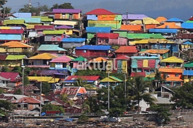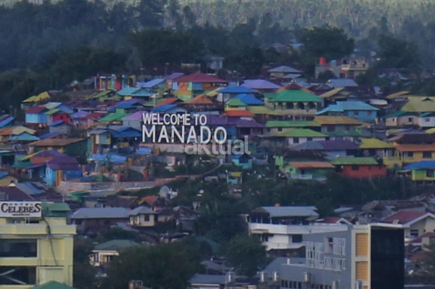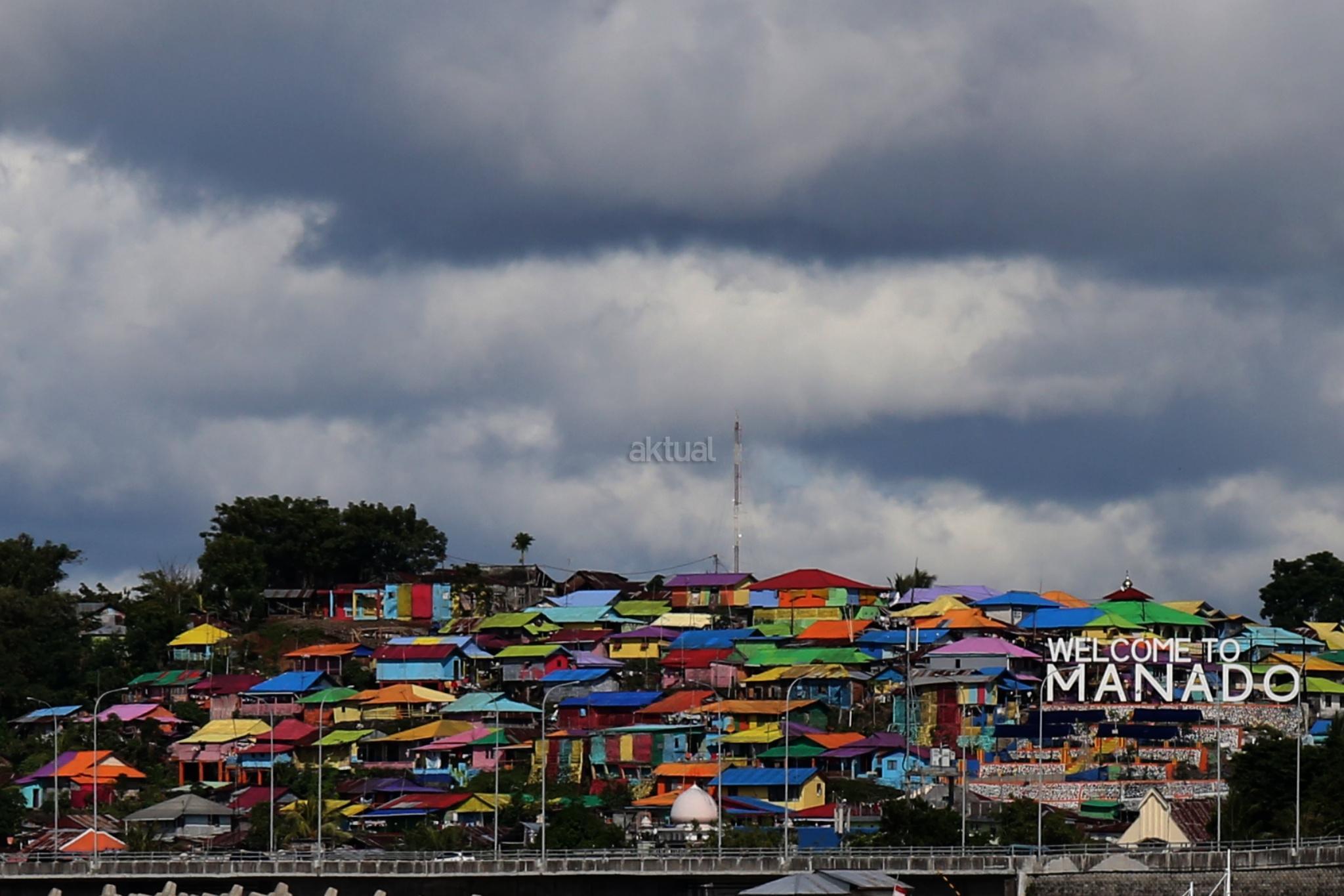 Pesona Kampung Sindulang (kampung pelangi) yang berdiri diatas bukit terlihat indah berwarna di Manado, Sulawesi Utara, Minggu (18/12/2016). Selain menonjolkan warna segar, di kampung ini juga terdapat sebuah taman menjadi tempat favorit bagi warga untuk berselfie maupun berwelfie bahkan ada juga sebuah tulisan “Welkom to Manado” menjadi daya tarik keunikan lain permukiman tersebut. AKTUAL/Tino Oktaviano