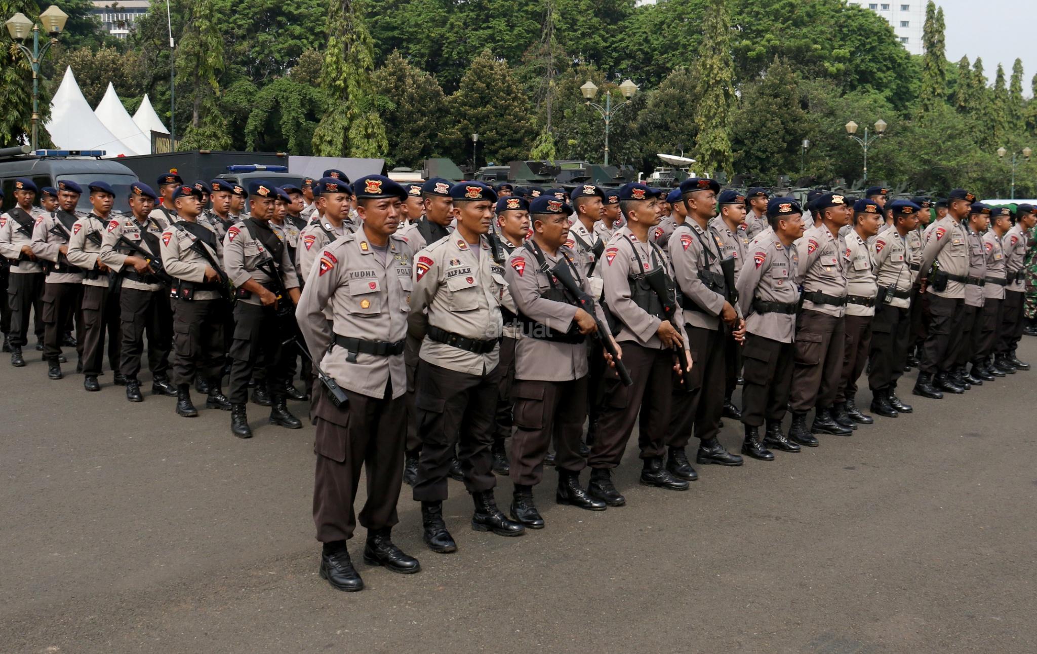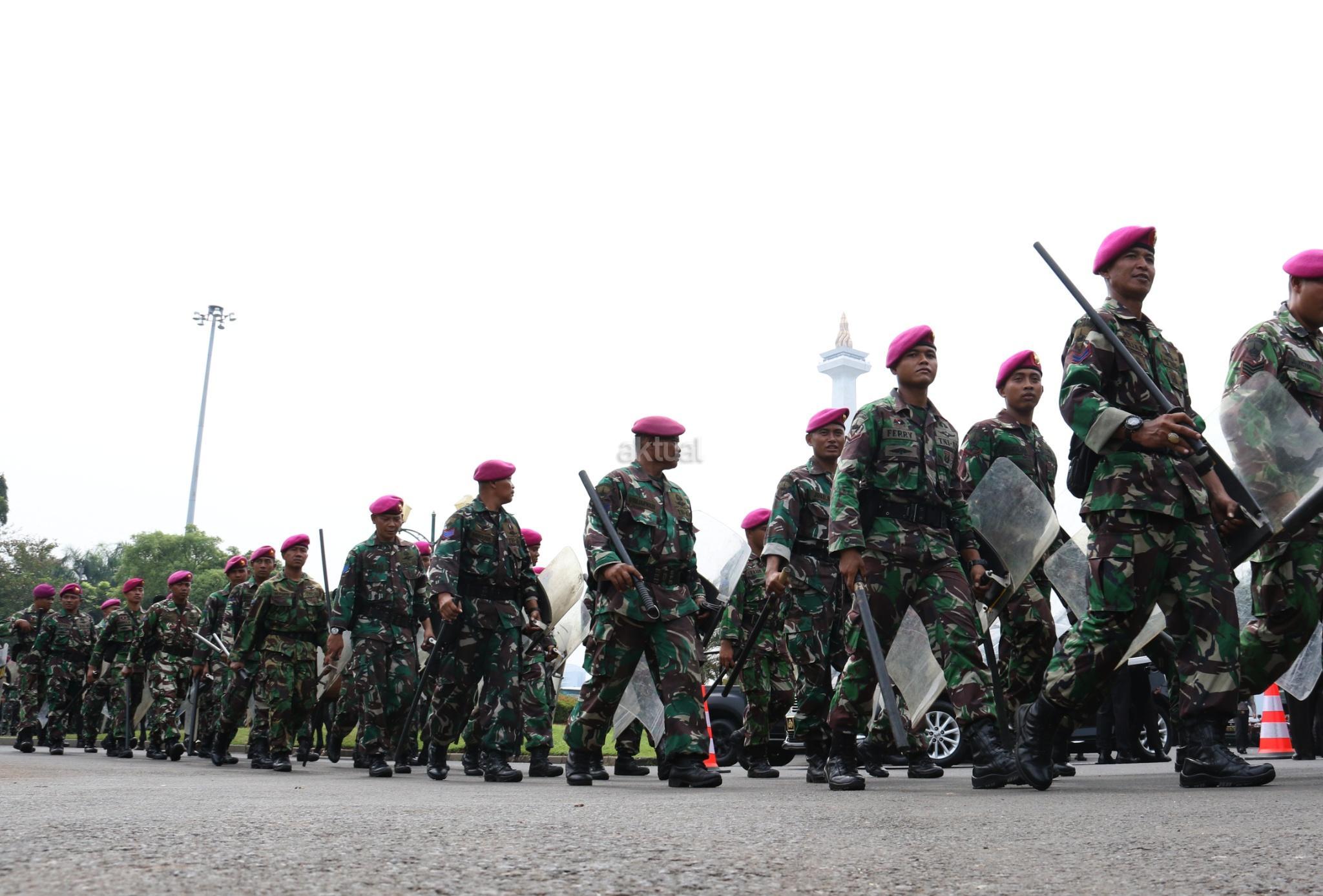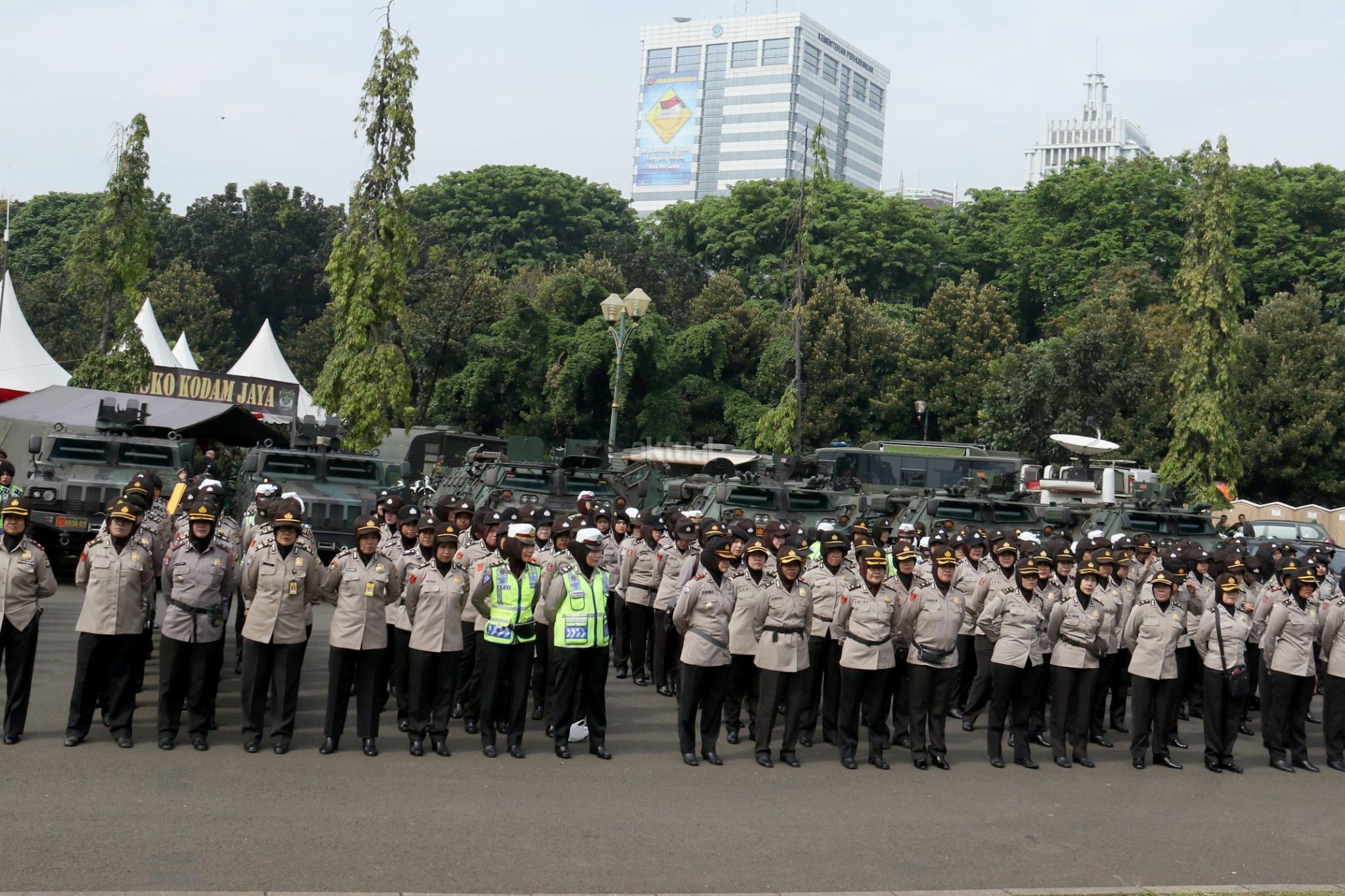 Apel yang bertujuan untuk mengamankan aksi demontrasi di Jakarta, Jumat (4/11/2016), menuntut kepastian proses hukum penistaan agama oleh Gubernur DKI Jakarta, Basuki Tjahaja Purnama (Ahok). Sebanyak 21.000 personel gabungan dari Polri/TNI dan Pemprov DKI Jakarta dikerahkan. AKTUAL/Munzir