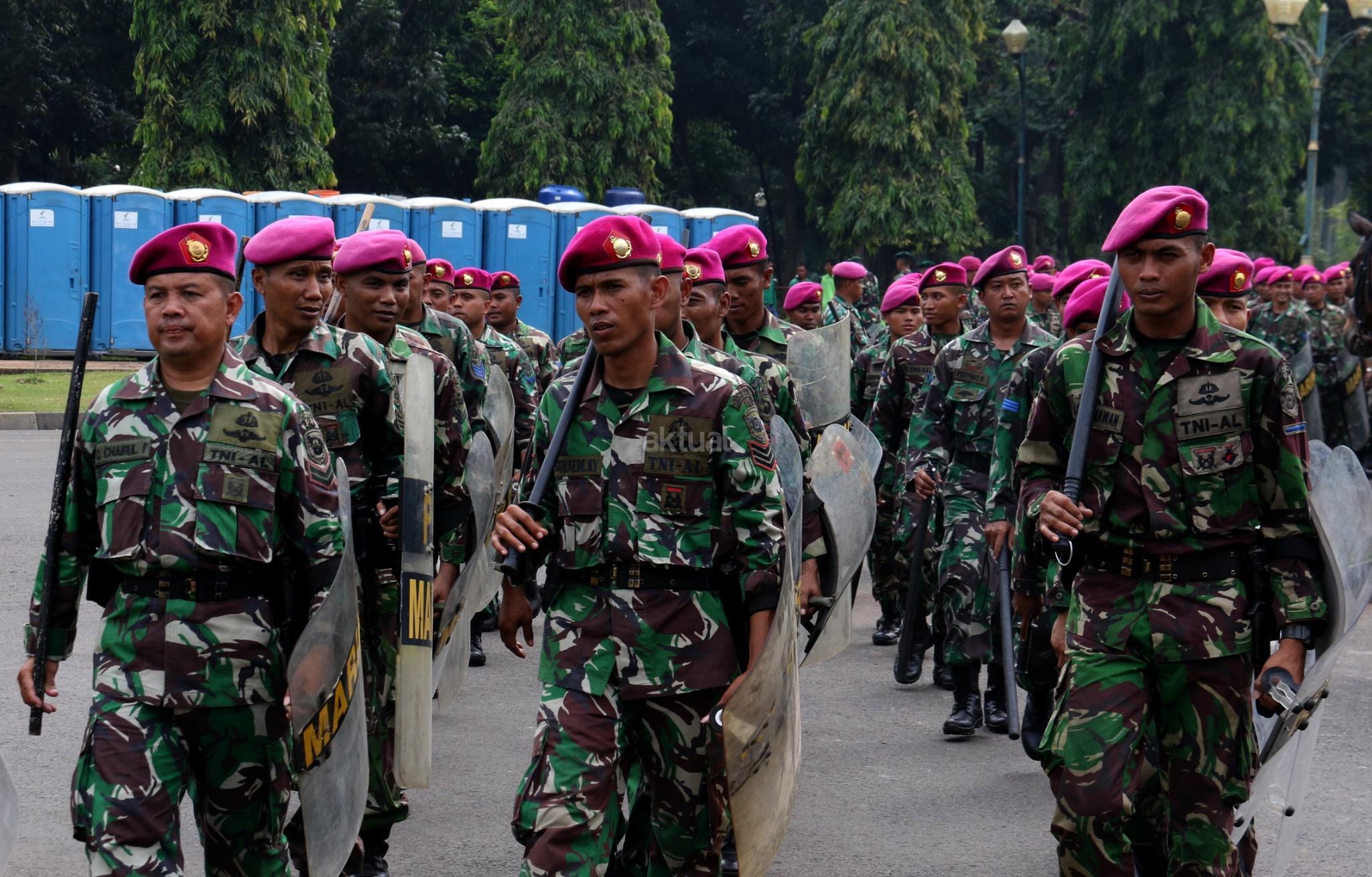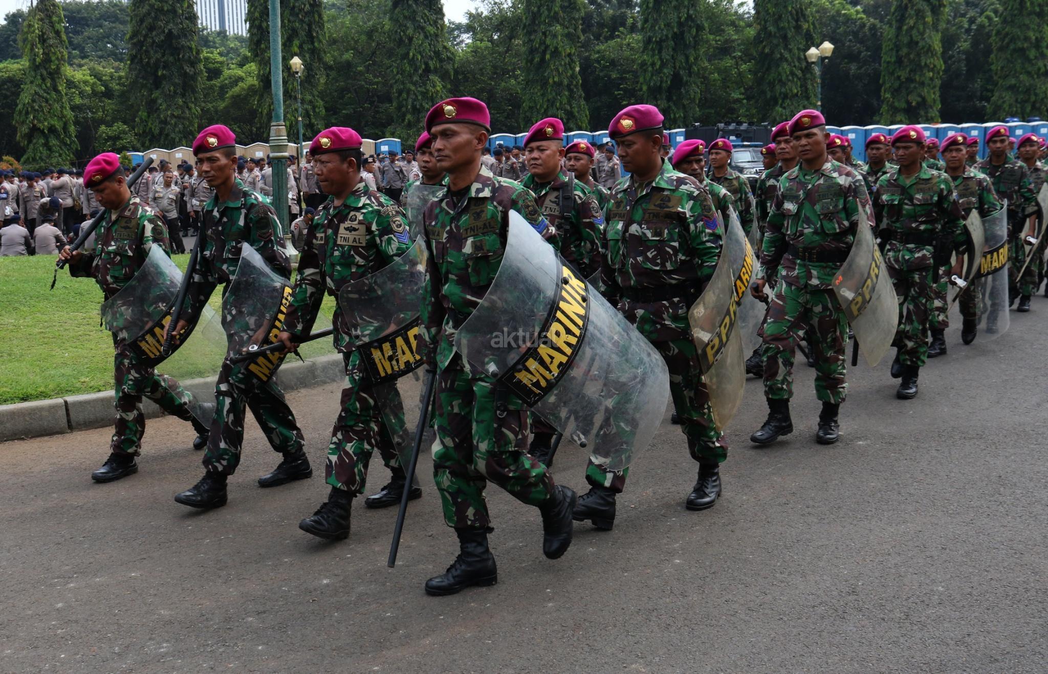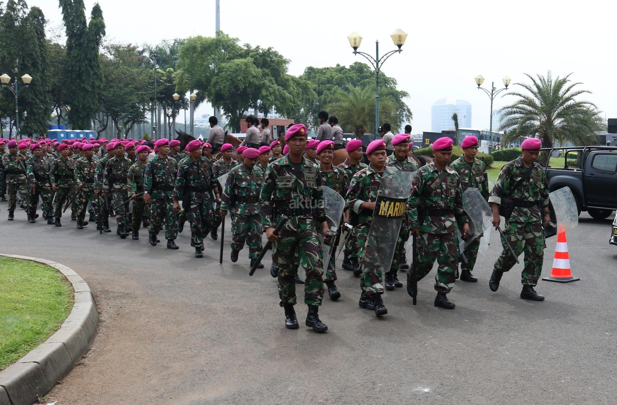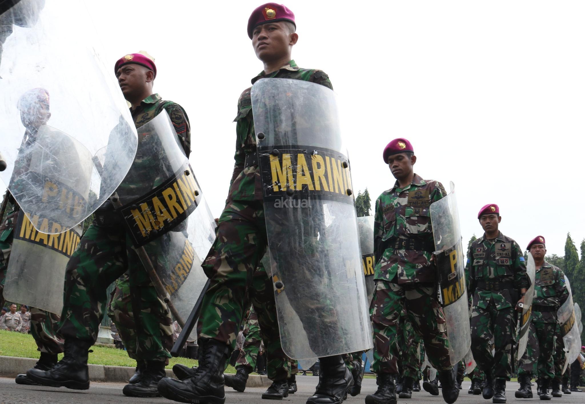 Apel yang bertujuan untuk mengamankan aksi demontrasi di Jakarta, Jumat (4/11/2016), menuntut kepastian proses hukum penistaan agama oleh Gubernur DKI Jakarta, Basuki Tjahaja Purnama (Ahok). Sebanyak 21.000 personel gabungan dari Polri/TNI dan Pemprov DKI Jakarta dikerahkan. AKTUAL/Munzir