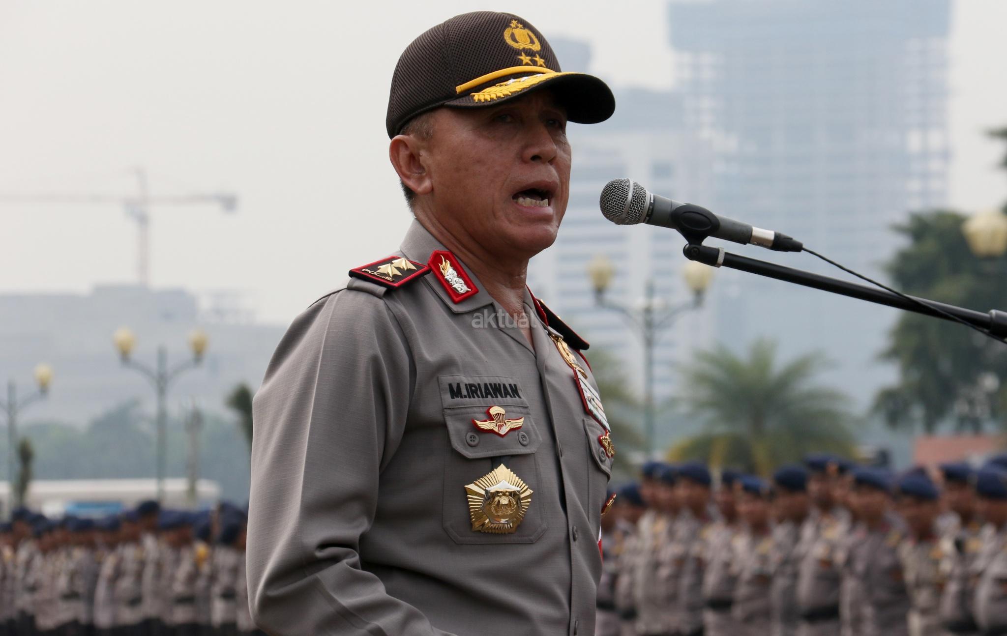 Kapolda Metro Jaya Irjen Pol M. Iriawan saat memimpin apel pasukan di silang Monas, Jakarta, Jumat (4/11/2016). Apel tersebut bertujuan untuk mengamankan aksi demontrasi menuntut kepastian proses hukum penistaan agama oleh Gubernur DKI Jakarta, Basuki Tjahaja Purnama (Ahok). Sebanyak 21.000 personel gabungan dari Polri/TNI dan Pemprov DKI Jakarta dikerahkan. AKTUAL/Munzir