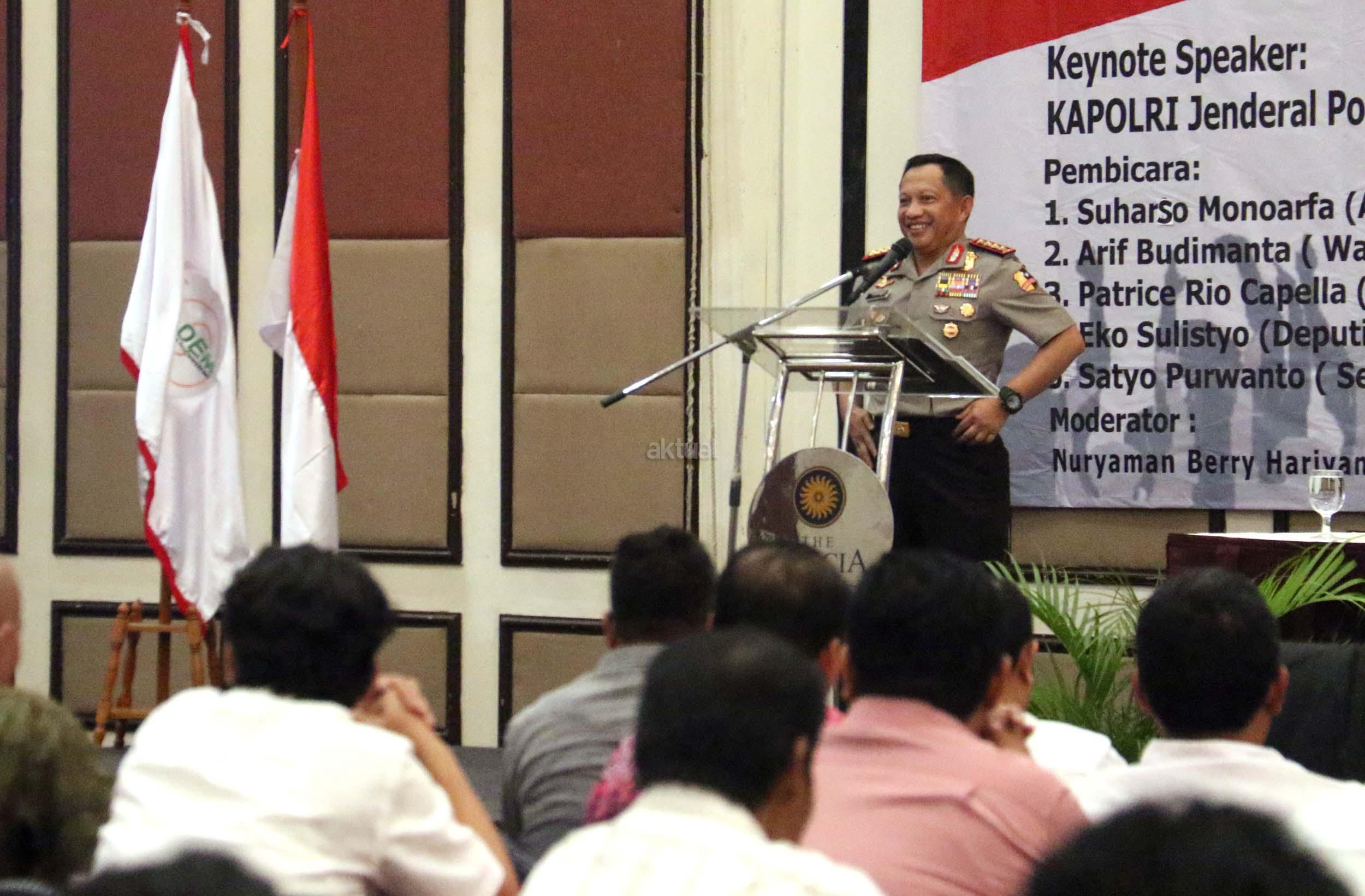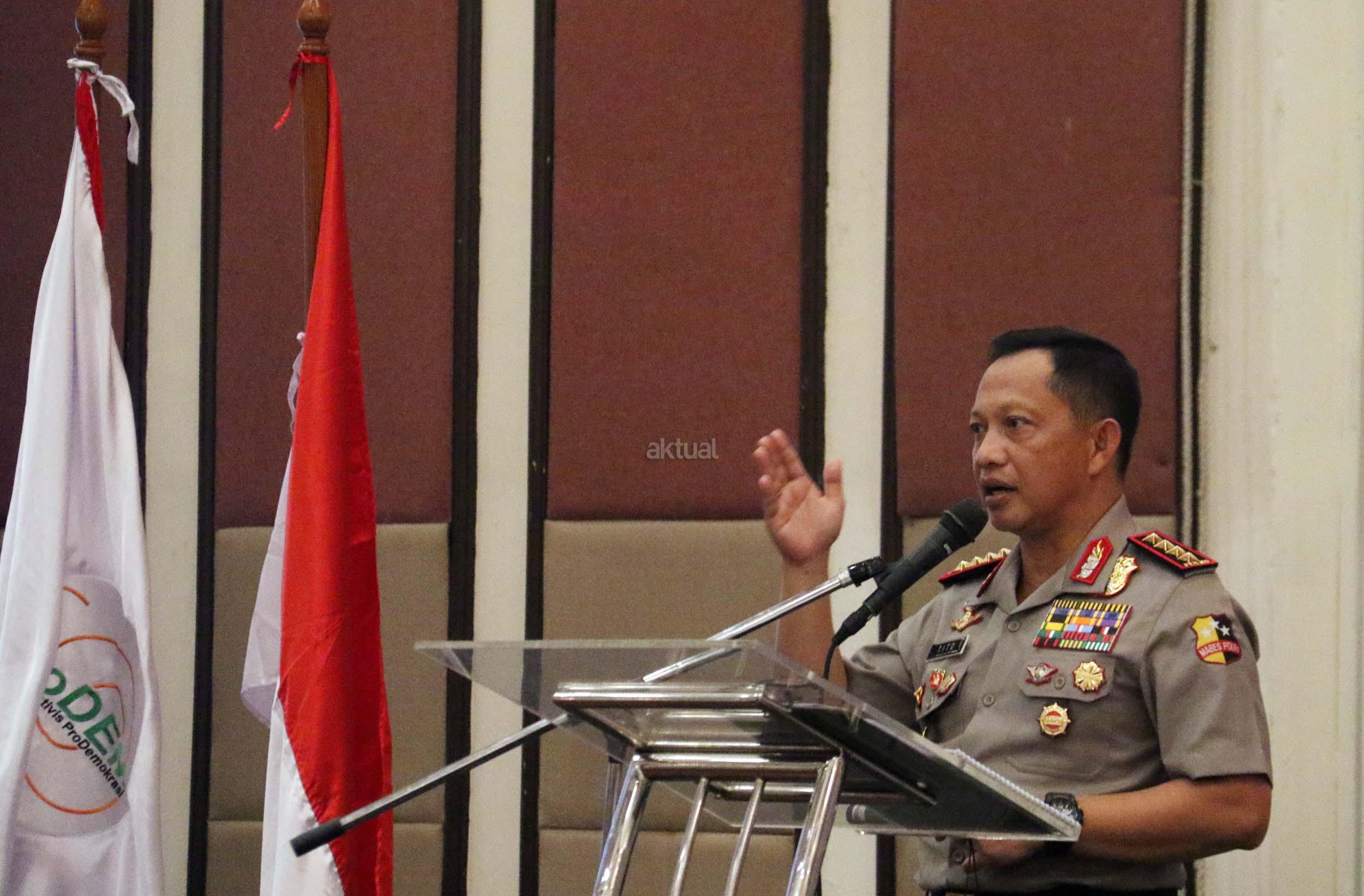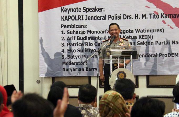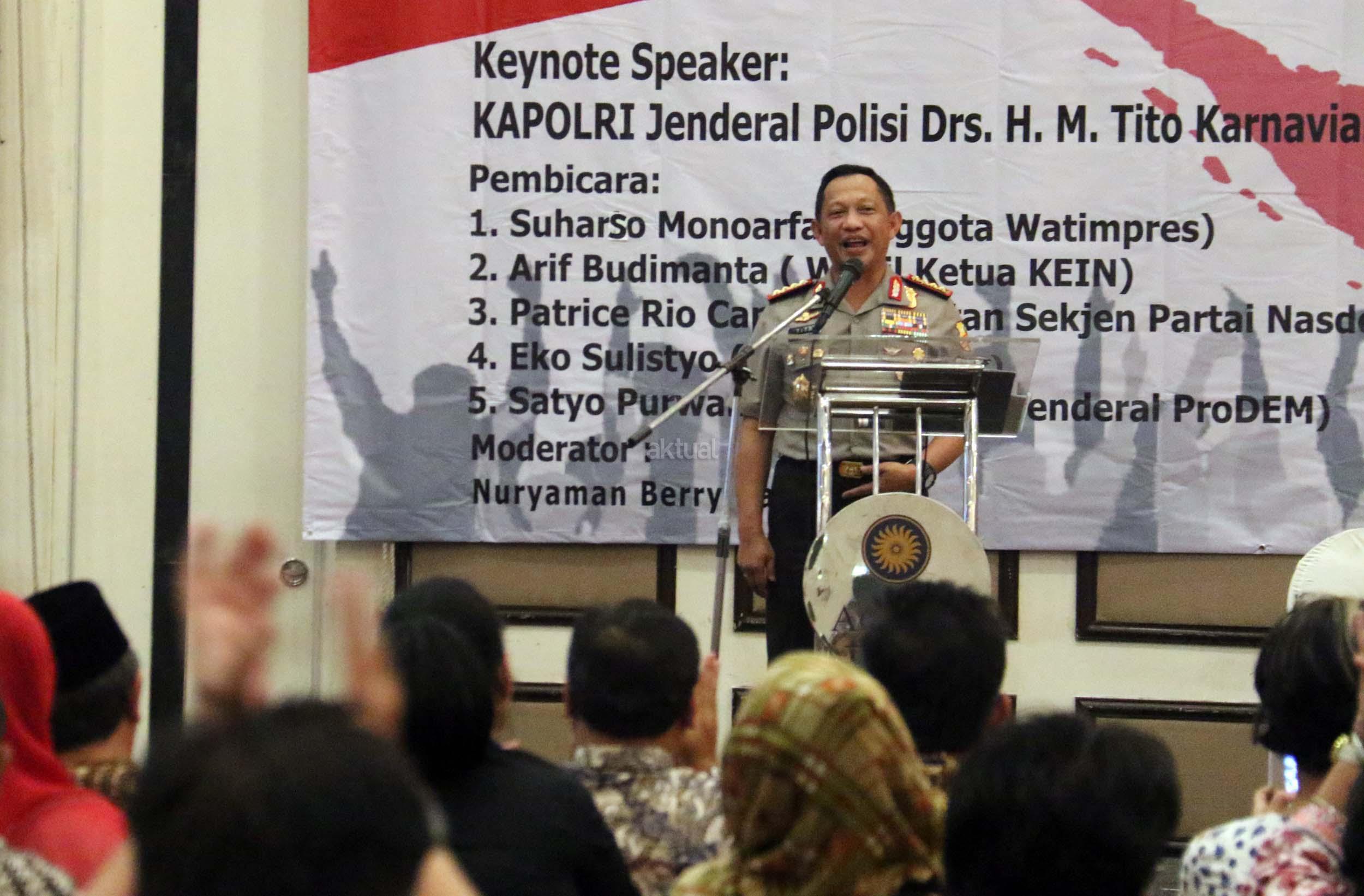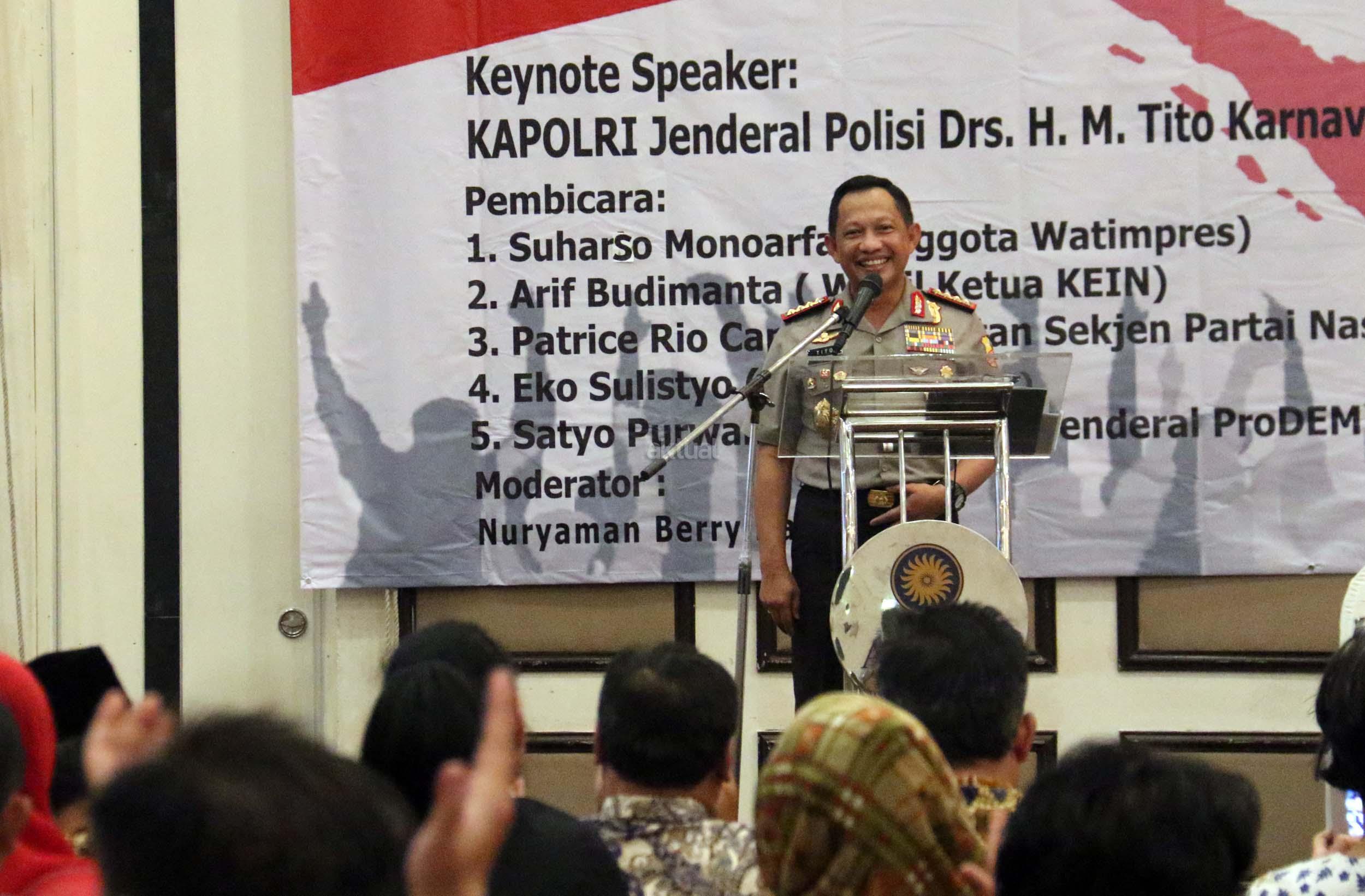 Kapolri Jenderal Pol Tito Karnavian saat menjadi Keynote Speaker dalam acara Pelantikan Pengurus Prodem periode 2016-2019 di Jakarta, Selasa (24/1/2017). Selain pelantikan Prodem juga melakukan diskusi yang mengambil tema "Demokrasi Dan Kesejahteraan.