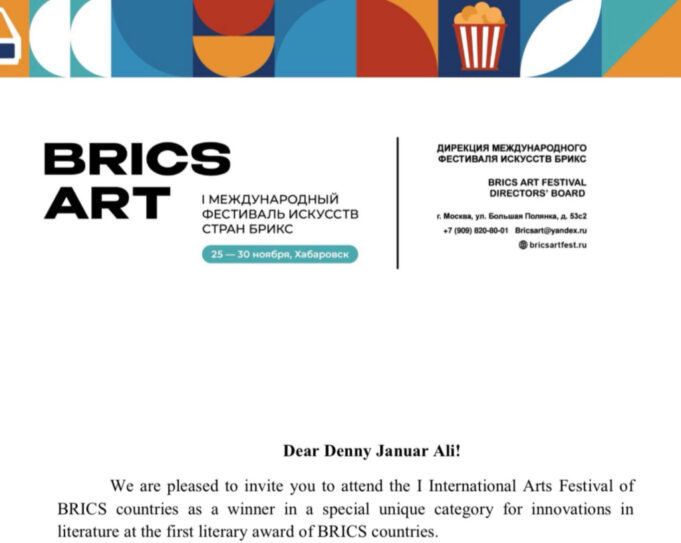 “Sejauh yang saya pahami,” ujar Denny, “ada dua penghargaan sastra dari BRICS. Namun ia tak mengetahui siapa pemenang penghargaan lainnya, dan dari negara mana.
