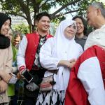 Pendiri Artha Graha Networks, Tomy Winata didampingi Walikota Jakarta Selatan, Tri Kurniadi dan Istri Aktor Alm Didi Petet, Uce Sriasih saat membuka destinasi wisata dan kuliner di kawasan niaga terpadu Sudirman Central Business District (SCBD), Jakarta, Sabtu (29/10), Kawasan SCBD Jakarta akan jadi pusat kuliner dan olahraga setiap akhir pekannya. Masyarakat dapat menikmati puluhan stand kuliner yang digelar di lingkaran tengah Lot 8 SCBD yang pada hari biasa digunakan untuk areal parkir. Ragam kuliner merakyat dan fasilitas olahraga disediakan oleh pihak penyelenggara. AKUAL/Tino Oktaviano