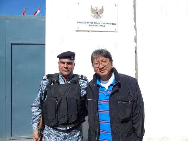 Jakarta, Aktual.co — Kedutaan Besar Republik Indonesia (KBRI) di Baghdad, Irak, sebetulnya perlu dijaga oleh prajurit TNI, bukan semata-mata mengandalkan perlindungan dari petugas keamanan setempat yang sangat minim. Baghdad, bersama dengan Kabul (Afganistan), Damascus (Suriah), Tripoli (Libya), dan Sana’a (Yaman), oleh Kementerian Luar Negeri RI memang dikategorikan sebagai daerah penugasan yang berbahaya. Demikian dinyatakan Dubes RI untuk Irak, Safzen Noerdin, kepada Redaktur Senior Aktual.co, Satrio Arismunandar. Satrio menjadi tamu di KBRI Baghdad, Selasa (24/2). Satrio sudah melakukan kunjungan jurnalistik ke berbagai wilayah di Irak sejak Kamis (19/2). Safzen menunjukkan praktik pengamanan yang lazim dilakukan kedutaan-kedutaan lain di Baghdad, misalnya, kedutaan Amerika Serikat. Jangankan di Baghdad yang pengamanannya sangat masif, Kedutaan Besar AS di Jakarta saja juga dijaga oleh anggota Marinir AS. Saat ini KBRI Baghdad dijaga oleh 8 polisi federal Irak yang bertugas secara bergiliran. Jadi KBRI Baghdad praktis dalam setiap saat hanya dijaga oleh dua polisi. Jika dari dua orang ini, yang satu sedang istirahat makan siang, dan yang satu lagi mengantuk atau kecapekan, praktis KBRI Baghdad adalah tanpa perlindungan. Ketika ditanya, kualifikasi anggota TNI seperti apa yang dibutuhkan KBRI Baghdad, Safzen menjawab tegas: “Saya butuh prajurit yang punya naluri tempur!” Safzen mengaku sudah bicara dengan Panglima TNI Jenderal Moeldoko tenteng kebutuhan ini, dan prinsipnya Panglima TNI tidak keberatan menyediakan prajurit. Namun hal itu masih harus dikaji di Kementerian Luar Negeri RI, karena pasti berimplikasi pada biaya dan aspek-aspek lain.