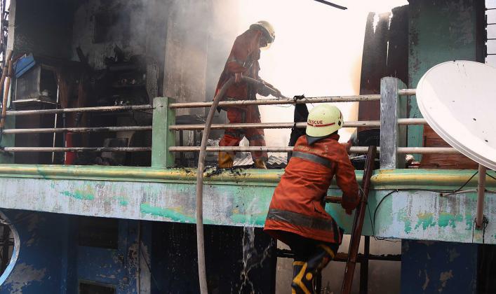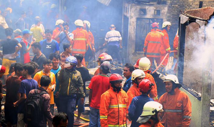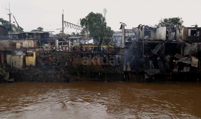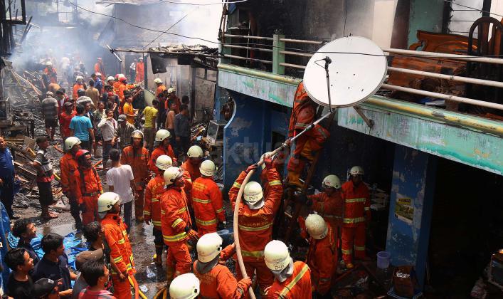 Dugaan, kebakaran yang melanda kawasan tersebut disebabkan konsleting listrik dari salah satu rumah warga dan sedikitnya 42 mobil pemadam sudah dikerahkan untuk memadamkan kobaran api.
