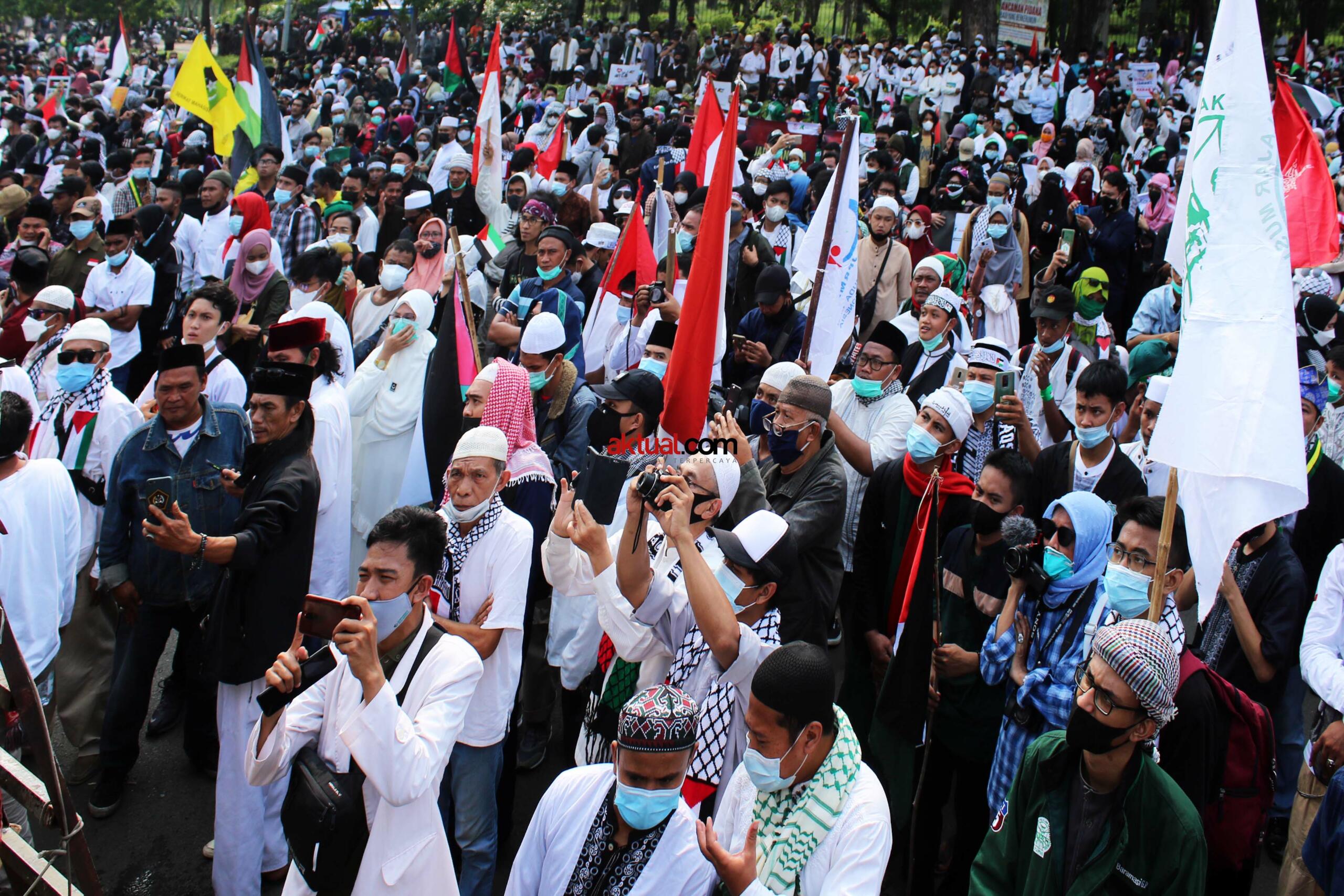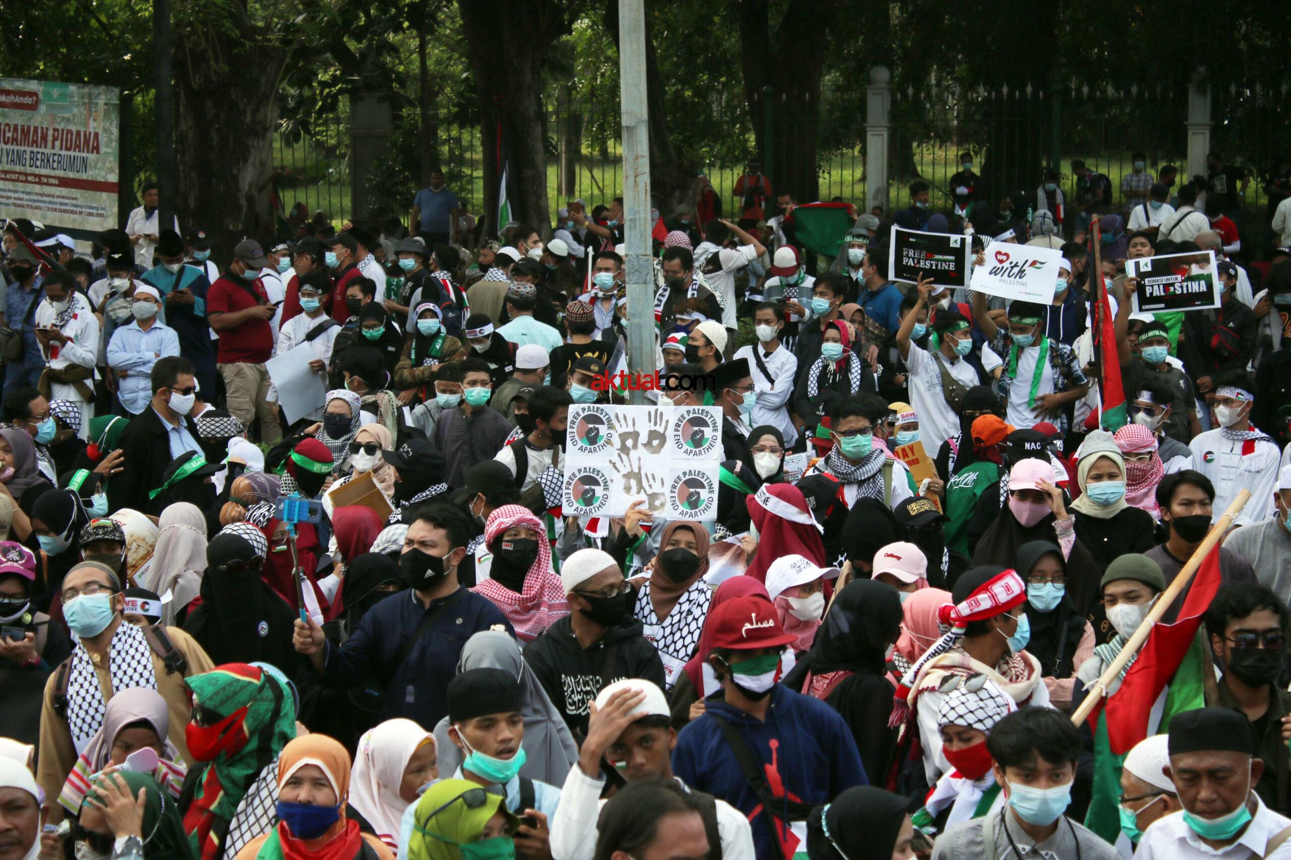Protes ini juga disebut sebagai bentuk dukungan moril kepada rakyat Palestina yang kerap menjadi korban kebrutalan dari tentara Zionis Israel.