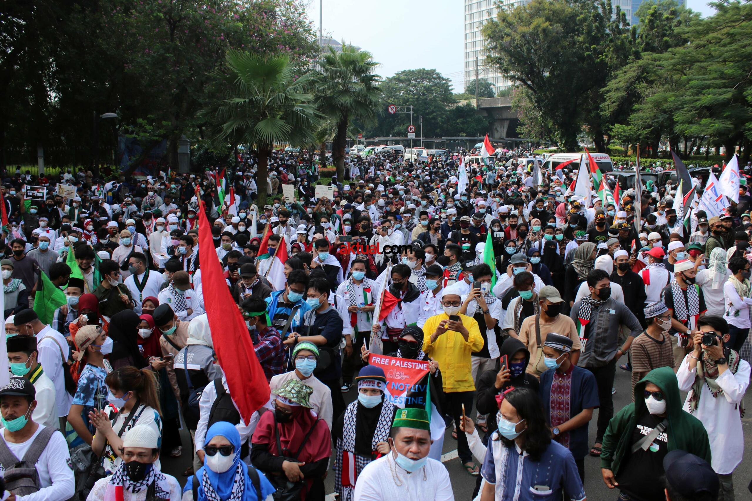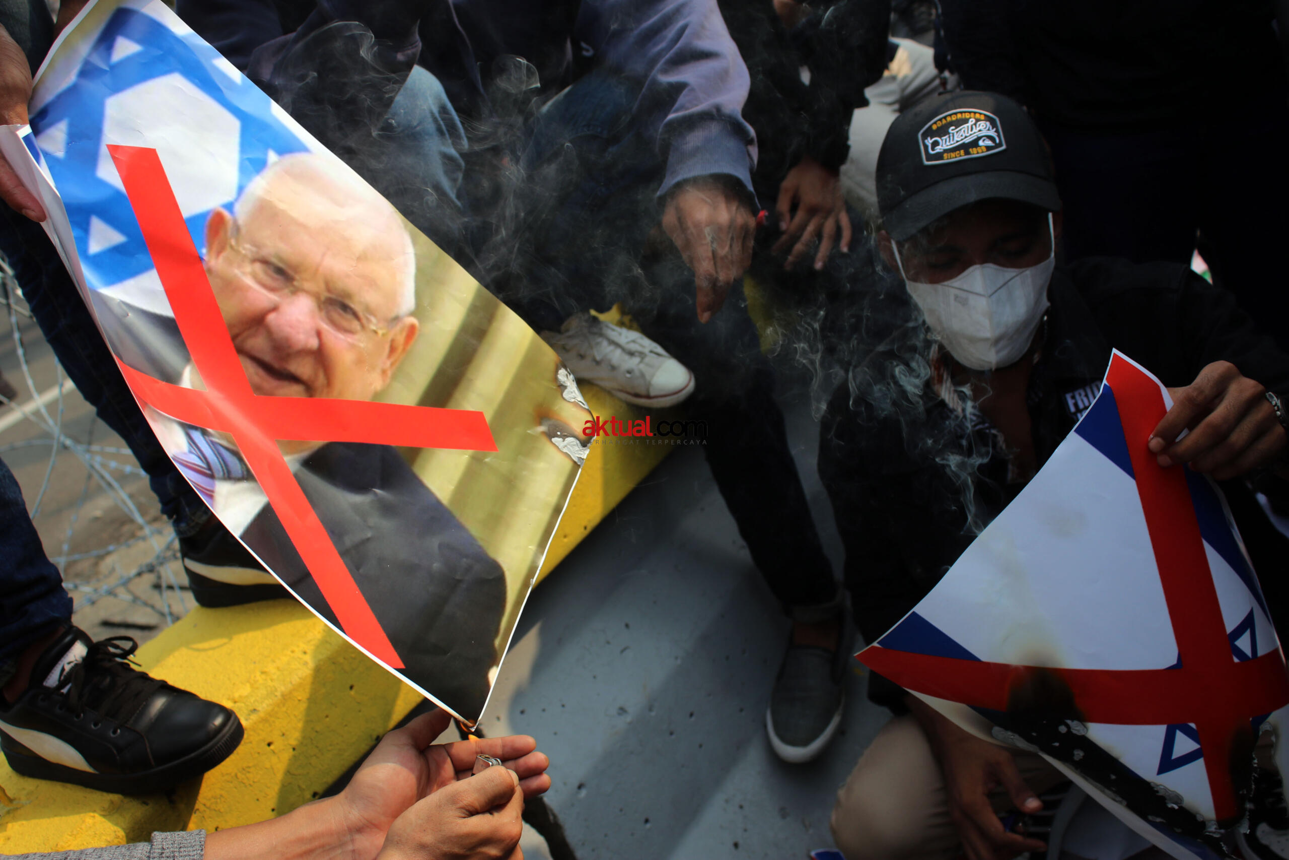 Aksi unjuk rasa oleh sejumlah elemen masyarakat juga mahasiswa dalam menyikapi tindak kekerasan yang dilakukan oleh tentara Zionis Israel, sempat diwarnai aksi bakar poster bergambar bendera Israel dan foto Presiden Israel Reuven Rivlin.
