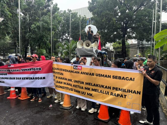 Jakarta, aktual.com – Ratusan massa dari Koalisi Aksi Pembela Keadilan (KaPK) menggeruduk Gedung Mahkamah Konstitusi (MK), Selasa (18/11). KaPK mendesak Suhartoyo mundur sebagai Ketua MK.