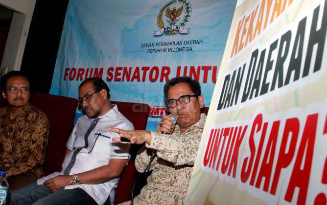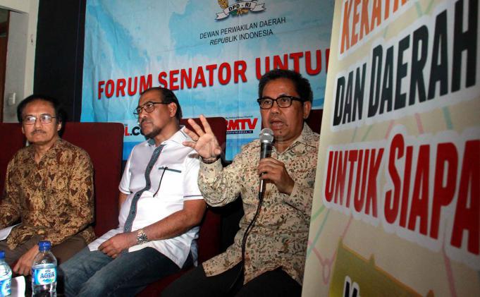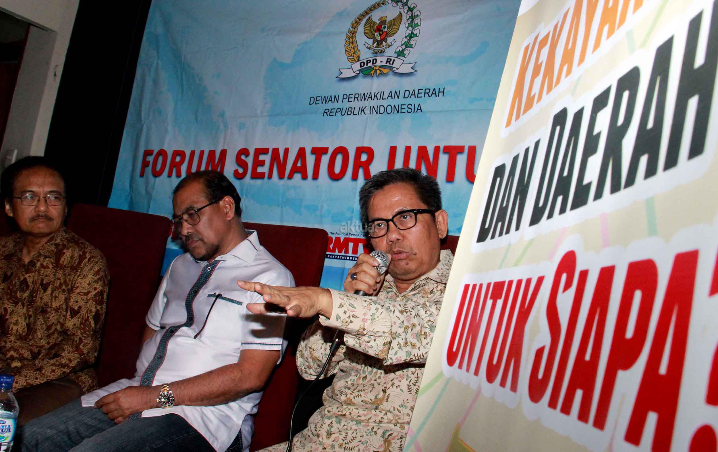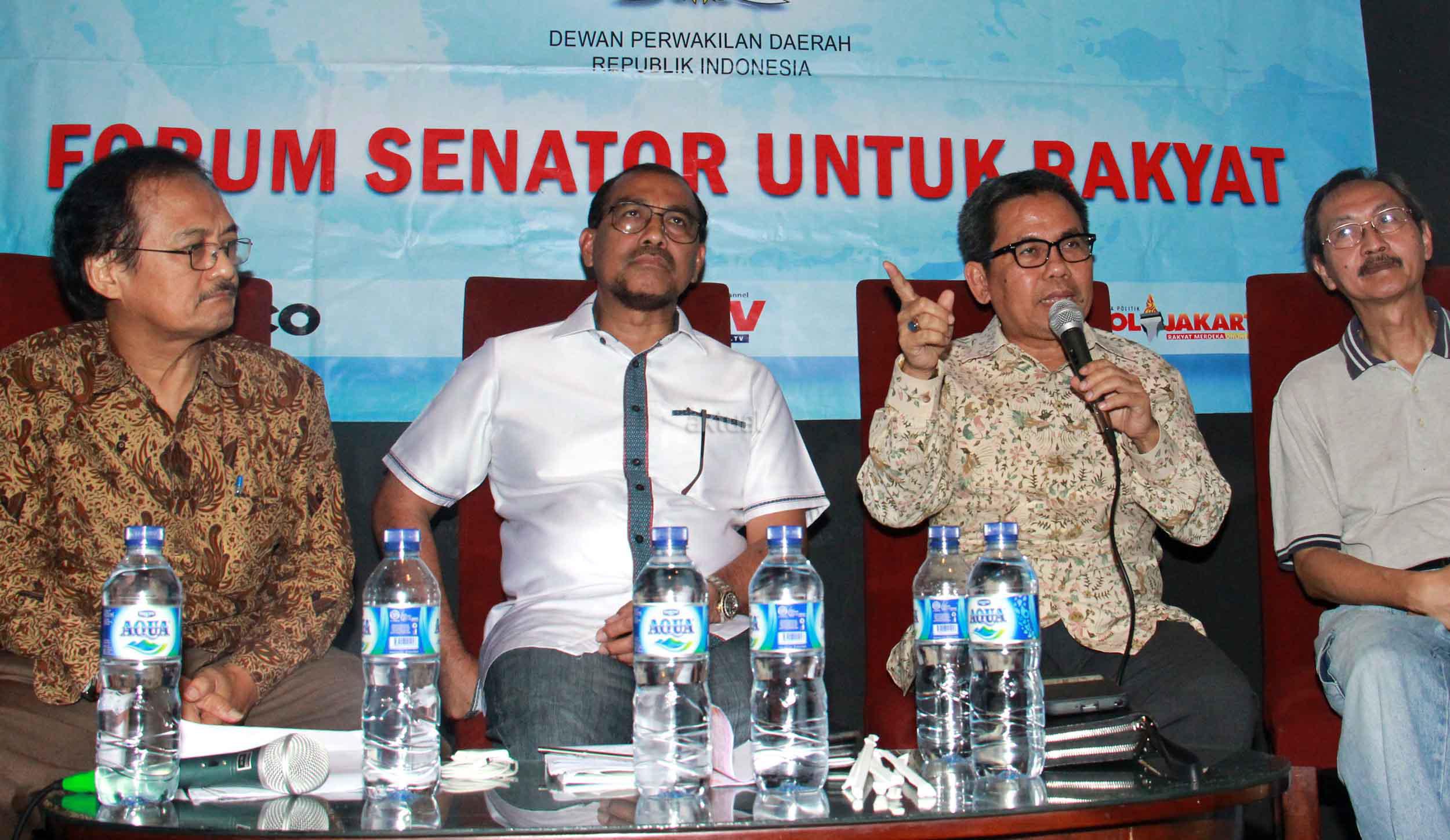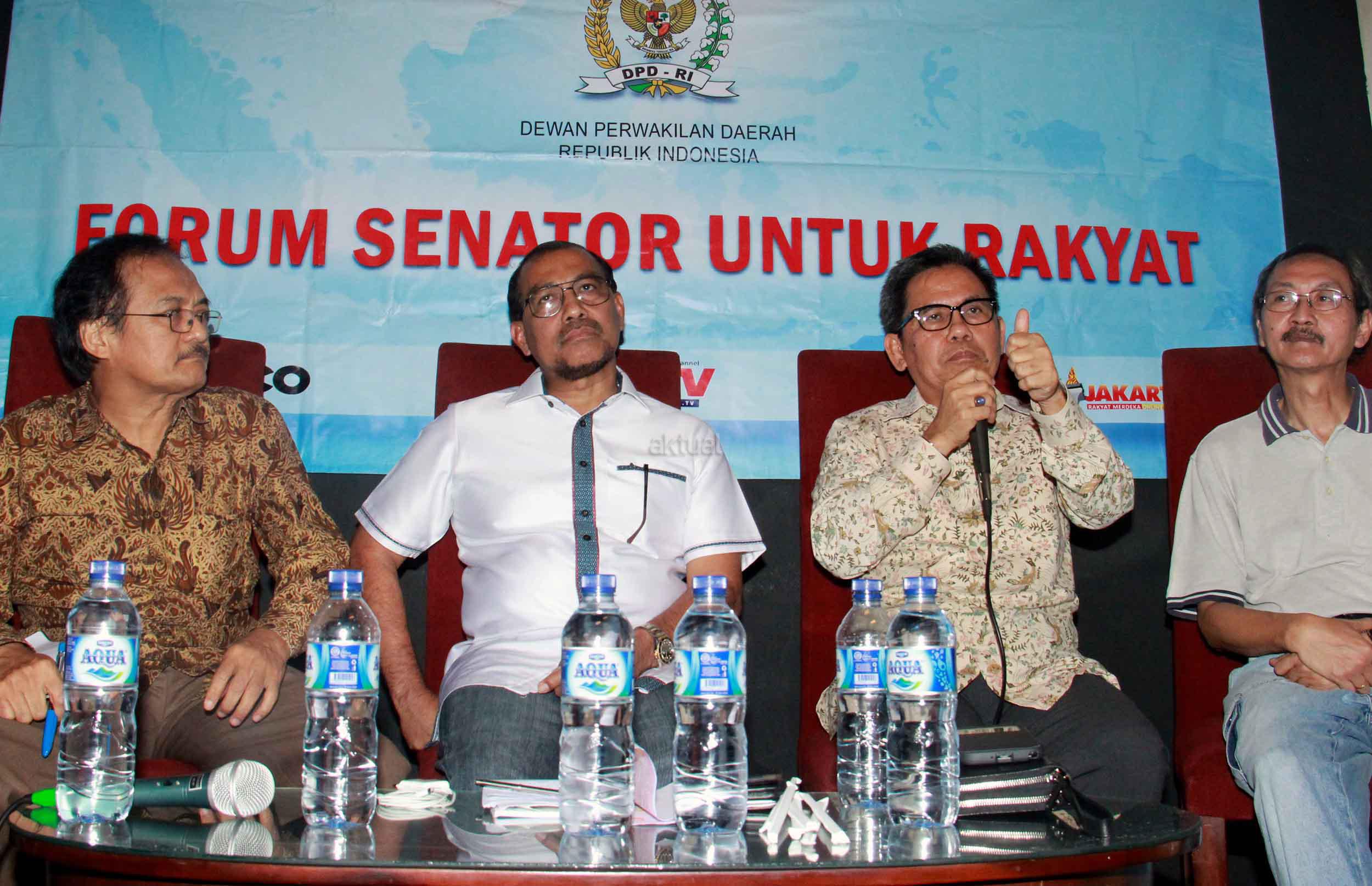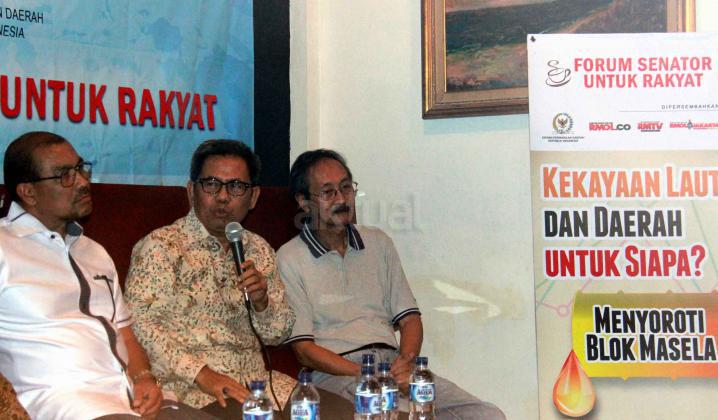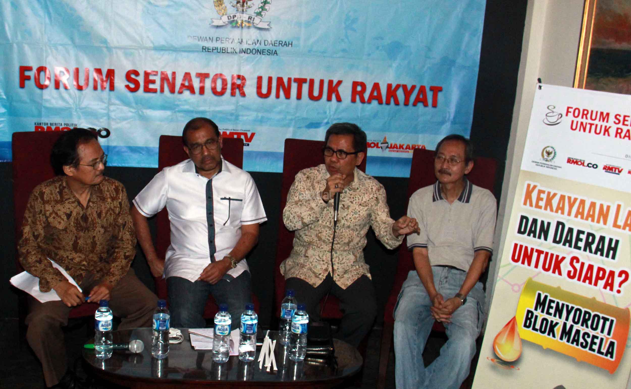 Kiri-kanan ; Pengamat Gad Dan Perminyakan Bemby Uripto, Anggota DPPD RI Dapil Maluku Nono Sampono, Ketua Komisi VII DPR RI Kardaya Warnika, Mantan Dirut PT Badak NGL dalam diskusi Forum Senator Untuk Rakyat (FSuR), di Jakarta, Minggu (11/10/2015). Diskusi mingguan Forum Senator Untuk Rakyat (FSuR) mengambil tema " Kekayaan Laut Dan Daerah Untuk Siapa (Menyoroti Blok Masela)".