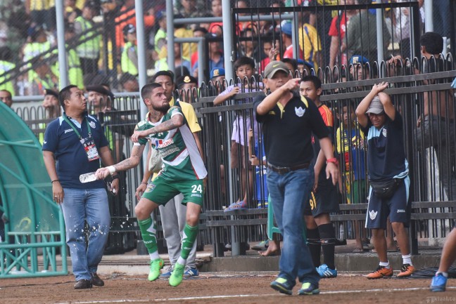Akibatnya, pertandingan sempat terhenti sejenak, yakni beberapa menit sebelum “injury time” babak kedua.