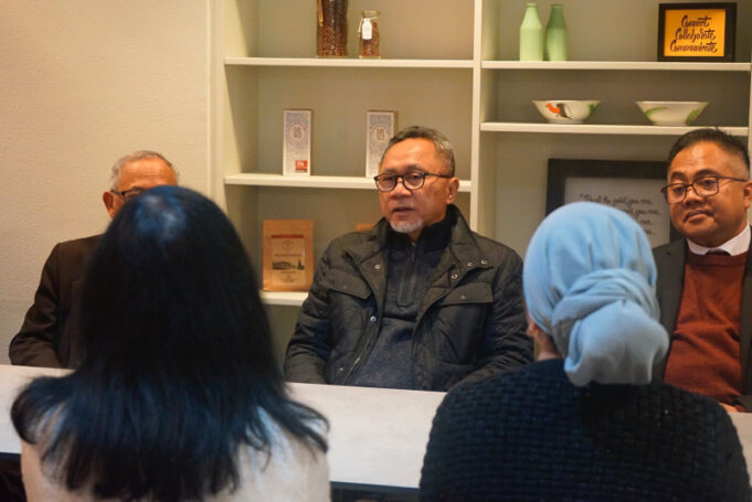 Sydney, Aktual.com – Upaya memperkuat ekspor ke berbagai negara di dunia terus dilakukan Kementerian Perdagangan. Dalam pertemuan dengan diaspora Indonesia di Australia, Menteri Perdagangan Zulkifli Hasan berjanji akan memfasilitasi anak muda Indonesia di Negeri Kanguru itu agar bisa menjadi pengusaha sukses. Para diaspora ini diharapkan bisa mempromosikan Indonesia, baik produk, kuliner, seni, maupun pariwisata. Demikian diungkapkan Mendag Zulkifli Hasan di hadapan perwakilan diaspora Indonesia di Australia pada hari ini, Selasa (4/7). Meskipun singkat, pertemuan yang berlangsung di sela kunjungan kerja ke Australia itu berjalan akrab dan hangat.