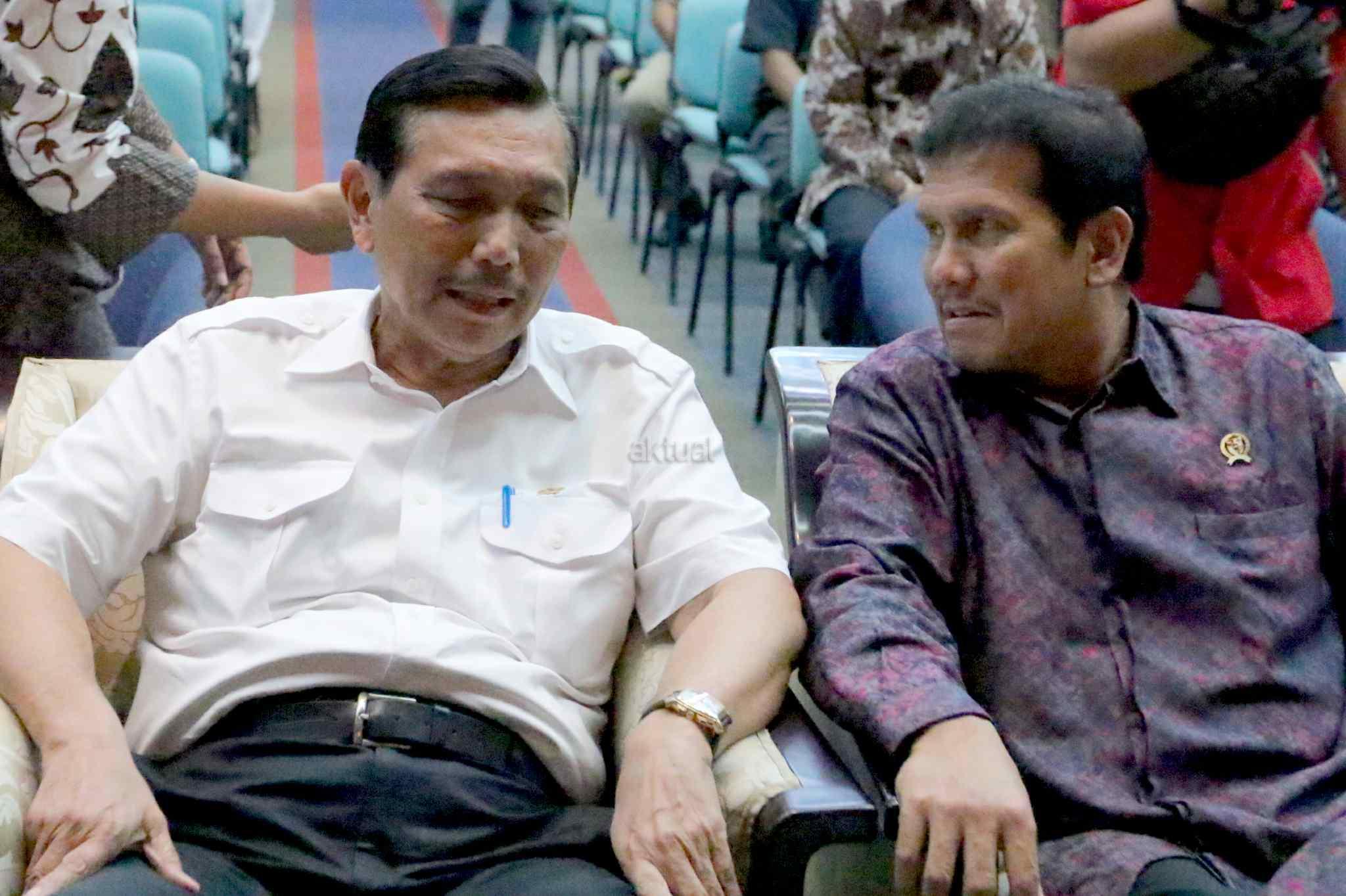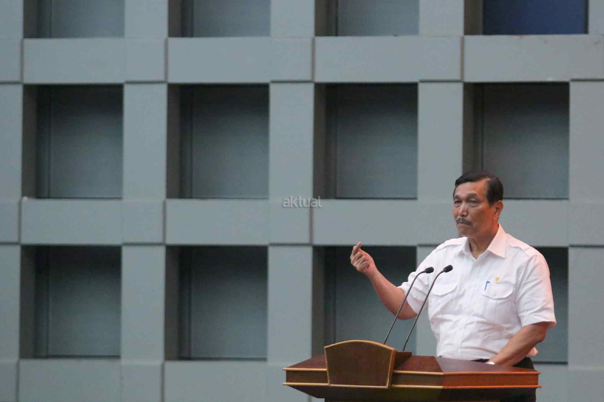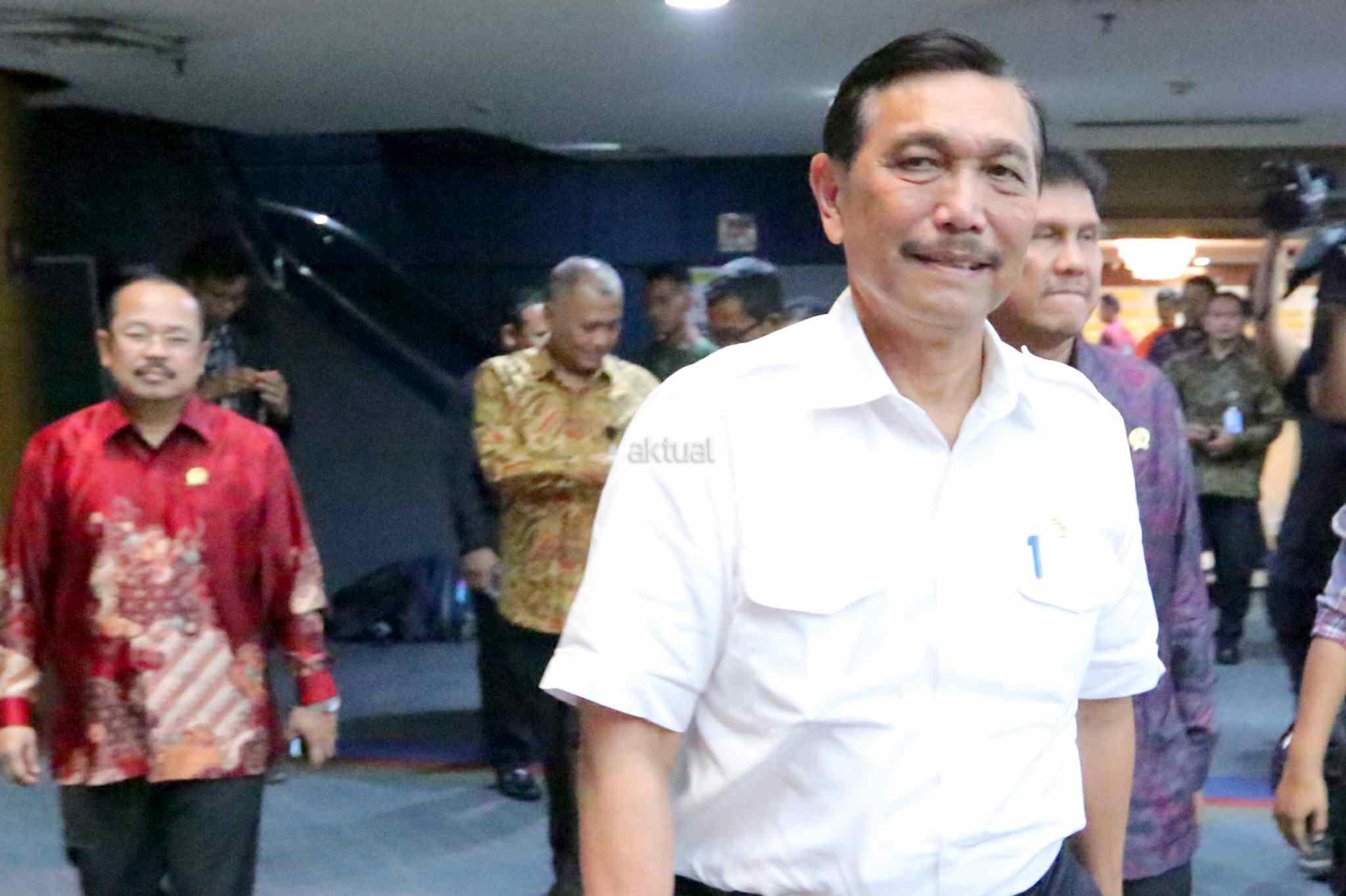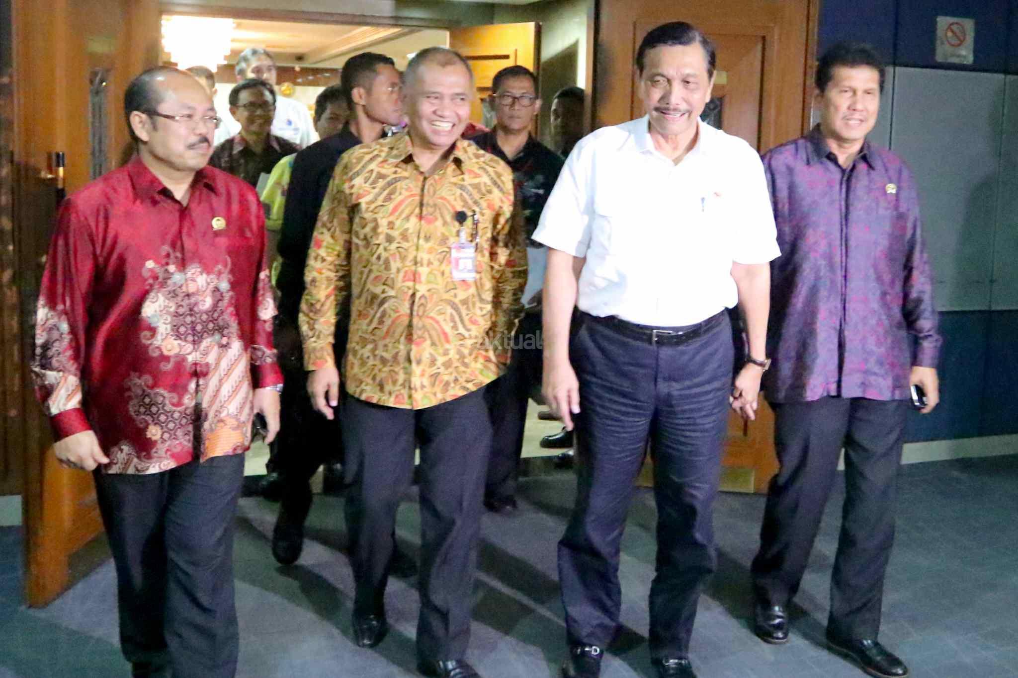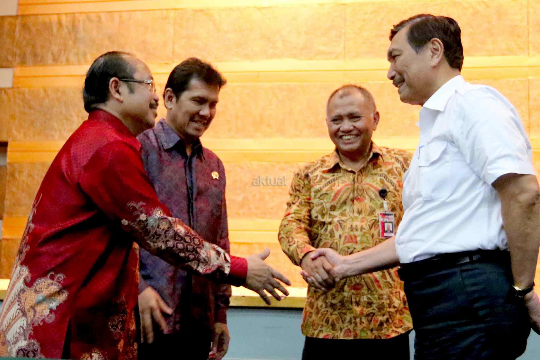 Dari kanan ke kiri, Menko Maritim Luhut Binsar Panjaitan, Menpanrb Asman Abnur, Ketua KPK Agus Rahardjo, dan Ketua Ombudsman Republik Indonesia Amzulian Rifai saat melakukan penandatangan pencanangan zona integritas Kementerian Koordinator Bidang Maritim di Jakarta , Kamis (15/9). Dalam pencanangan zona integrasi tersebut Menko Maritim mencanangkan zona bebas korupsi dan wilayah birokrasi bersih dan melayani. AKTUAL/TINO OKTAVIANO