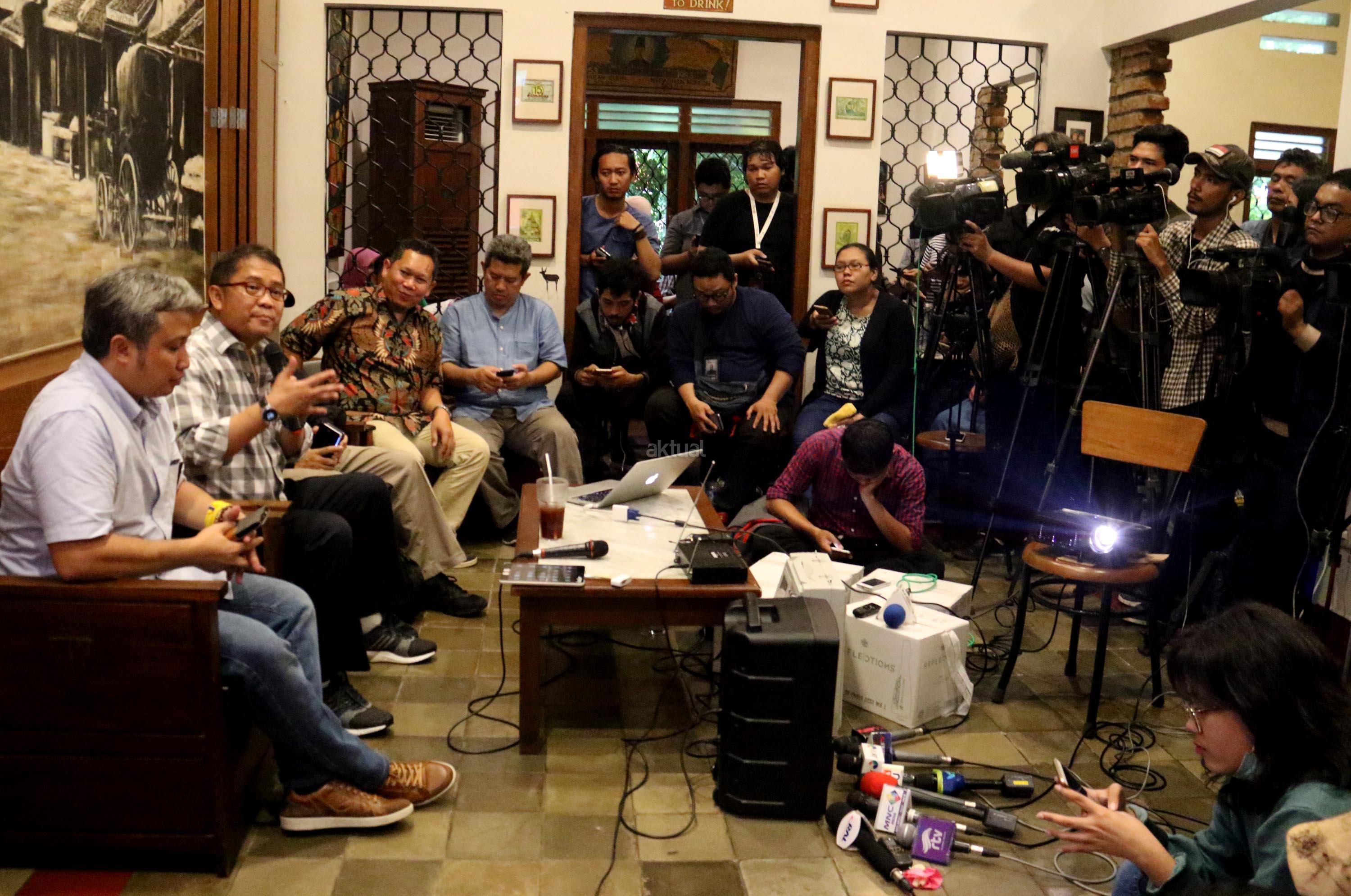 Menteri Komunikasi dan Informasi Rudiantara (tengah) memberikan penjelasan mengenai antispasi dan langkah preventif terhadap serangan Malware Ransomware PETYA di Jakarta, Jumat (30/6/2017). Pemerintah meminta masyakarat untuk mengantisipasi serangan ransomware tersebut dengan rajin membackup data, menggunakan password yang aman dan diganti secara berkala serta menggunakan sistem operasi dan anti virus berlisensi asli yang diupdate secara rutin. AKTUAL/Munzir