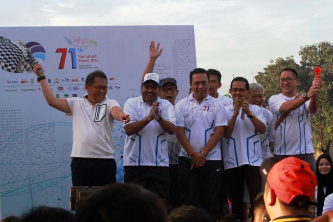 Menteri Komunikasi dan Informatika RI, Rudiantara bersama President Director & CEO Indosat Ooredoo sekaligus sebagai Ketua Umum Hari Bhakti Postel ke-71, Alexander Rusli, melepas lomba lari dalam rangka memperingati Hari Bakti Pos dan Telekomunikasi (Postel) ke-71 di Plaza Barat, Gelora Bung Karno, Minggu (30/10). Kemenkominfo bersama dengan seluruh operator dan komunitas telekomunikasi nasional menyelenggarakan Digital Running for Innovation dan Digital Market serta Pameran OTT. Hari Bhakti Postel diperingati setiap 27 September setiap tahunnya sebagai momentum memperingati perjuangan insan Pos dan Telekomunikasi memperebutkan dan mempertahankan aset sarana prasarana Pos dan Telekomunikasi pasca Kemerdekaan RI. AKTUAL/HO