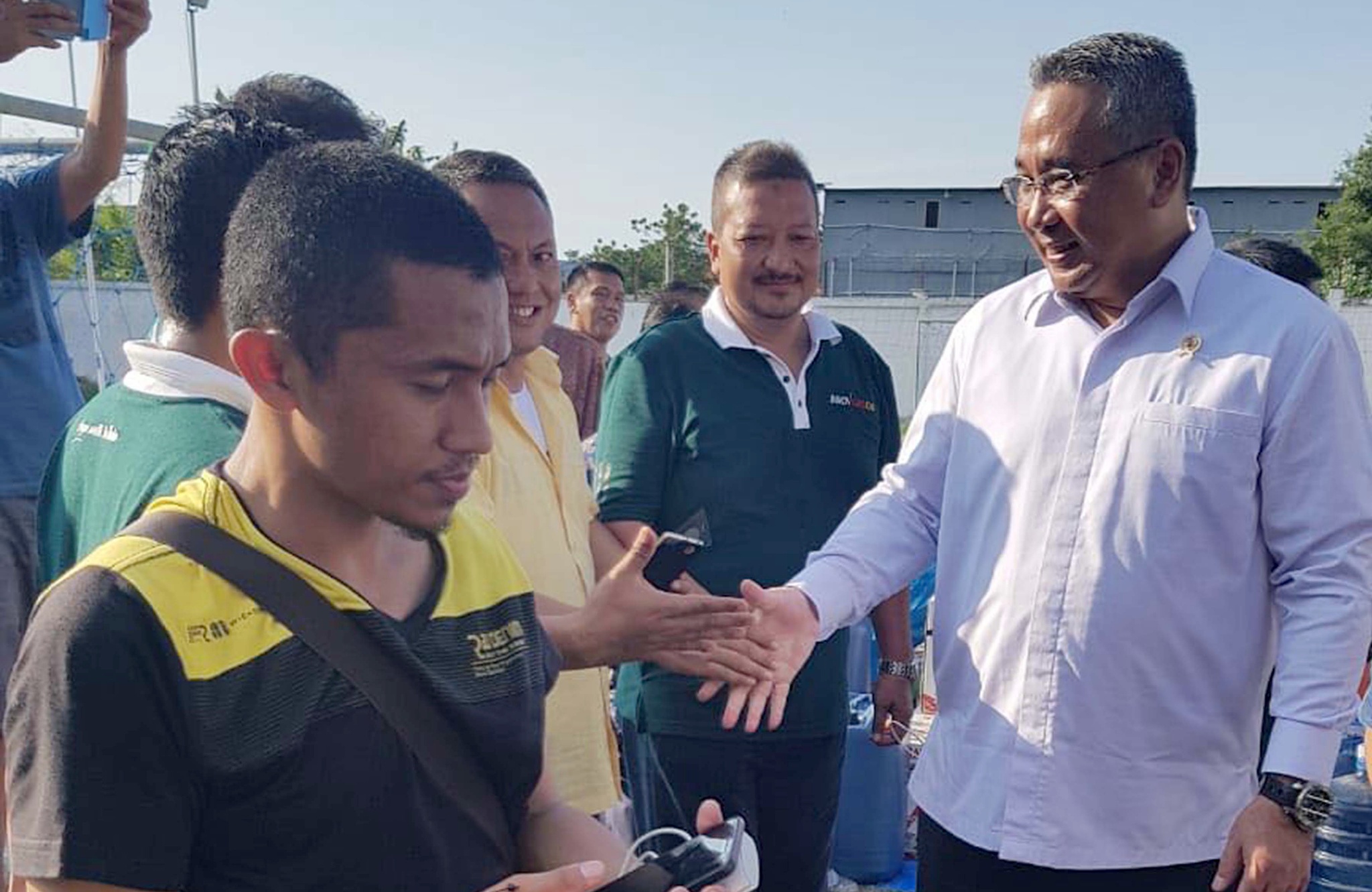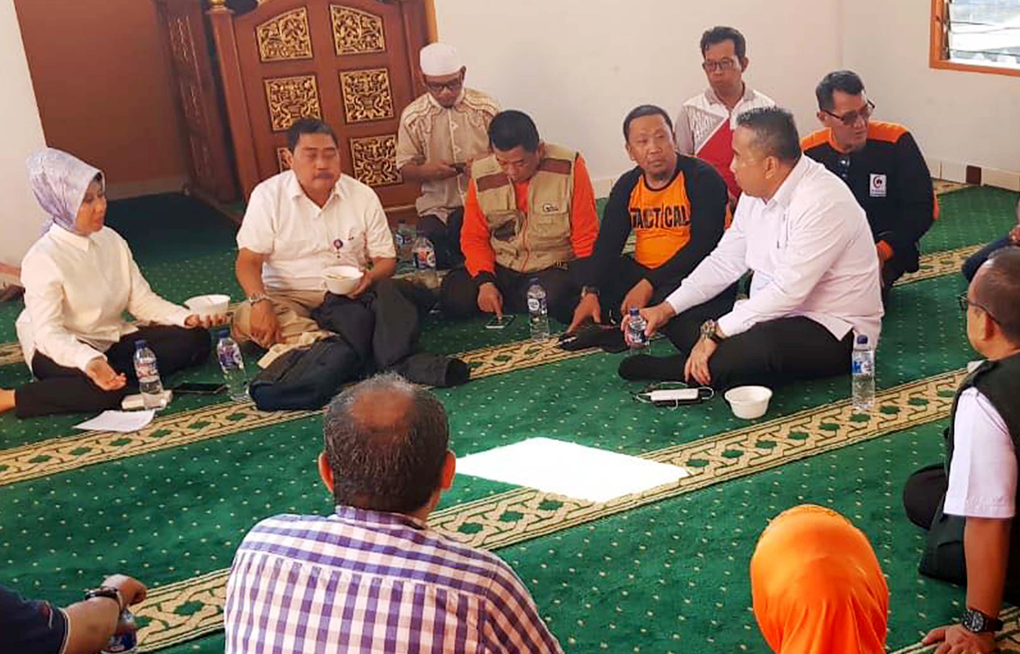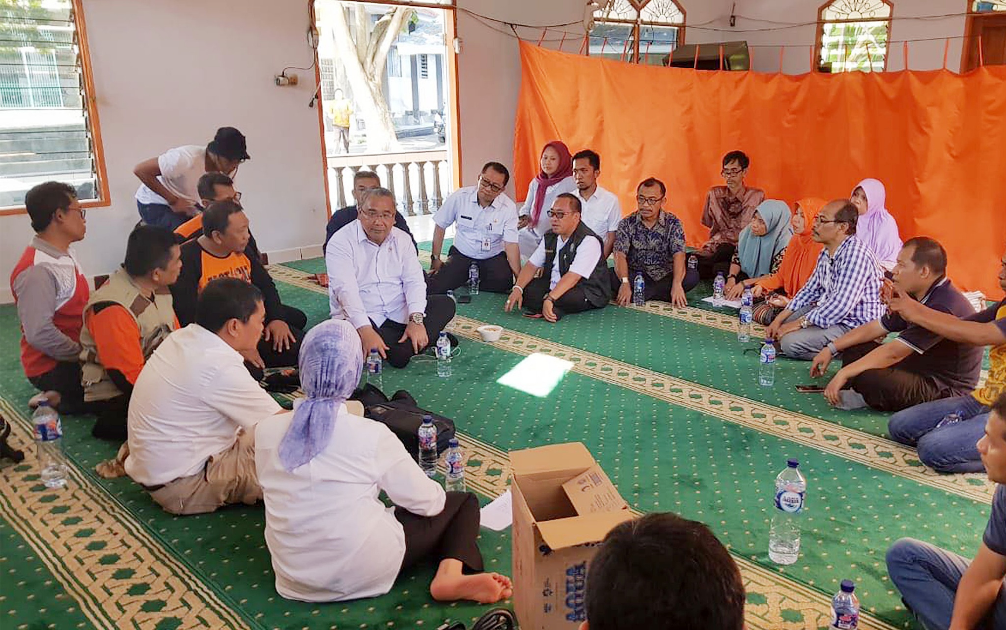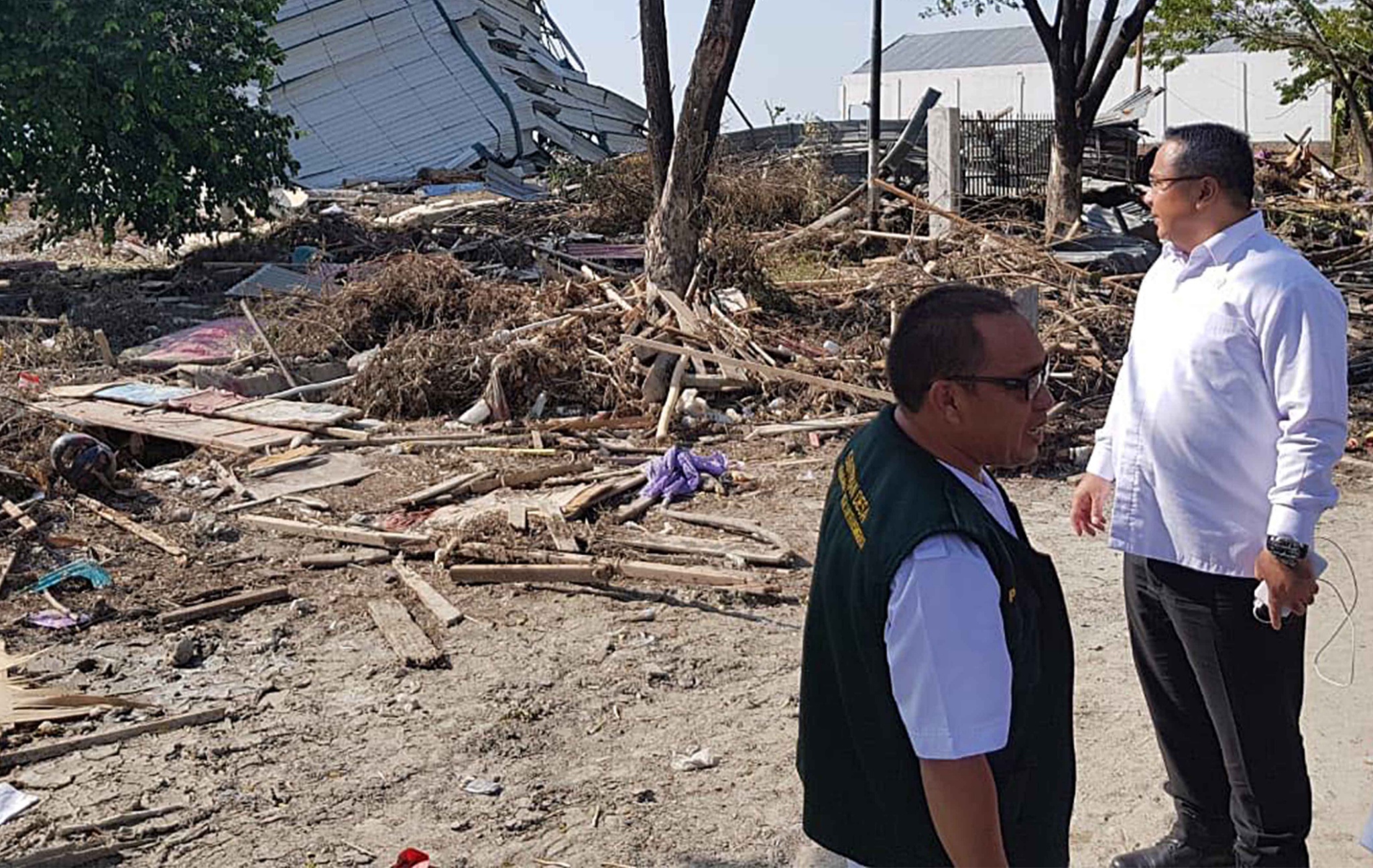 Menteri Desa, Pembangunan Daerah Tertinggal, dan Transmigrasi (Mendes PDTT) Eko Putro Sandjojo, berdialog dengan jajarannya saat persiapan posko pengungsi di Balai Transmigrasi Kota Palu, Sulawesi Tengah, Selasa (2/10). Posko dibantu dari perusahaan swasta dan BUMN (Badan Usaha Milik Negara) dapat menampung hingga 2.000 pengungsi dan menyediakan kebutuhan logistik serta tenaga medis. Foto : Dok : Kemendes PDTT
