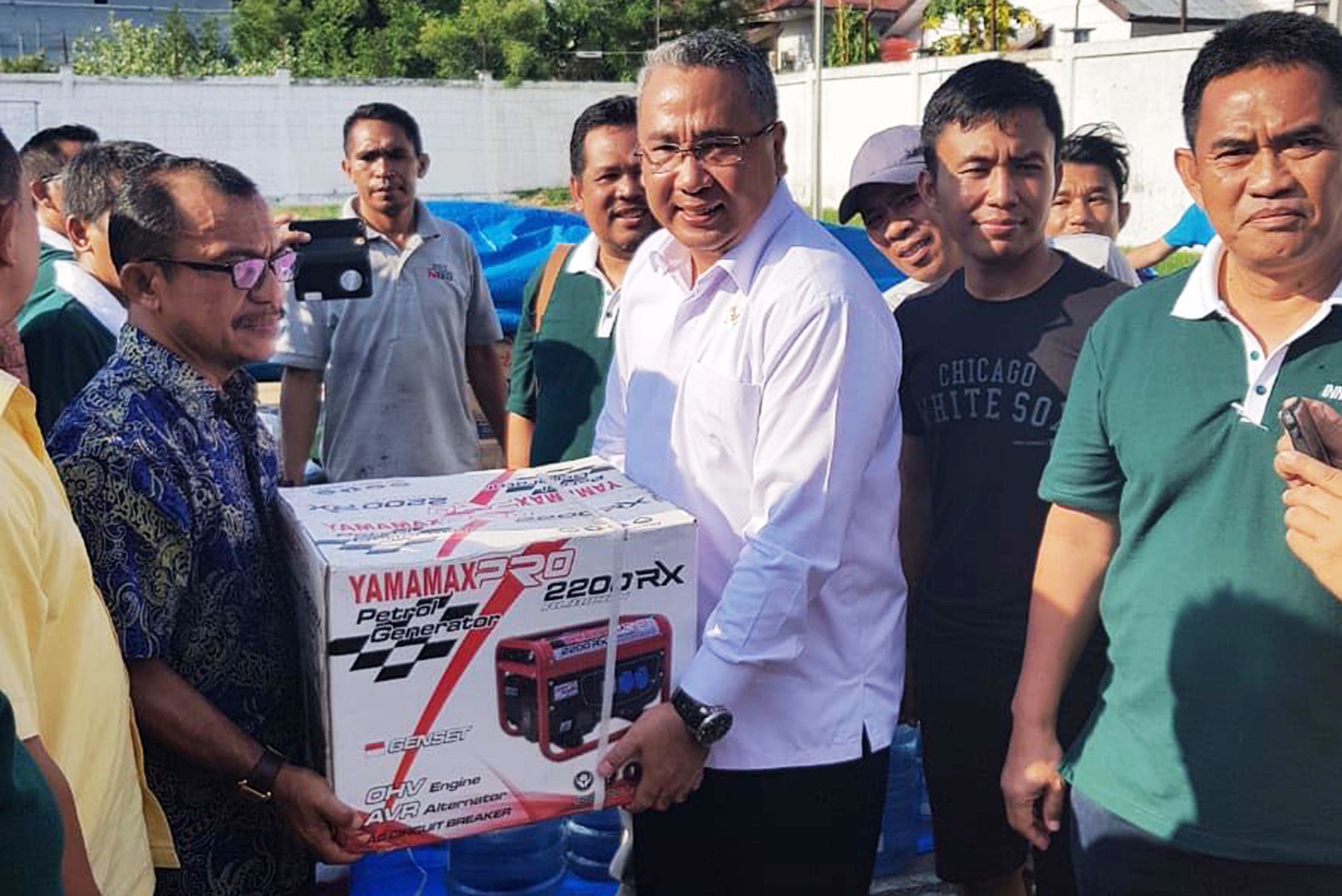 Menteri Desa, Pembangunan Daerah Tertinggal, dan Transmigrasi (Mendes PDTT) Eko Putro Sandjojo, memberikan bantuan kepadab warga yang menjadi korban gempa saat persiapan posko pengungsi di Balai Transmigrasi Kota Palu, Sulawesi Tengah, Selasa (2/10). Posko dibantu dari perusahaan swasta dan BUMN (Badan Usaha Milik Negara) dapat menampung hingga 2.000 pengungsi dan menyediakan kebutuhan logistik serta tenaga medis. AKTUAL/Dok Kemendes