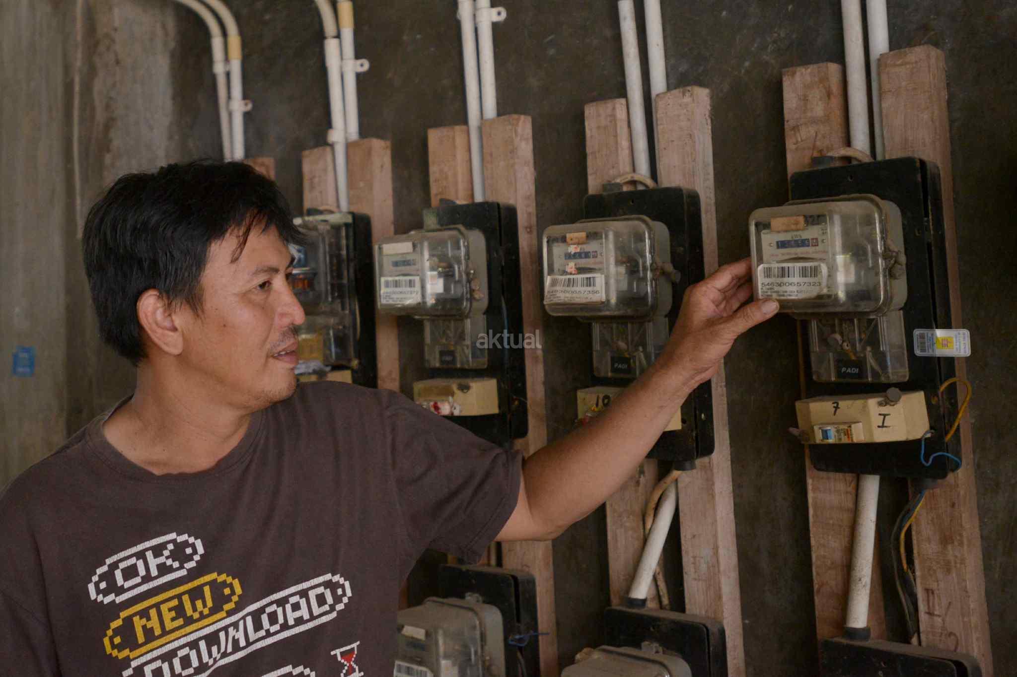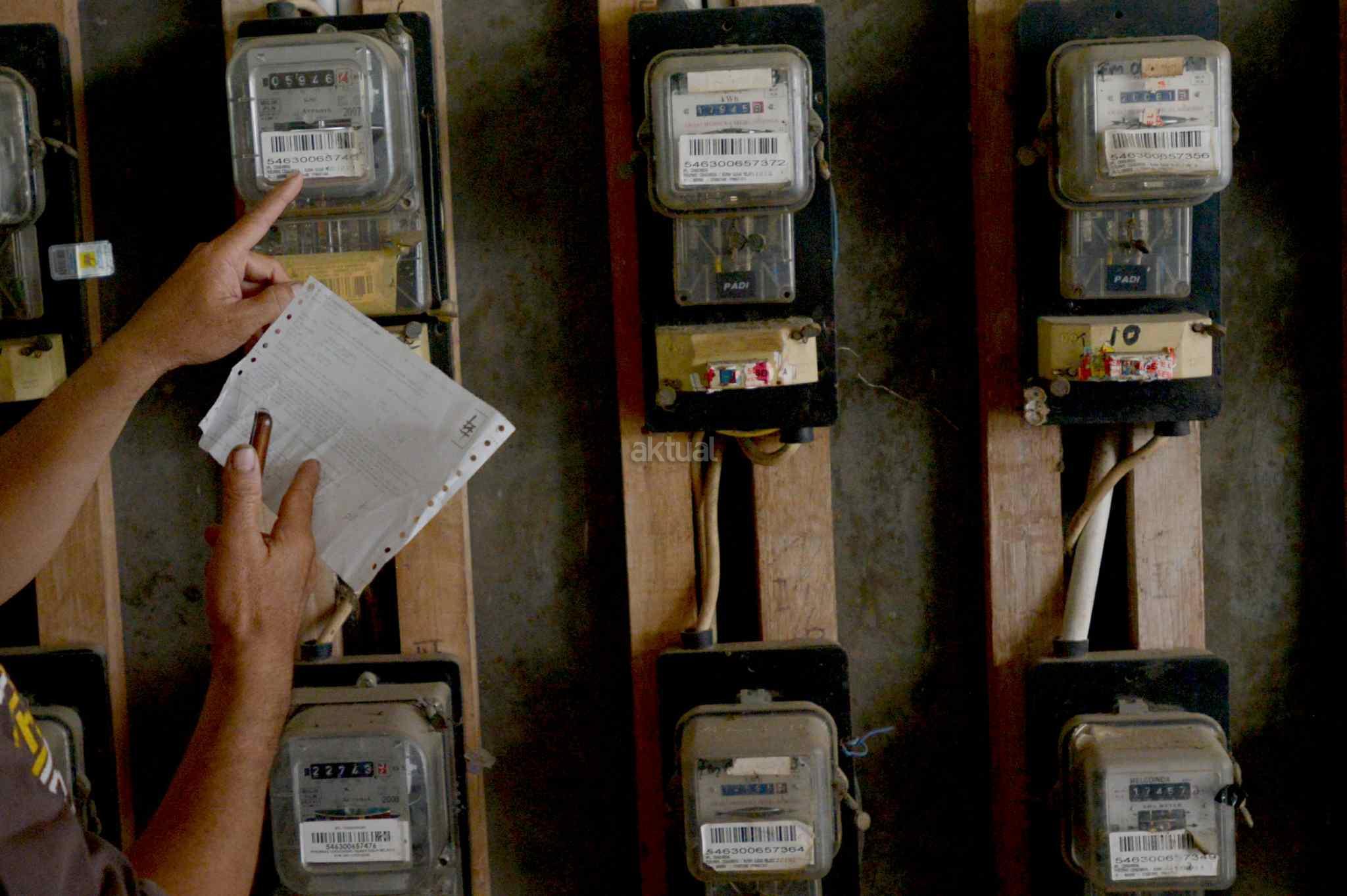 Warga memeriksa meteran listrik di Rumah Susun Bumi Cengkareng Indah, Jakarta, Sabtu (21/1). Dirjen Ketenagalistrikan Kementerian ESDM menyatakan tarif listrik daya 900 VA non-subsidi akan naik per KWh sebanyak 32 persen. Kenaikan tersebut akan dilakukan bertahap dalam tiga bulan ke depan, pada bulan Januari-Maret-Mei. AKTUAL/Tino Oktaviano