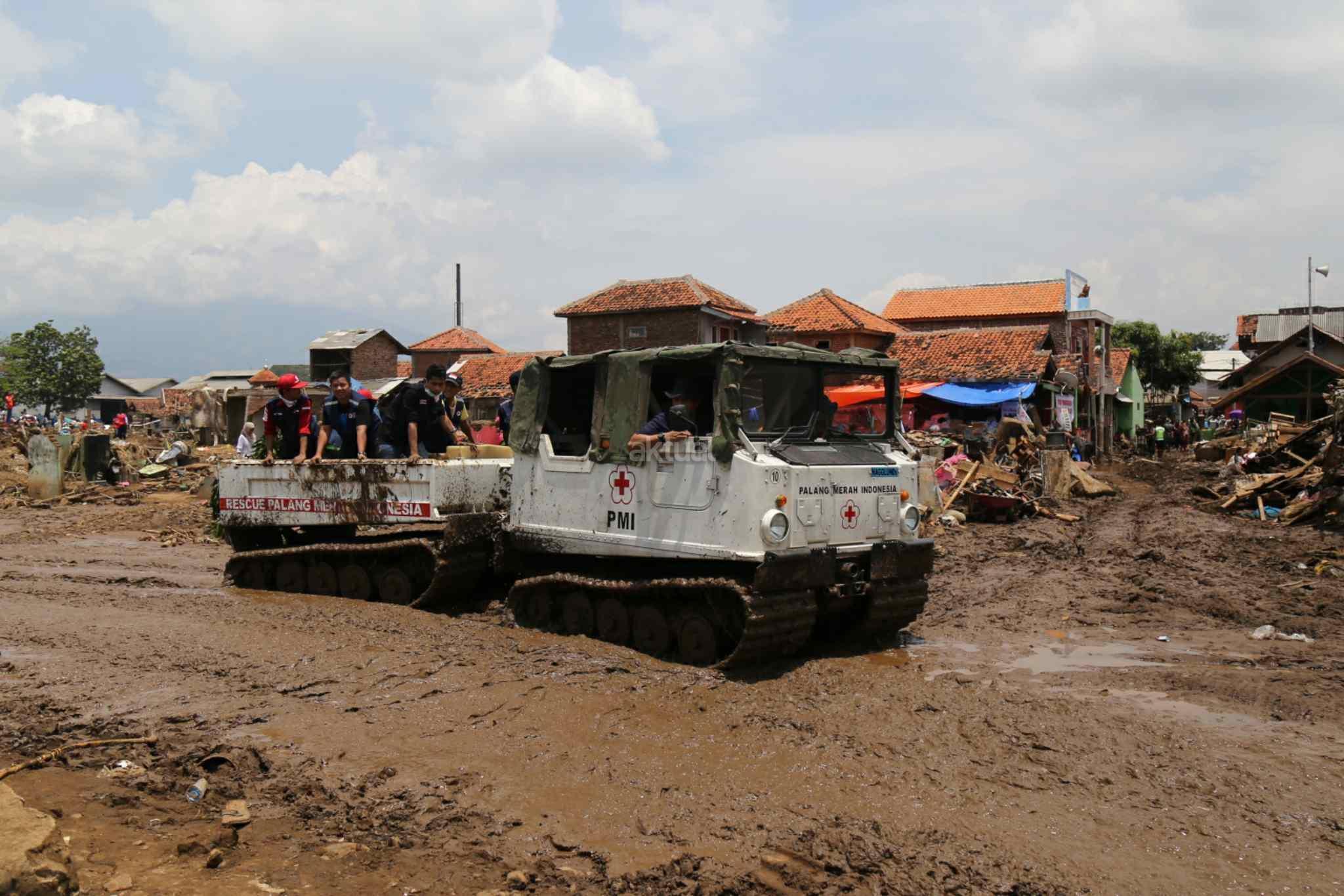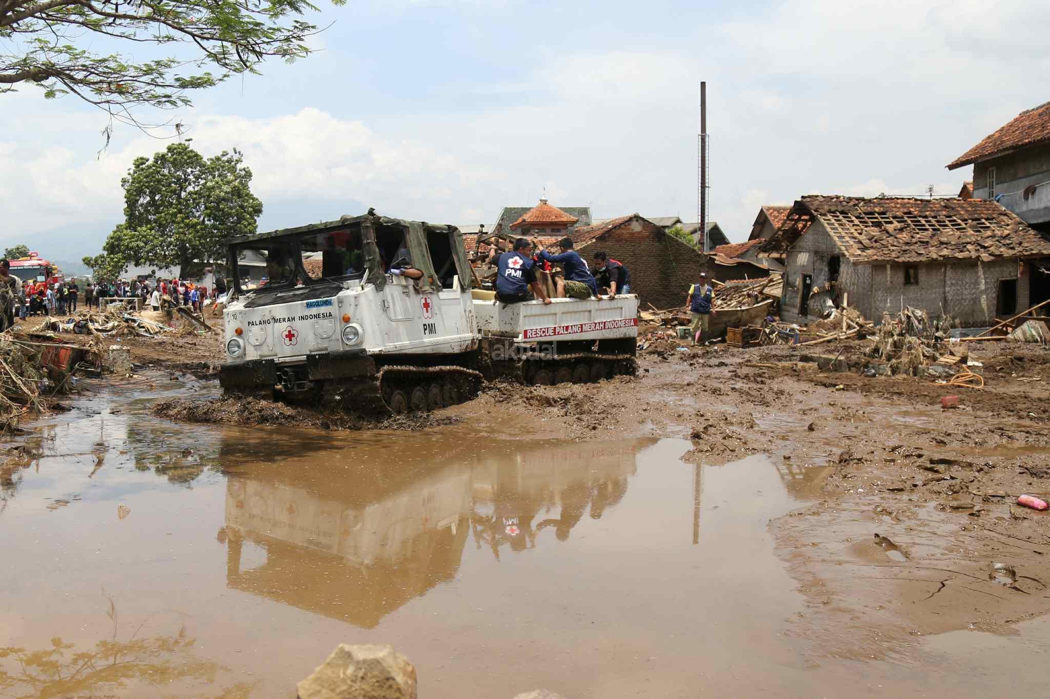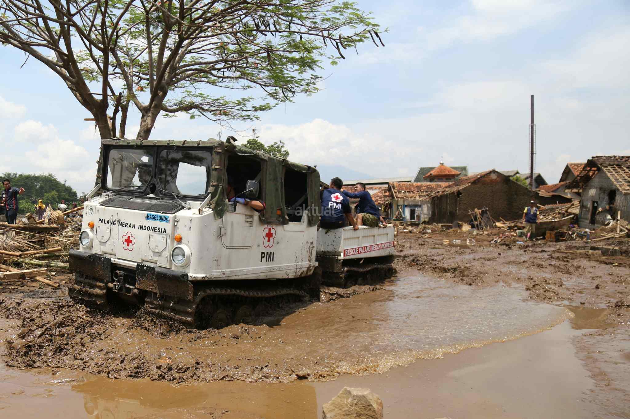 Kendaraan Hagglund PMI Bantu Evakuasi Korban Banjir Bandang Garut