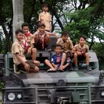 Para pelajar asyik berfot diatas kendaraan taktis milik TNI di silang Monas, Jakarta, Rabu (30/11/2016). Kendaraan taktis milik TNI disiagakan untuk pengamanan aksi 212 atau Aksi Bela Islam III yang rencananya akan menggelar sholat Jumat akbar di silang Monas pada 2 Desember 2016 nanti. AKTUAL/Munzir