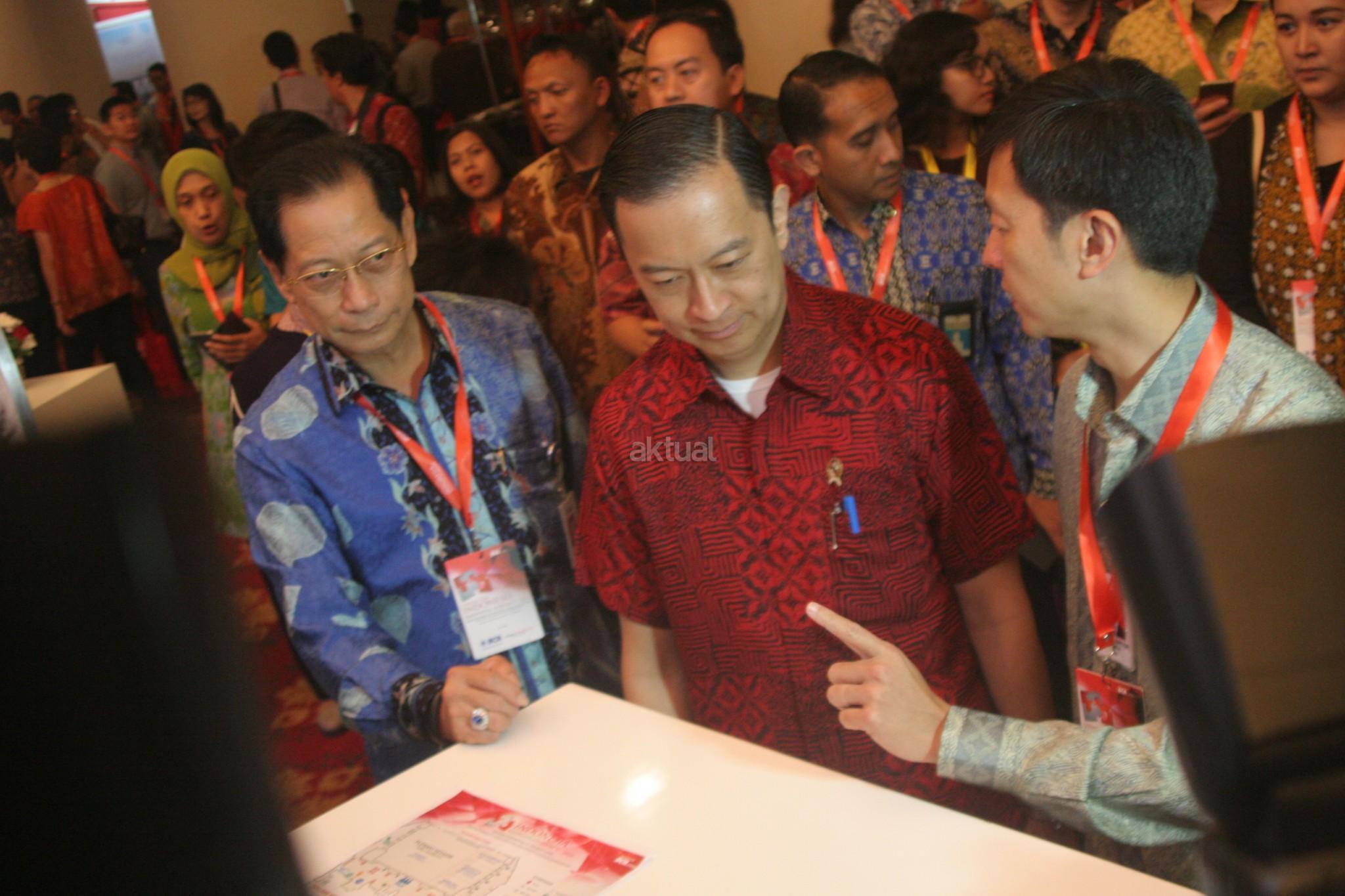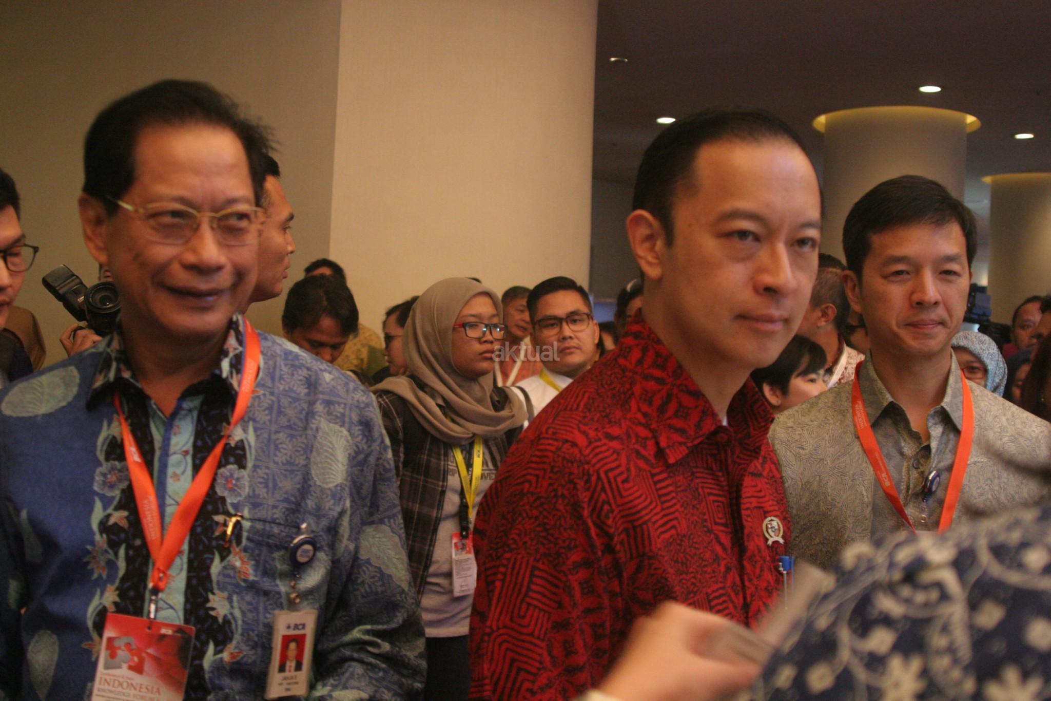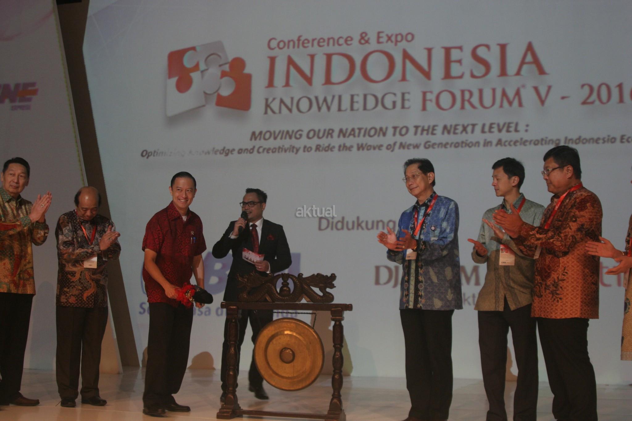Presdir PT Bank Central Asia Tbk Jahja Setiaatmadja didampingi Wapresdir BCA Armand W Hartono dan Direktur BCA Suber Tan memberikan cinderamata kepada Kepala Badan Koordinasi Penanaman Modal (BKPM) Thomas Lembong usai membuka acara Indonesia Knowledge Forum (IKF) V 2016 di Jakarta, Kamis (06/10/2016). Forum ini merupakan bagian dari komitmen BCA dalam mendukung pengembangan dan peningkatan kualitas sumber daya manusia Indonesia. Aktual/Eko S Hilman