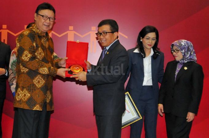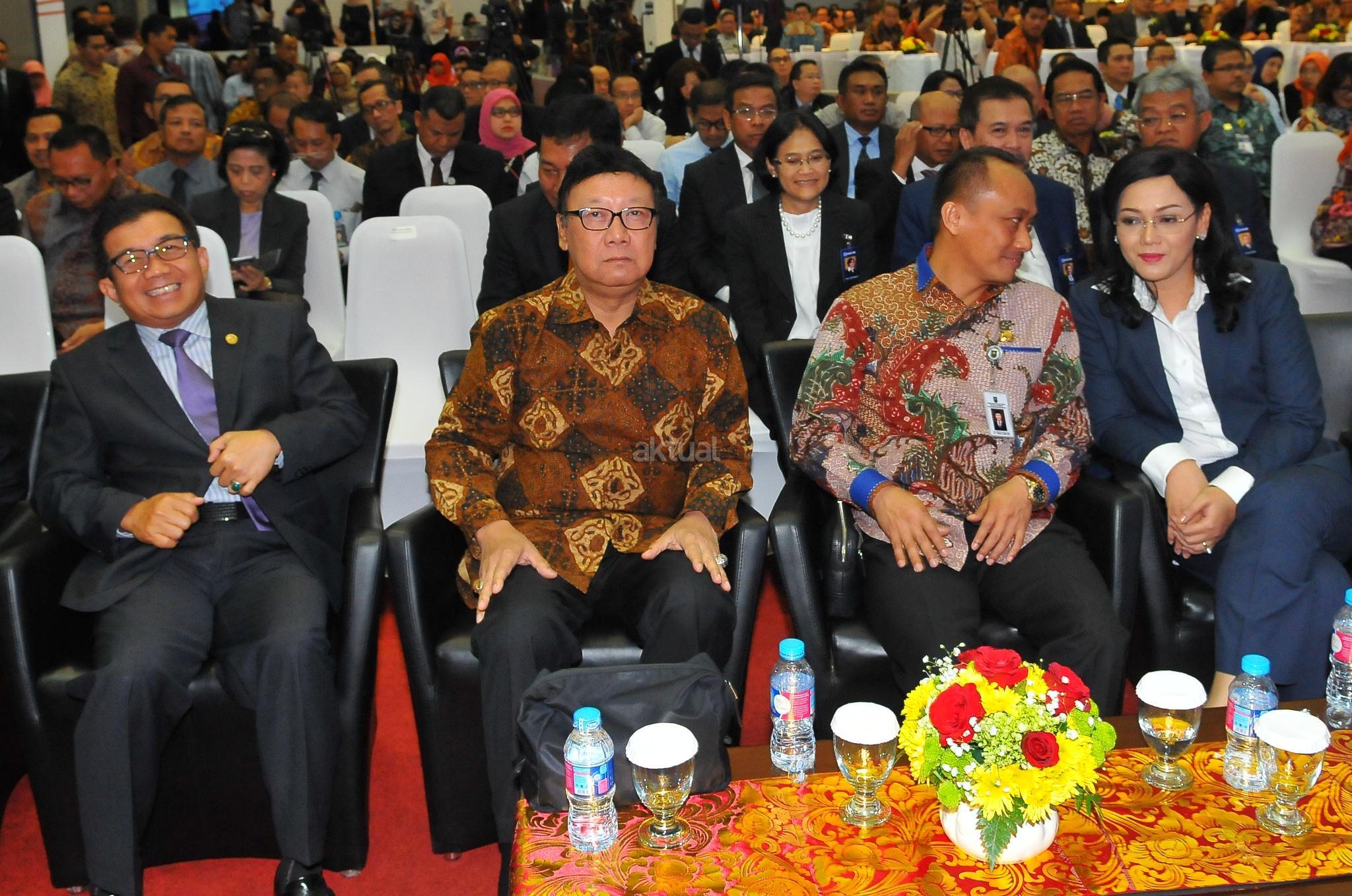 Menteri Dalam Negeri Tjahjo Kumolo, Kepala Otoritas Jasa Keuangan (OJK) Muliaman Hadad, Direktur Utama Kustodian Sentral Efek Indonesia (KSEI) Friderica Widyasari Dewi dan Kepala Eksekutif Pengawas Pasar modal OJK Nurhaida dalam acara 'Pemanfaatan Data E-KTP untuk Percepatan Pembukaan Rekening Investasi di Pasar Modal serta Peningkatan Kualitas Data Investor' di Gedung Bursa Efek Indnesia (BEI), SCBD Sudirman, Jakarta, Selasa (22/11/2016). KSEI melakukan Penandatanganan Kerja Sama (PKS) dengan Direktorat Jenderal Kependudukan dan Pencatatan Sipil (Ditjen Dukcapil), Kementerian Dalam Negeri (Kemendagri), terkait pemanfaatan Nomor Induk Kependudukan (NIK), data kependudukan dan Kartu Tanda Penduduk Elektronik (e-KTP) dalam pelayanan jasa pasar modal, yang akhirnya mempercepat dan mempermudah proses pembukaan rekening investasi di pasar modal. AKTUAL/Tino Oktaviano