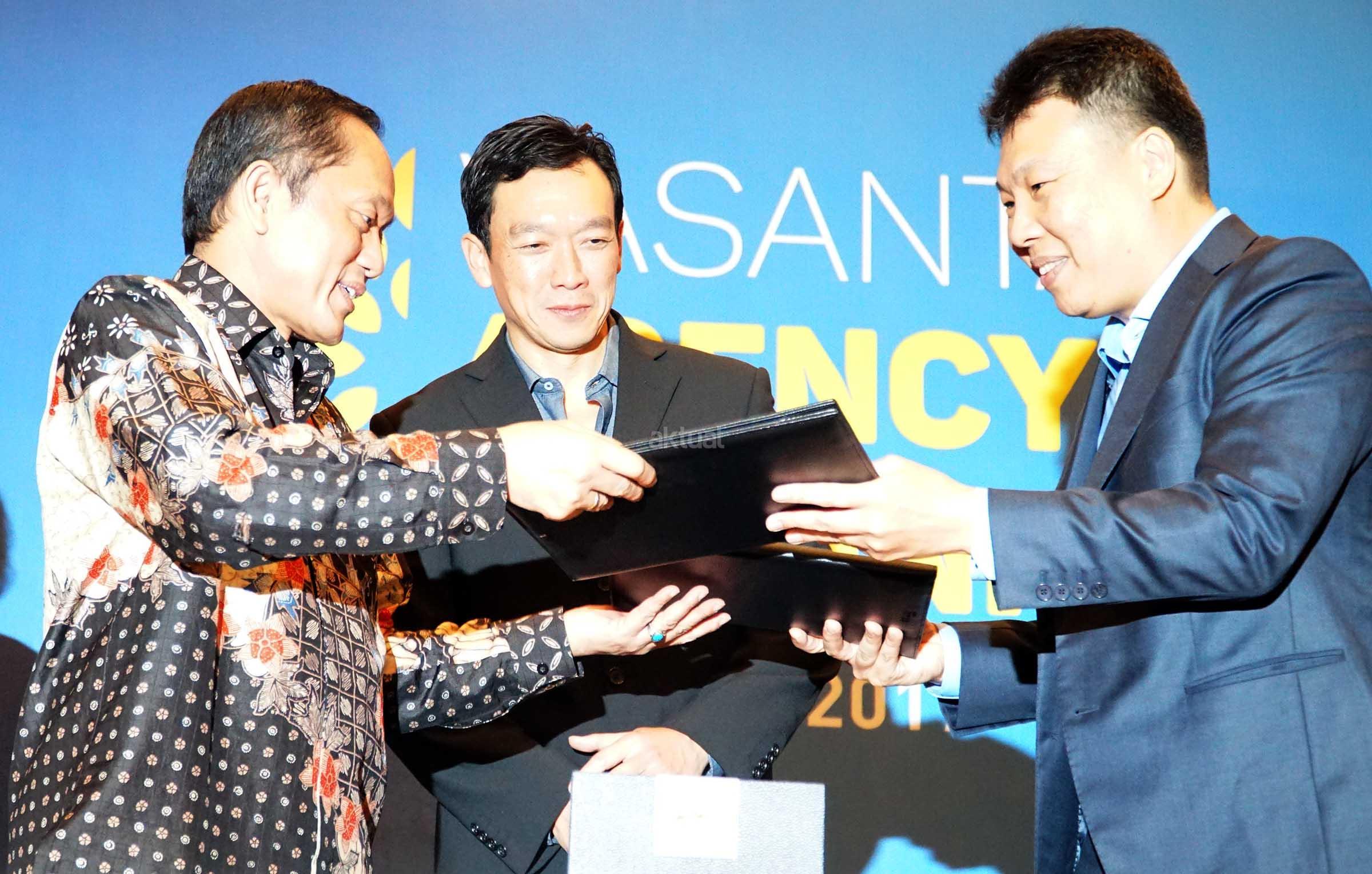 Presiden Direktur PT Sirius Surya Sentosa, Reggy Widjaja (tengah) menyaksikan Rektor Institut Teknologi Bandung, Prof Dr Ir Kadarsyah Suryadi(kiri) saling tukar naskah kerjasama dengan Presiden Komisaris Vasanta Indo Property, Agnus seusai penandatangan kerjasama di Jakarta, Kamis (27/7). ITB akan memiliki kampus baru dan pusat penelitian di dalam Kawasan Vasanta Innopark,yakni sebuah superblok dengan konsep Integrated City Within a City yang kental dengan nuansa Jepang dan kemudahan akses di dalamnya. Vasanta Innopark yang terintegrasi dengan kawasan industri MM2100 berada sebuah CBD yang akan dibangun mulai awal tahun 2018 diatas lahan keseluruhan mencapai 100 ha. Tahap awal sebanyak 17 tower terdiri dari Apartemen,Serviced Apartemen, Condomunium,Mall,Shop Houses,Office Tower dan 4 Star Premier Hotel menyusul fasilitas lainnya yang telah terbangun seperti, rumah sakit Grha MM2100, Hotel enso. Selain Multilayer Park, Poyek Vasanta Innopark yang terletak di Cibitung,Bekasi akan dilengkapi fasilitas yang tergabung dalam 28 In 1 Integrated Facilities dan Amenities. Vasanta Innopark juga nantinya akan didukung infrastruktur yang memadai diantaranya akses Tol Jakarta-Cikampek II (elevated), Toll JORR 2 serta transportasi massal LRT rute Cawang- Bekasi, MRT rute Tangerang- Bekasi dan kereta cepat Jakarta- Bandung, secara keseluruhannya akan memberikan nilai investasi properti di Cibitung,Bekasi akan terus meningkat. AKTUAL/Eko S Hilman