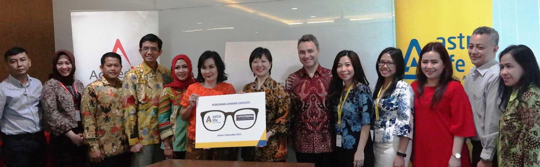 Perwakilan Mgt ASLI, Admedika & Optik Intl berfoto bersama saat peresmian kerjasama di Jakarta belum lama ini. Seluruh nasabah peserta asuransi Astra Life maupun pemegang kartu asuransi Astra Life difasilitasi dengan layanan cashless, memberi kemudahan bagi tertanggung melakukan pembayaran langsung ke Optik Internasional melalui third party administrator (TPA) – PT Administrasi Medika (ADMEDIKA). AKTUAL/HO