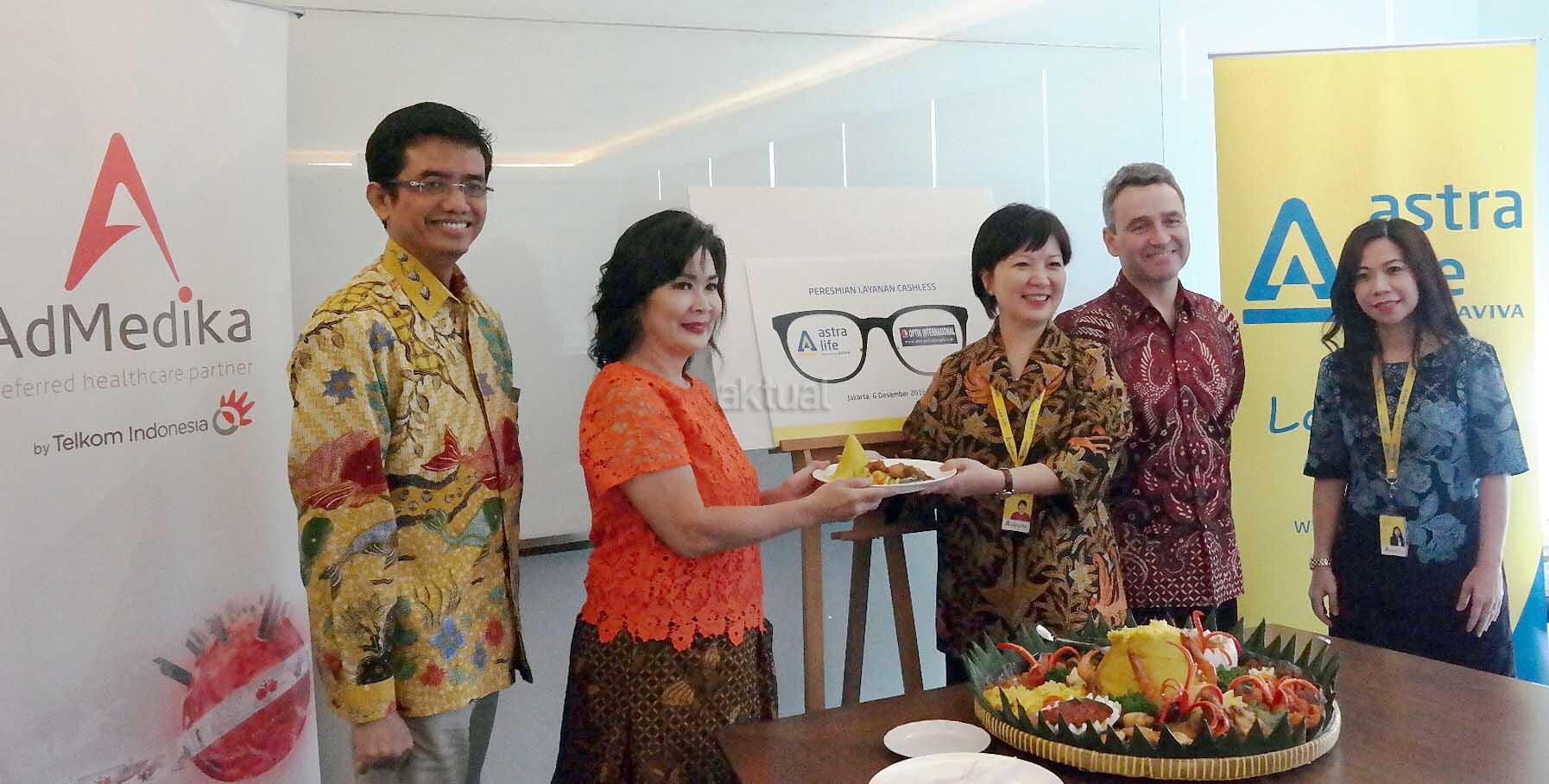 Direktur Astra Life Stephanie Kesuma menyerahkan tumpeng usai syukuran kerjasama di Jakarta belum lama ini. Untuk mengoptimalkan dan mengembangkan saluran distribusi serta layanan yang beragam sesuai kebutuhan masyarakat. PT Astra Life meresmikan kerjasama dengan Optik Internasional, salah satu perusahaan yang memberikan pelayanan kesehatan di bidang perkacamataan yang memiliki ratusan cabang outlet tersebar di seluruh Indonesia, belum lama ini. AKTUAL/HO