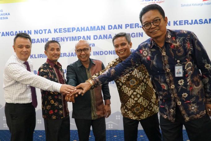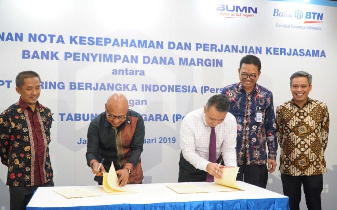 Dari kiri ke kanan, Direktur KBI, Agung Rihayanto, Direktur BTN, Oni Febriarto, Direktur Utama PT Kliring Berjangka Indonesia Fajar Wibihiyadi, Direktur BTN, Nixon Napitupulu, Direktur BTN, Dasuki Amsir berbincang seusai penandandatangan bersama di Jakarta, Rabu (27/2). Perjanjian Kerjasama dan Nota Kesepahaman yang ditandatangani adalah mengenai bank penyimpan dana margin dan penyediaan produk layanan jasa perbankan. Melalui kerjasama tersebut Bank BTN menargetkan kenaikan Dana Pihak Ketiga lembaga/institusi atau DPK Lembaga tumbuh di kisaran 12-15% pada tahun 2019. AKTUAL/STR-Eko S Hilman