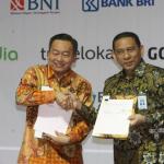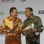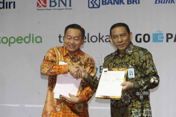 Direktur PT Bank Central Asia Tbk (BCA) Santoso (kiri) dan Direktur Keuangan & Investasi BPJS Kesehatan Kemal Imam Santoso (kanan) menandatangani kerja sama intensifikasi penagihan tunggakan iuran dengan mitra BPJS Kesehatan melalui diselenggarakannya limited collection program di Jakarta, Rabu (8/8). Melalui dukungan BCA terhadap program ini, BPJS akan memberikan insentif untuk Peserta Bukan Penerima Upah (PBPU) Program JKN yang melakukan pembayaran tunggakan iuran selama periode Agustus-Oktober melalui channel perbankan. AKTUAL/Eko S Hilman
