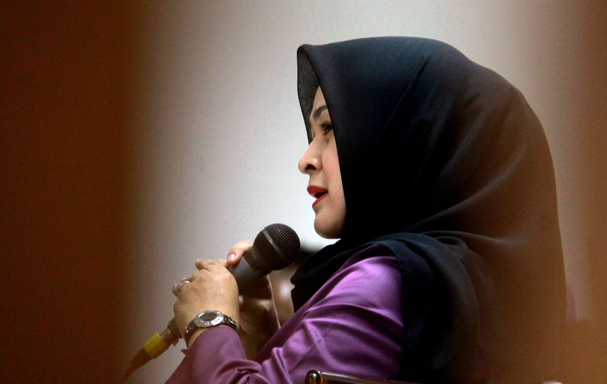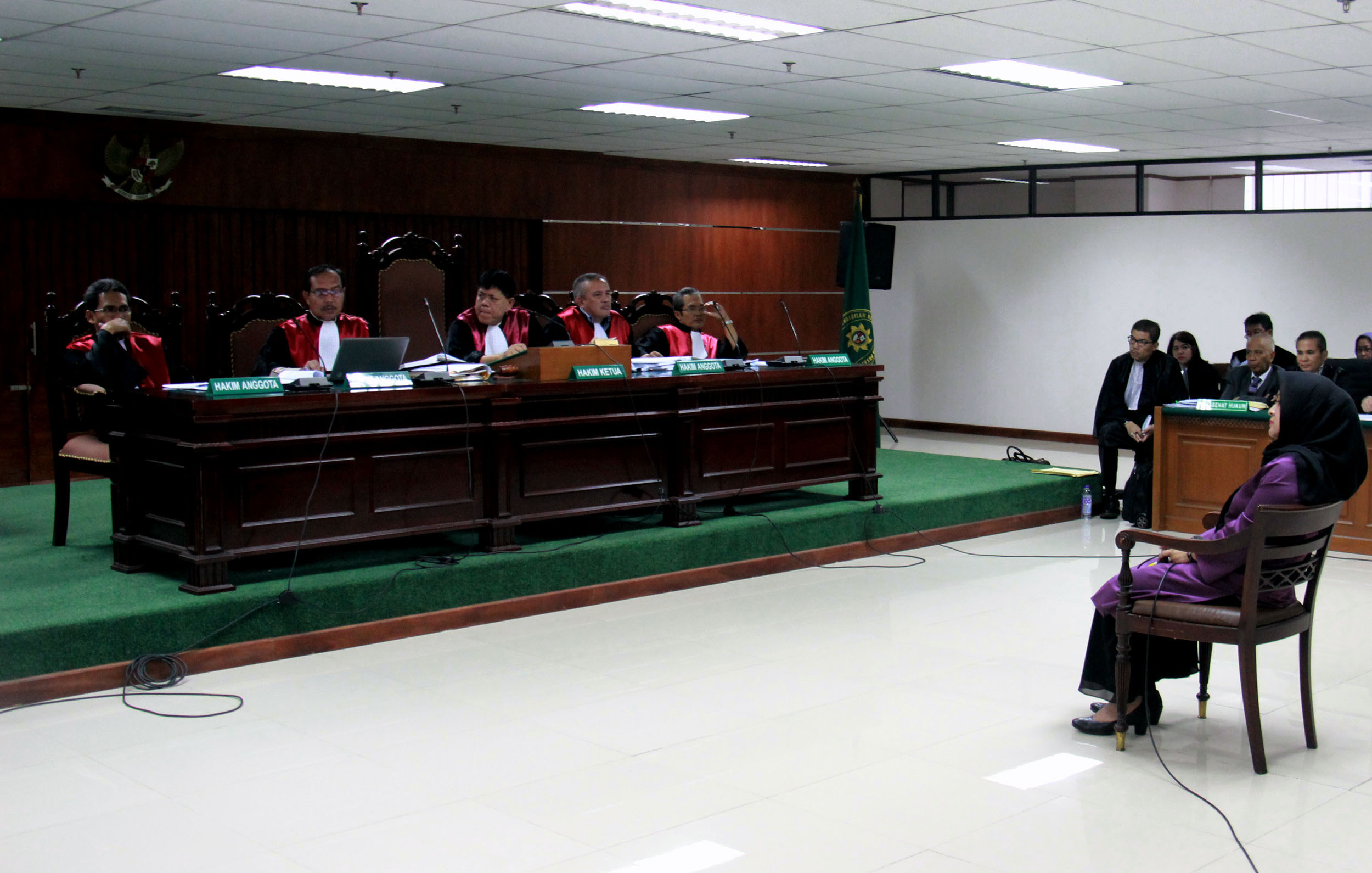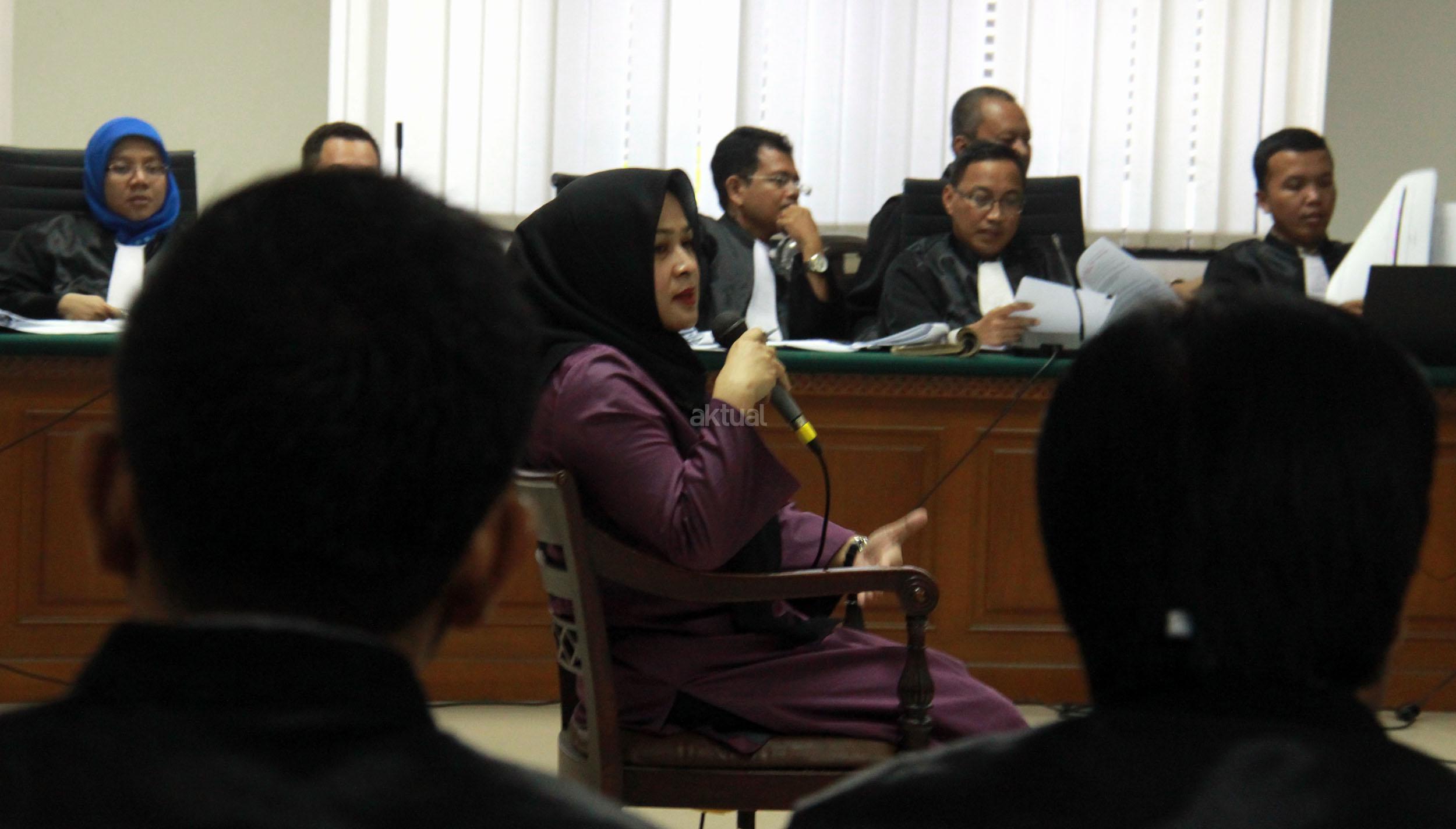 Istri Gubernur Sumatera Utara Gatot Pujo Nugroho, Evy Susanti saat menjadi saksi OC Kaligis dalam kasus dugaan suap hakim dan panitera PTUN Medan di Tipikor, Jakarta, Kamis (1/10/2015). Sebelumnya OC Kaligis sempat mengajukan keberatan bila persidangan menghadirkan istri Gatot Pujo Nugroho sebagai saksi.