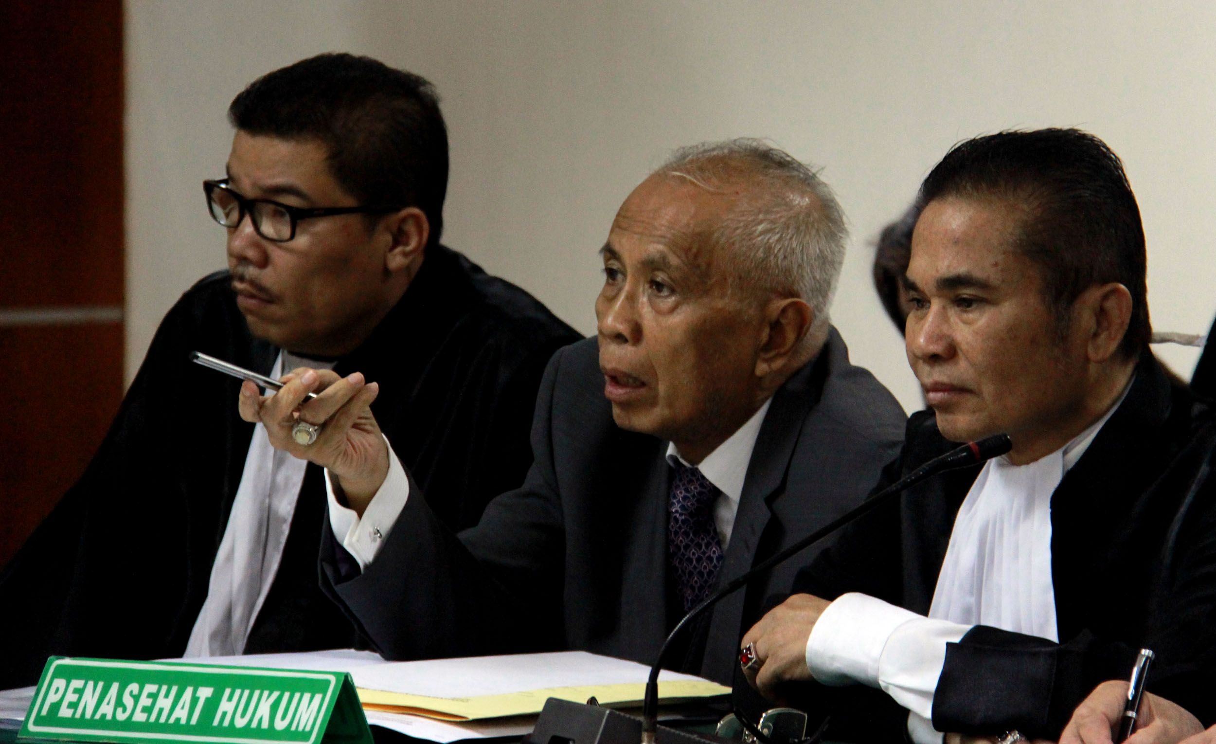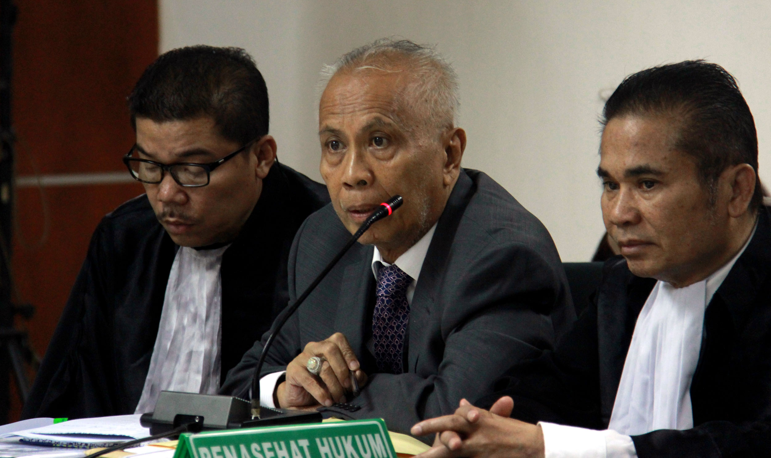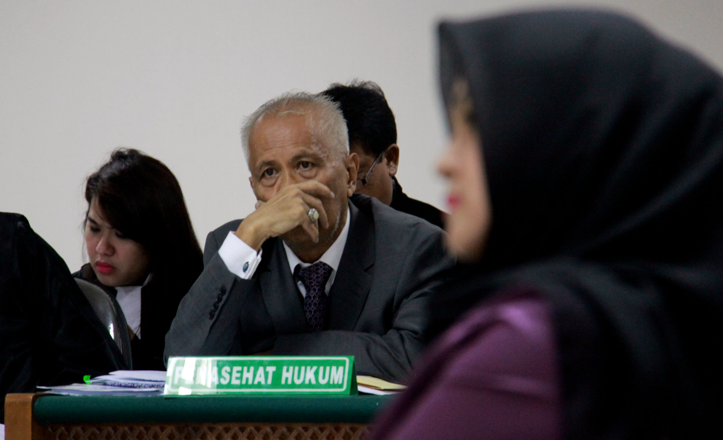 Terdakwa Otto Cornelis Kaligis (OC Kaligis) saat mendengarkan kesaksian Istri Gubernur Sumatera Utara Gatot Pujo Nugroho, Evy Susanti dalam sidang lanjutan di Pengadilan Tipikor, Jakarta, Kamis (1/10/2015). OC Kaligis didakwa terlibat dalam kasus suap kepada hakim dan panitera Pengadilan Tata Usaha Negara di Medan.