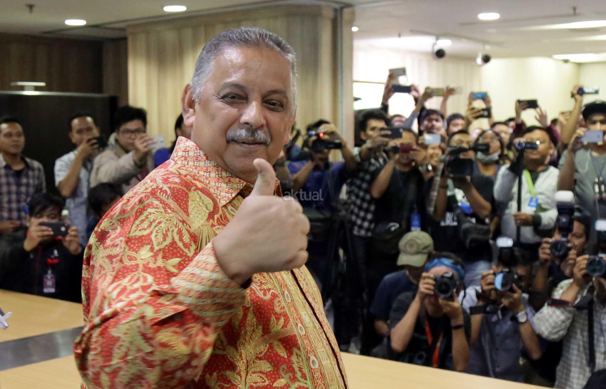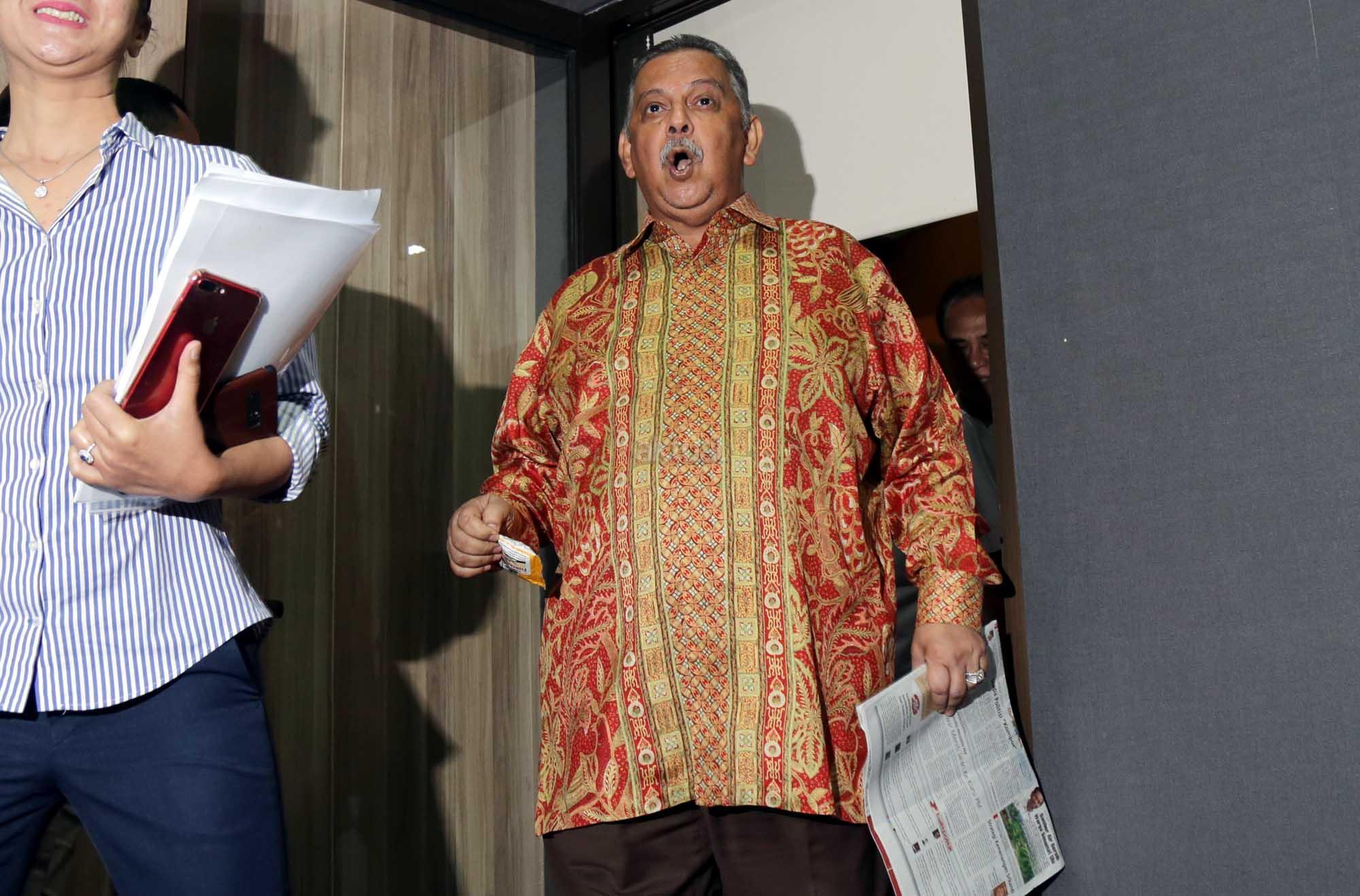 Direktur Utama PLN Sofyan Basir memberikan keterangan pers tentang penggeledahan kediamannya oleh petugas Komisi Pemberantasan Korupsi (KPK), di Kantor Pusat PLN, Jakarta, Senin (16/7/2018). PLN menyatakan menghormati proses hukum yang dilakukan KPK dengan mengedepankan asas praduga tidak bersalah dan membantu KPK dengan memberikan sejumlah informasi dan dokumen-dokumen terkait proyek PLTU Riau-1. AKTUAL/Tino Oktaviano