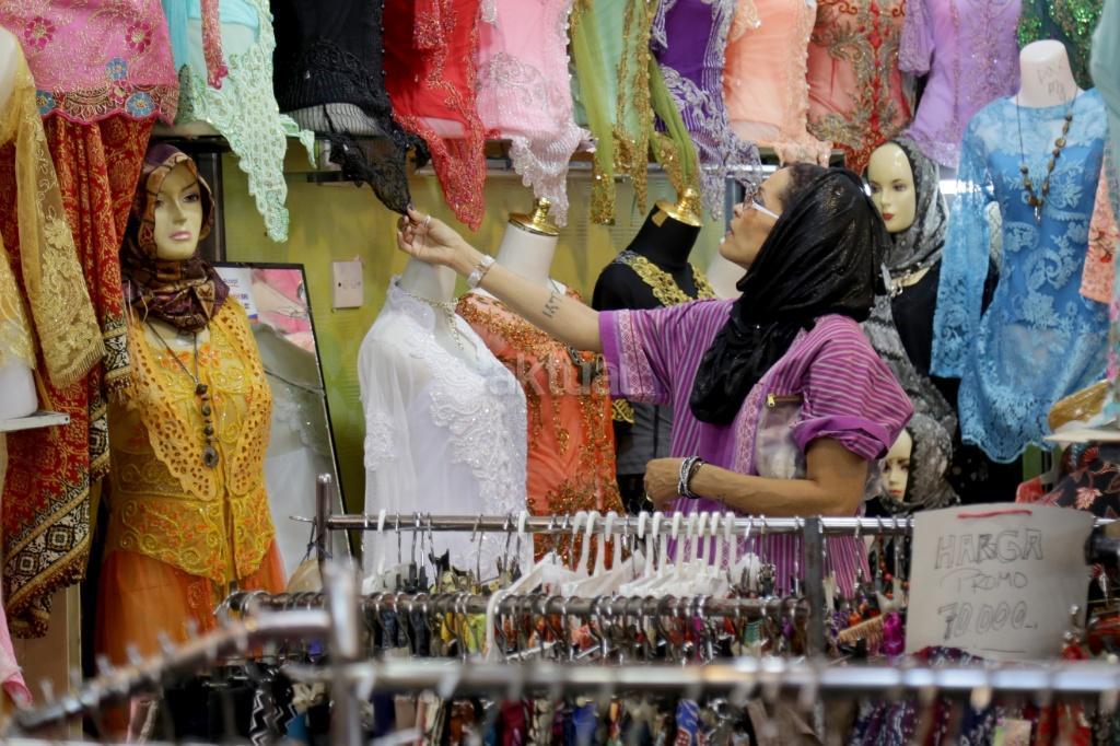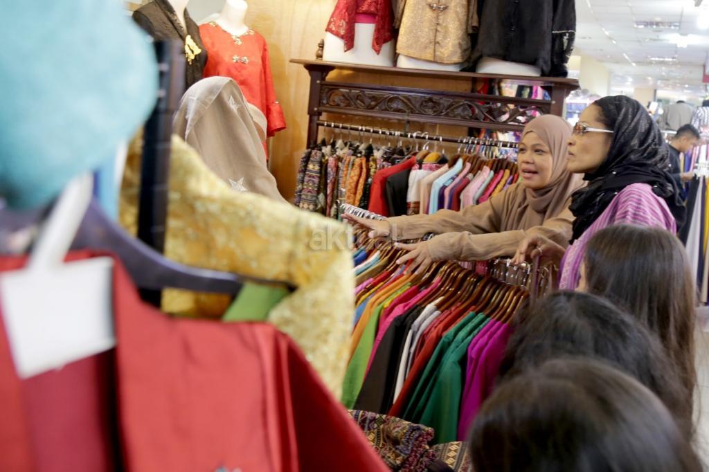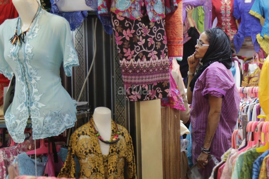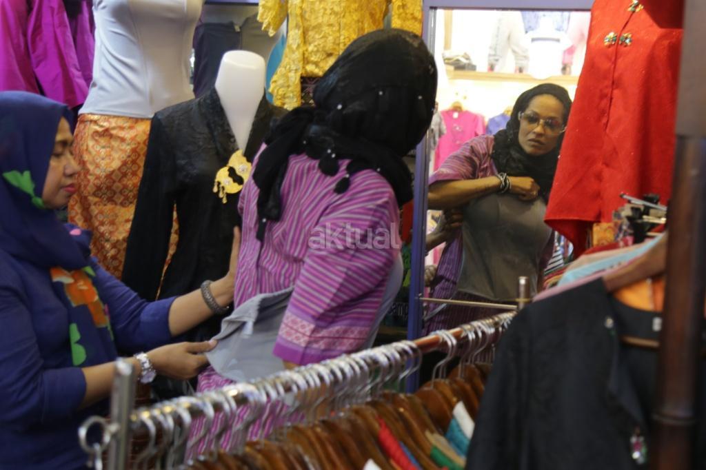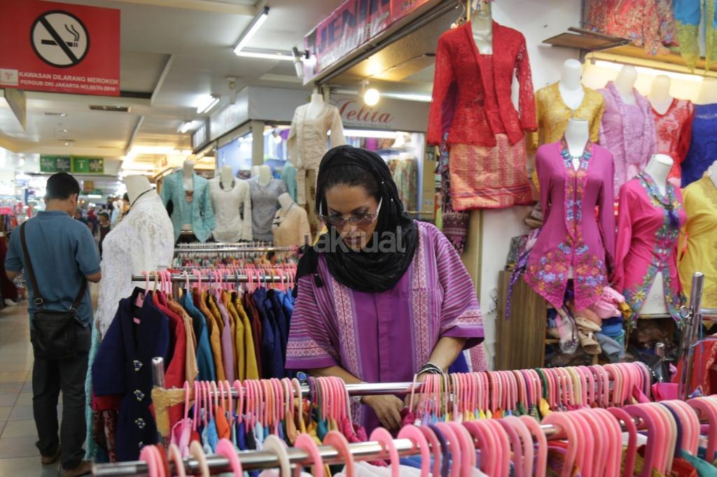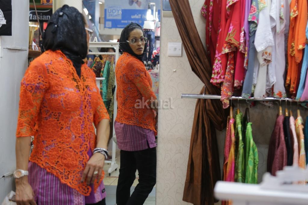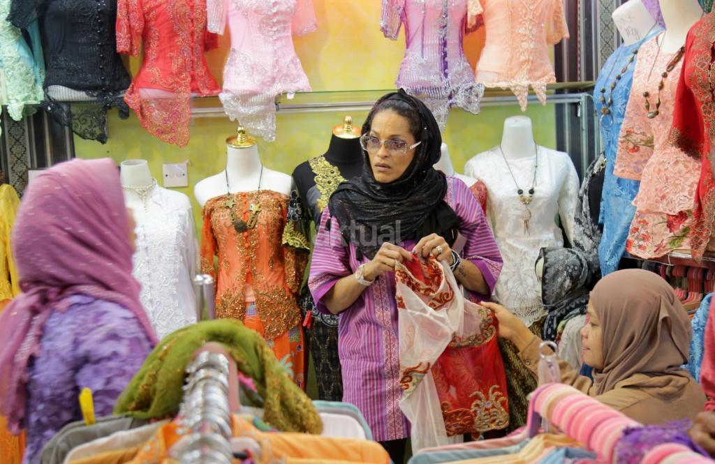 Putri Petinju Muhammad Ali, Rasheeda Ali memilih pakaian kebaya saat berbelanja di pusat perbelanjaan Thamrin City, Jakarta Pusat, Minggu (29/10). Rasheda yang adalah Presiden Raw Dreams LLC, sebuah perusahaan konsultasi yang memberikan bimbingan, memberikan ceramahnya dalam pertemuan Kopdar Saudagar Nusantara pada Sabtu (28/10) malam di Sentul Convention Center, Bogor. AKTUAL/Tino Oktaviano
