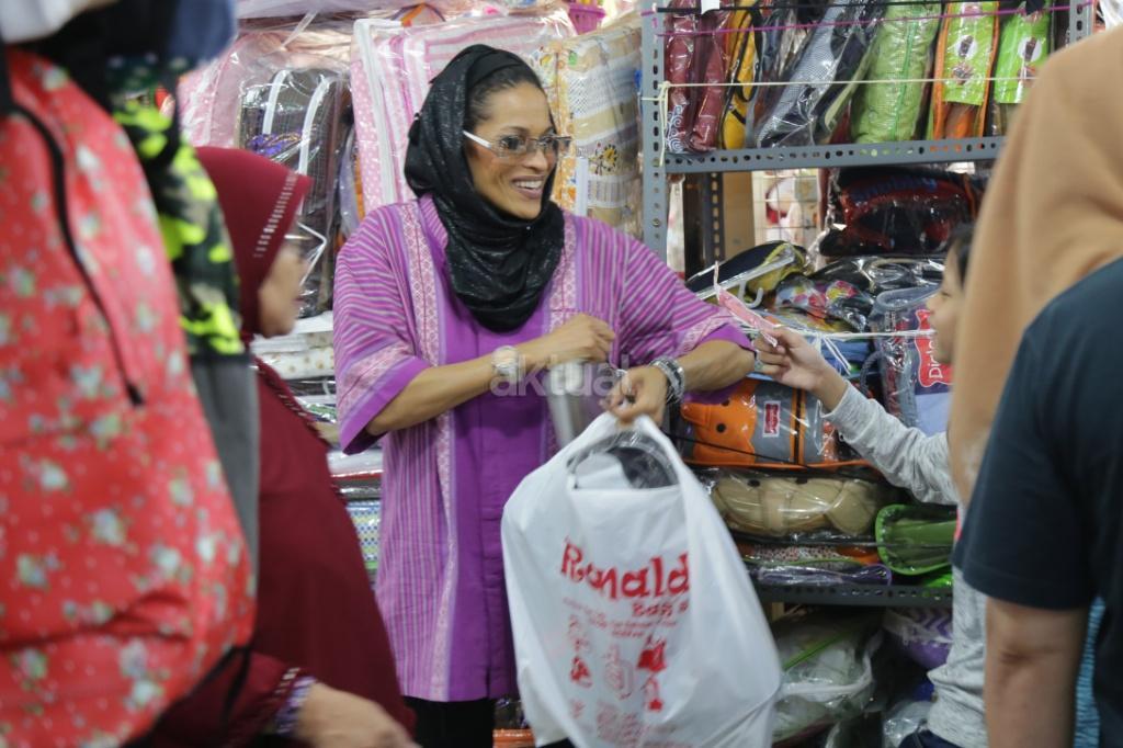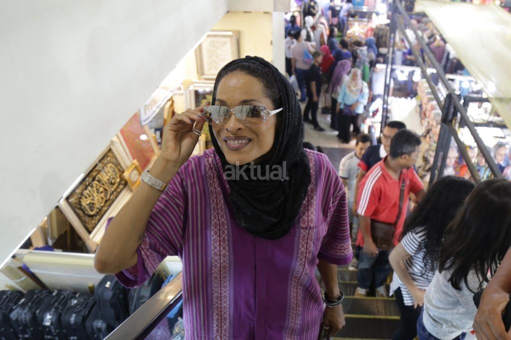 Putri Petinju Muhammad Ali, Rasheeda Ali saat berbelanja di pusat perbelanjaan Thamrin City, Jakarta Pusat, Minggu (29/10). Kunjungan Rasheeda Ali ke Indonesia dalam rangka mengisi dan menjelaskan tentang karir cemerlang sang almarhum selama masa hidupnya dan sosok Ali sebagai seorang ayah di mata anaknya. Bisnis dan sosial juga jadi salah satu yang dibahas oleh Rasheeda di pertemuan Kopdar Saudagar Nusantara. AKTUAL/Tino Oktaviano