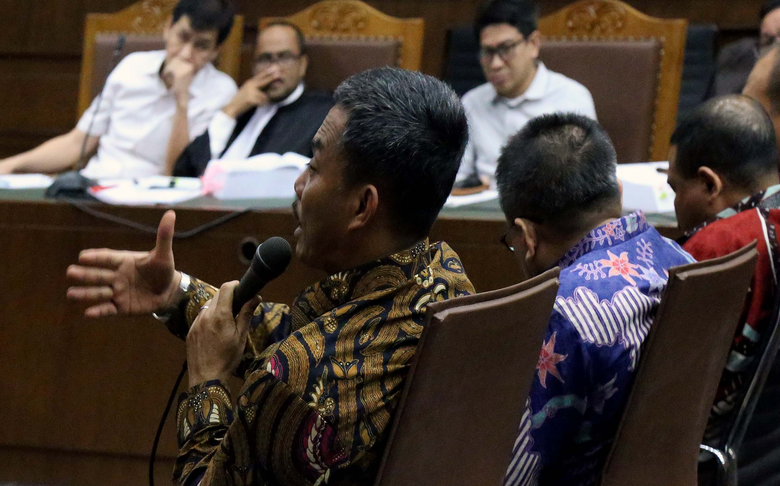 Ketua DPRD DKI Jakarta Prasetyo Edi Marsudi memberikan kesaksian dalam sidang lanjutan terkait kasus suap pembahasan rancangan peraturan daerah tentang reklamasi di Pengadilan Tipikor, Jakarta, Rabu (20/7/2016).Sidang tersebut beragendakan keterangan empat orang saksi, Ketua DPRD DKI Jakarta Prasetyo Edi Marsudi, Wakil Ketua DPRD DKI Jakarta Muhammad Taufik, Ketua Fraksi Hanura DPRD DKI Muhammad Ongen Sangaji, dan Ketua Fraksi PKS Selamat Nurdin.
