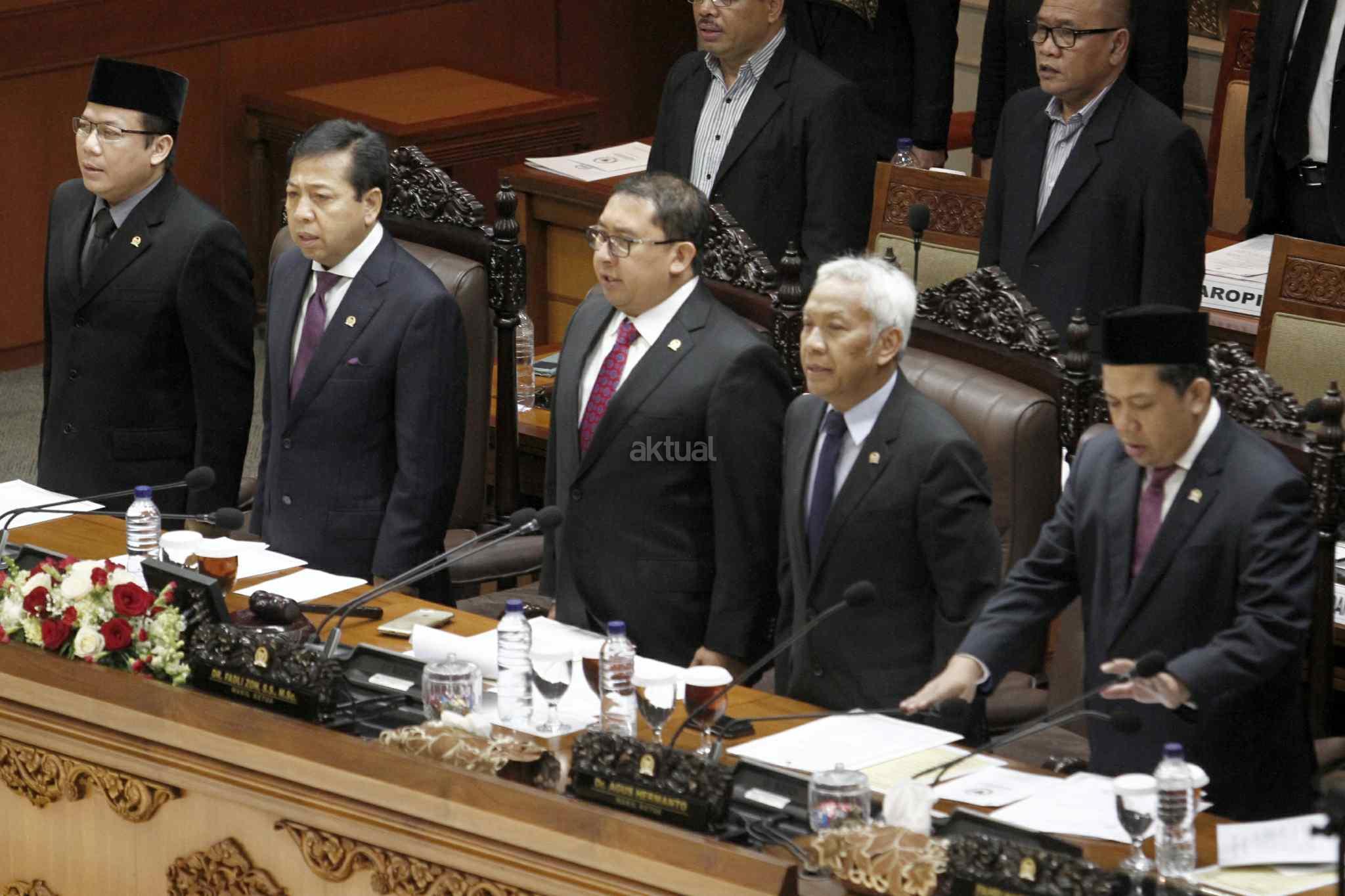 Ketua DPR Setya Novanto didampingi Wakil Ketua DPR Fadli zon, Fahri Hamzah, Agus Hermanto, dan Taufik Kurniawan, Pembukaan Masa Persidangan IV tahun Sidang 2016-2017 di Kompleks Parlemen, Senayan, Jakarta, Rabu (15/3). DPR berkomitmen mempercepat proses pembahasan RUU yang menjadi prioritas tahun 2017 diantaranya 10 RUU, yaitu RUU tentang Penyelenggaraan Pemilu, RUU (MD 3), RUU tentang KUHP dan RUU tentang Pemberantaran Terorisme. AKTUAL/Tino Oktaviano