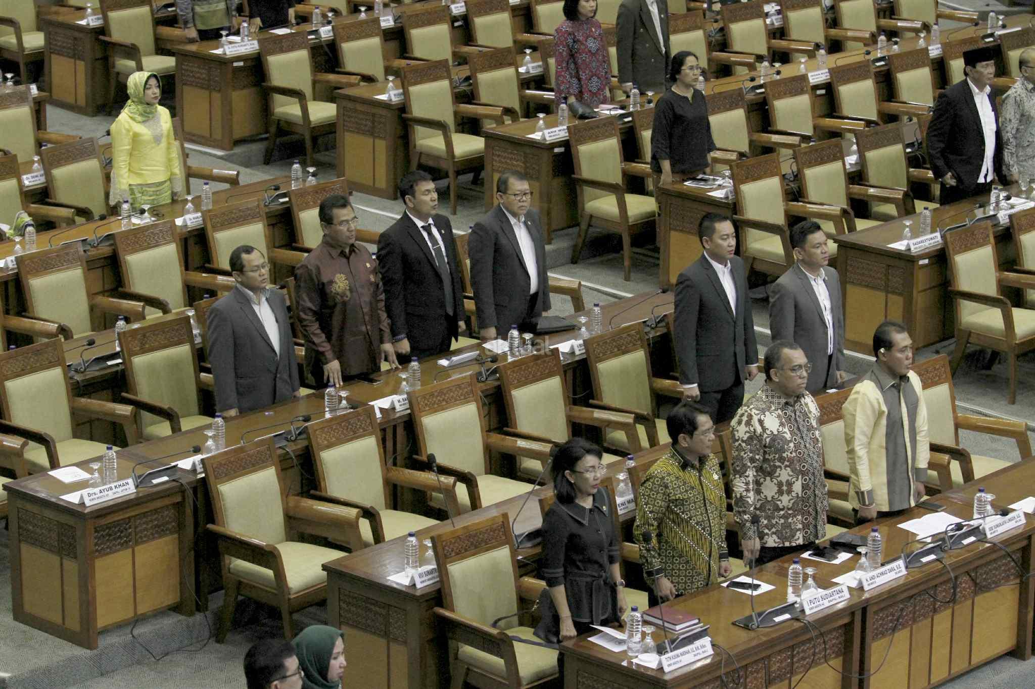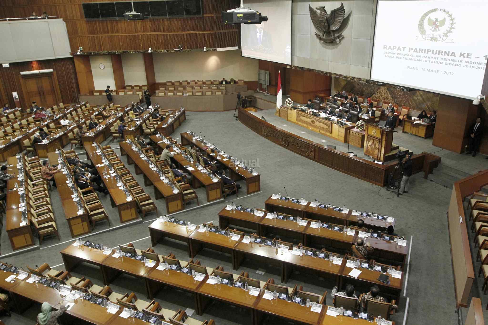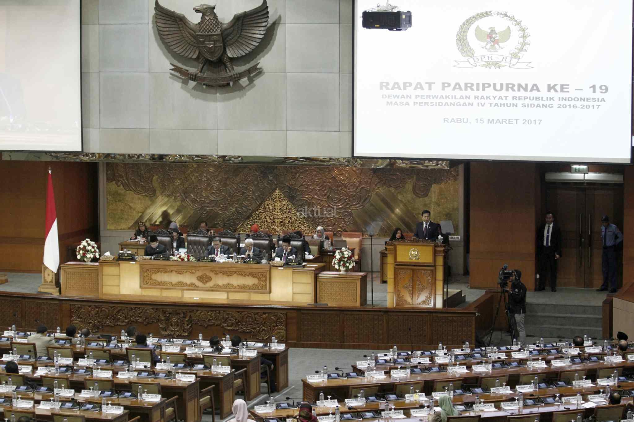 Sejumlah anggota DPR Pembukaan Masa Persidangan IV tahun Sidang 2016-2017 di Kompleks Parlemen, Senayan, Jakarta, Rabu (15/3). DPR berkomitmen mempercepat proses pembahasan RUU yang menjadi prioritas tahun 2017 diantaranya 10 RUU, yaitu RUU tentang Penyelenggaraan Pemilu, RUU (MD 3), RUU tentang KUHP dan RUU tentang Pemberantaran Terorisme. AKTUAL/Tino Oktaviano